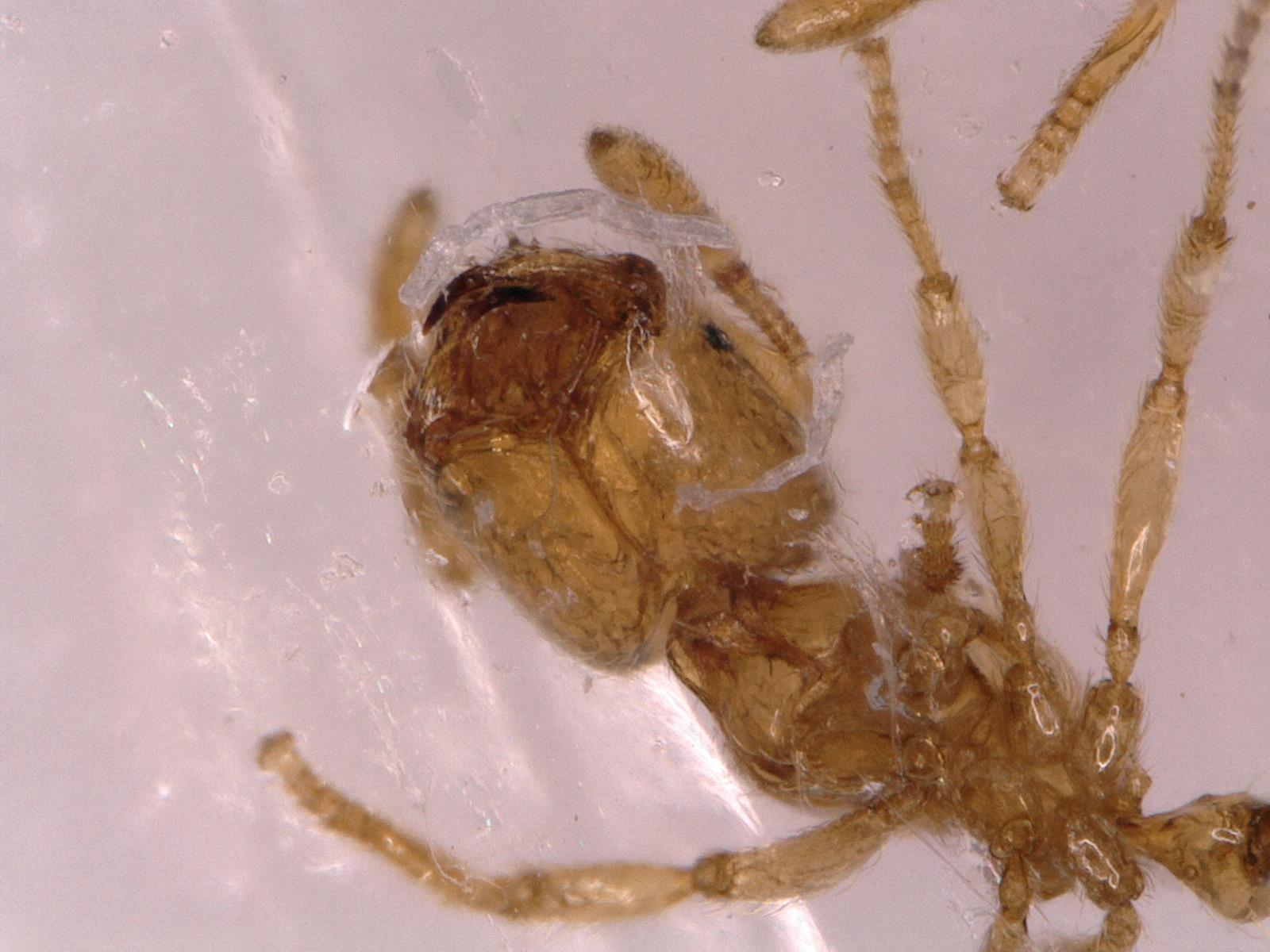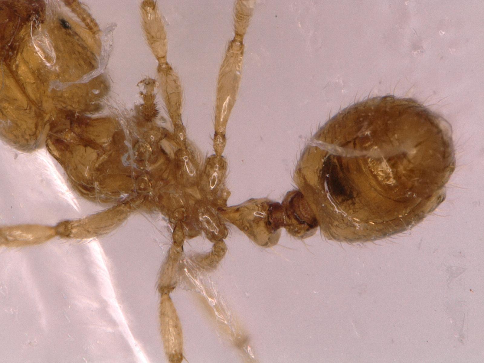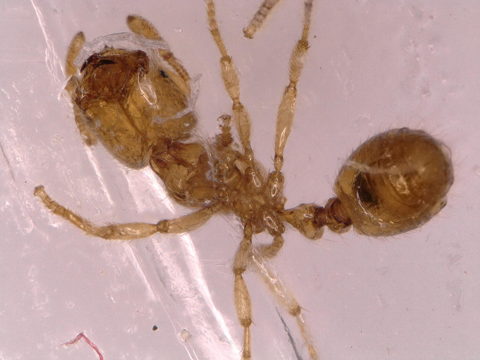 Ich interessiere mich schon länger für Insekten und auch für Ameisen und wollte mir eigentlich schon länger eine Kolonie anschaffen; geplant war ursprünglich mit Lasius niger zu starten. Kürzlich habe ich aber im Garten eine Trittplatte im Rasen etwas tiefer gesetzt und darunter ein Ameisennest (sehr kleine Art, ca. 2 mm, gelb/orange mit schwarzen, geflügelten Geschlechtstieren) gefunden, das ich in ein altes, kleines Aquarium aus Glas geschaufelt habe, da ich doch etwas Mitleid mit den Tierchen hatte.
