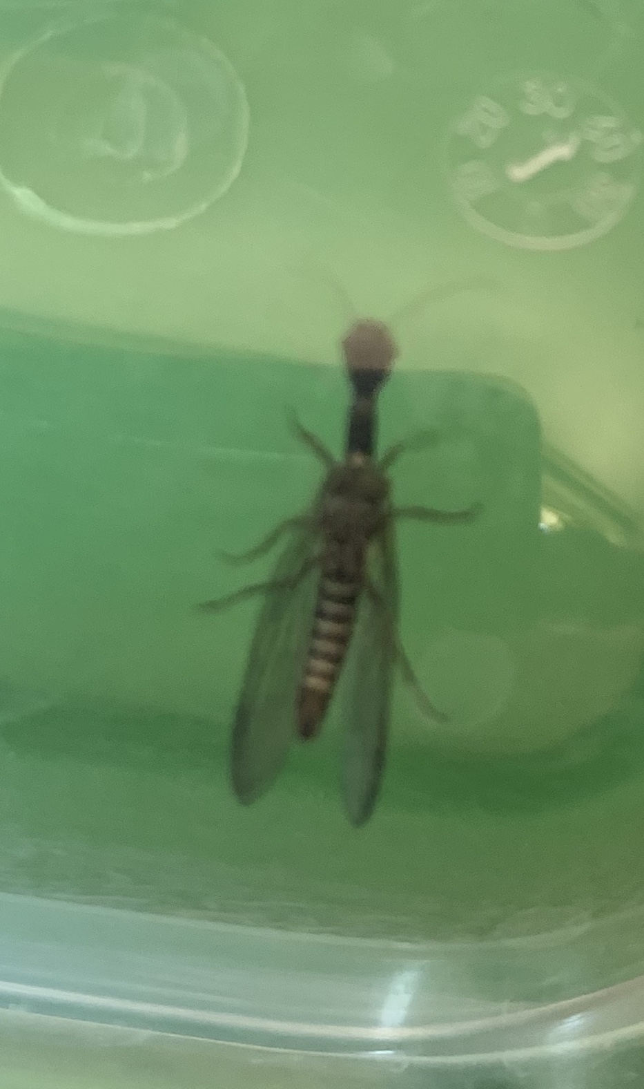 habe heute bei einer Ameisenbegutachtung im Garten ein für mich unbekanntes Tier gefunden. Im ersten Moment dachte ich an eine geflügelte Königen- jedoch ist der Körper viel zu fein und die Mundwerkzeuge sind winzig. Ich hoffe mir kann jemand ein tip geben zu welcher Tierart das Insekt gehört - eine Ameise ist dies doch nicht oder ?
