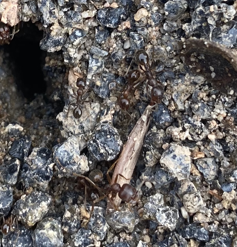 Braun-rötliche FĂ€rbung und deutliche GrĂ¶ĂŸenunterschiede zwischen den Arbeiterinnen. Gefunden in meiner Einfahrt in Mainz.