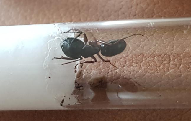 Ich habe heute gegen 19:30 Uhr am Waldrand, auf einem Schotterweg, bei ca. 20 Grad Celsius, die folgenden Ameisen nicht weit voneinander entfernt gefunden.