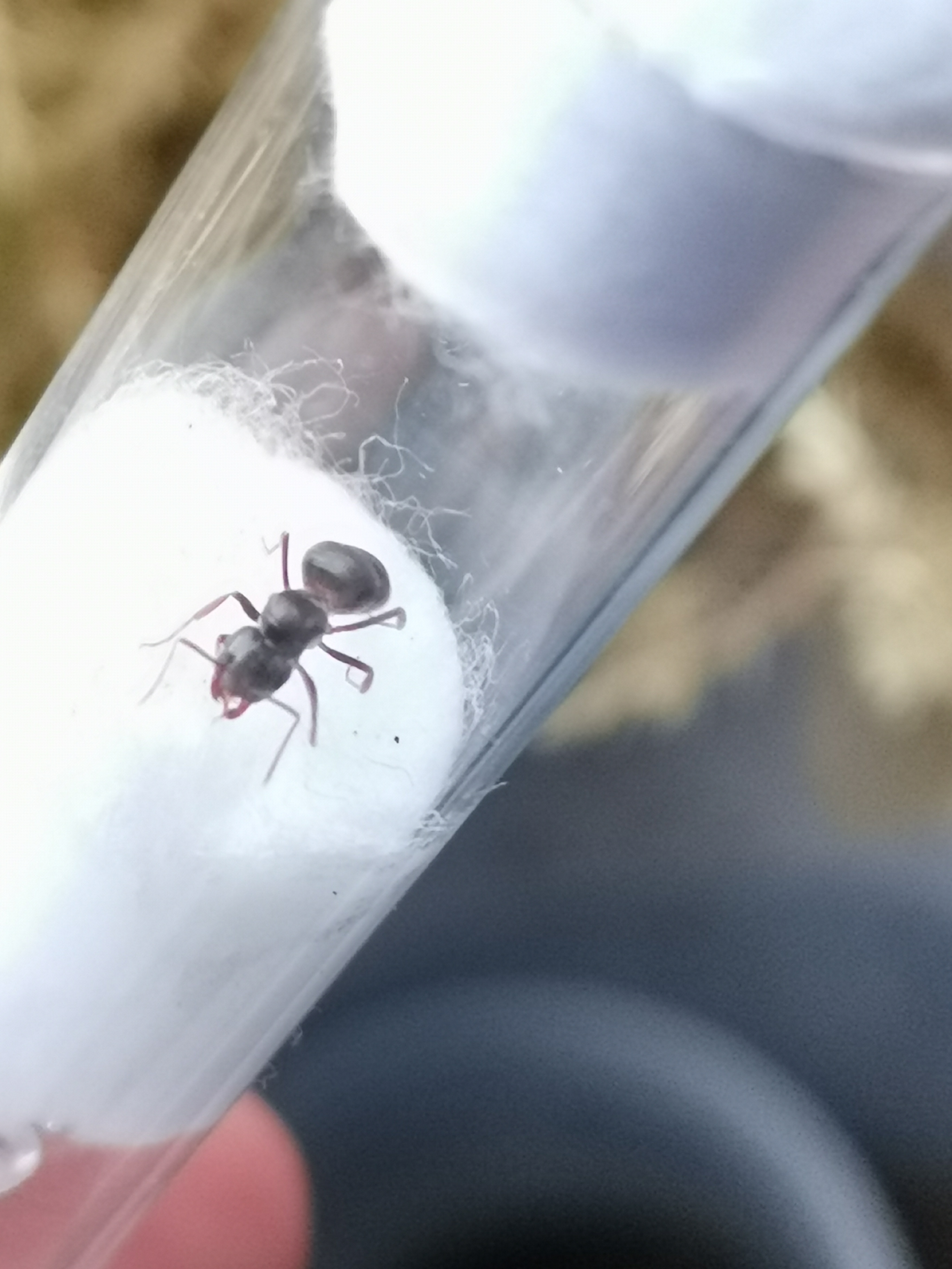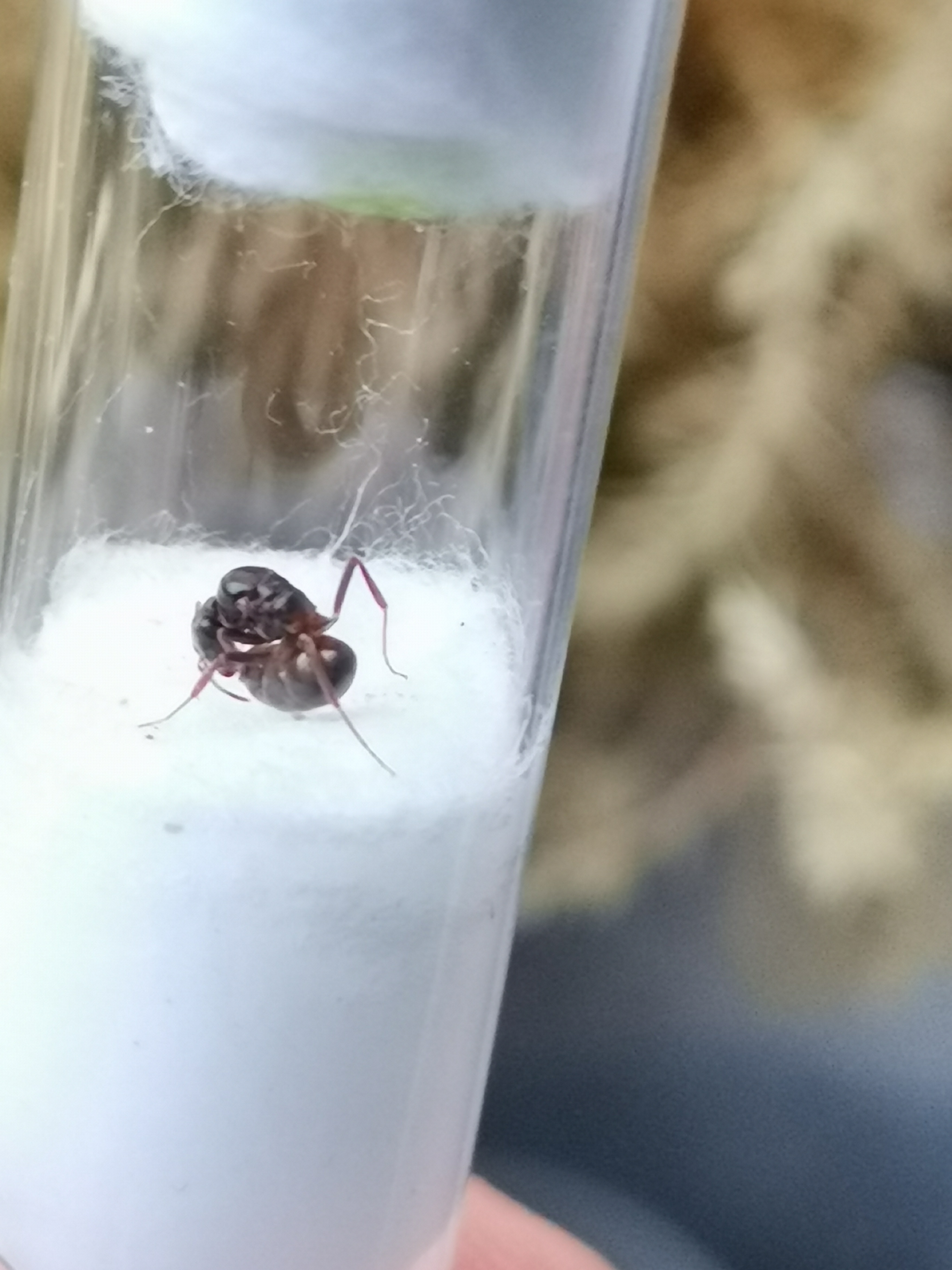 Zack tot. Die Arbeiterin hat keine 5 min. überlebt. Damit hab ich dann Lasius als auch sozialparasitär ausgeschlossen. Nach weiterer Recherche schien mir was anderes als naheliegend. Ich hab mir die Vermutung aber nicht aufgeschrieben und vergessen. Formica fusca vielleicht? :/