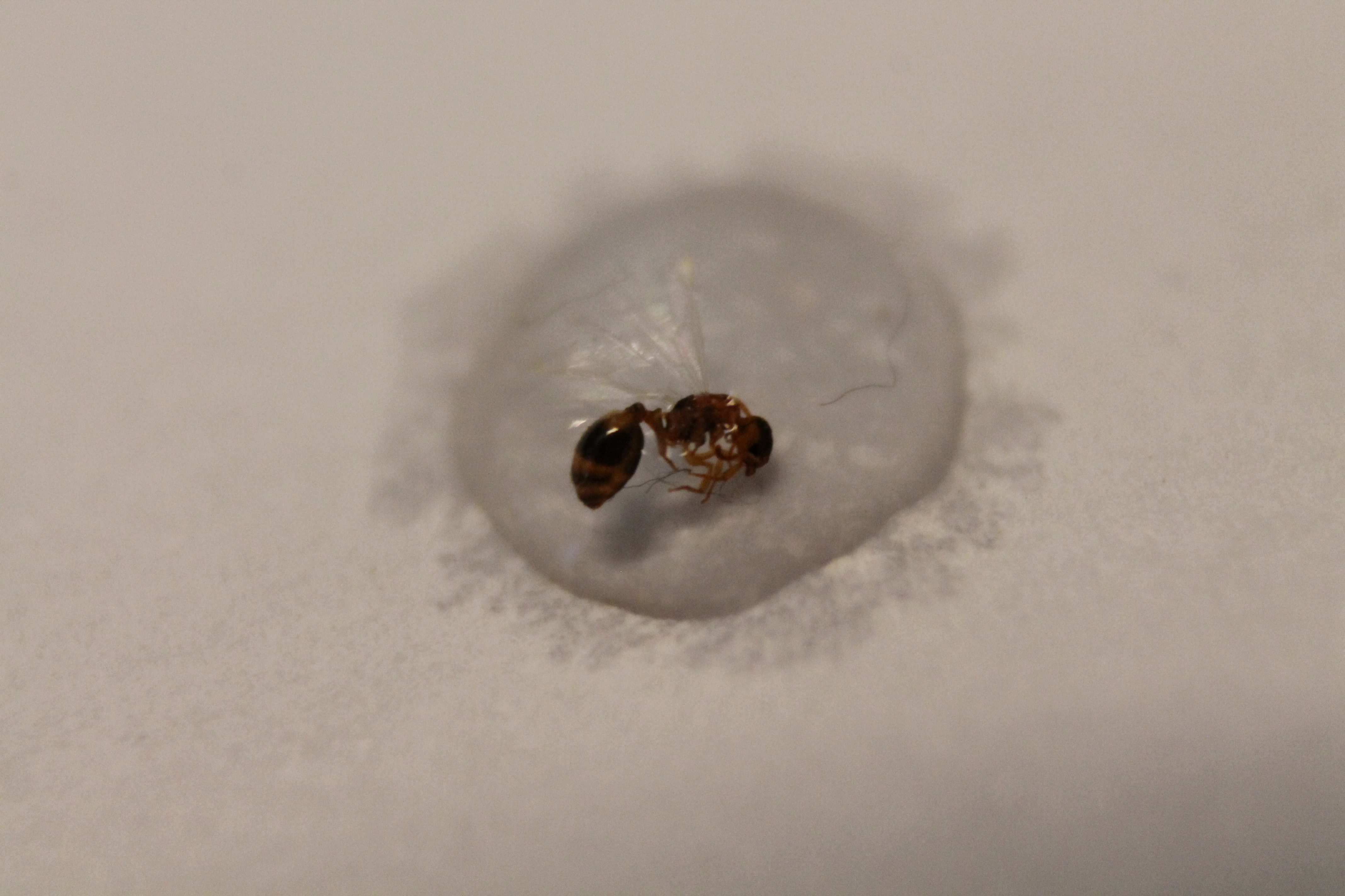 Vielleicht konnte diese eine Jungkönigin es einfach nicht abwarten, endlich zu schwärmen, ist freudig raus gerannt und direkt ins klebrige Verderben...