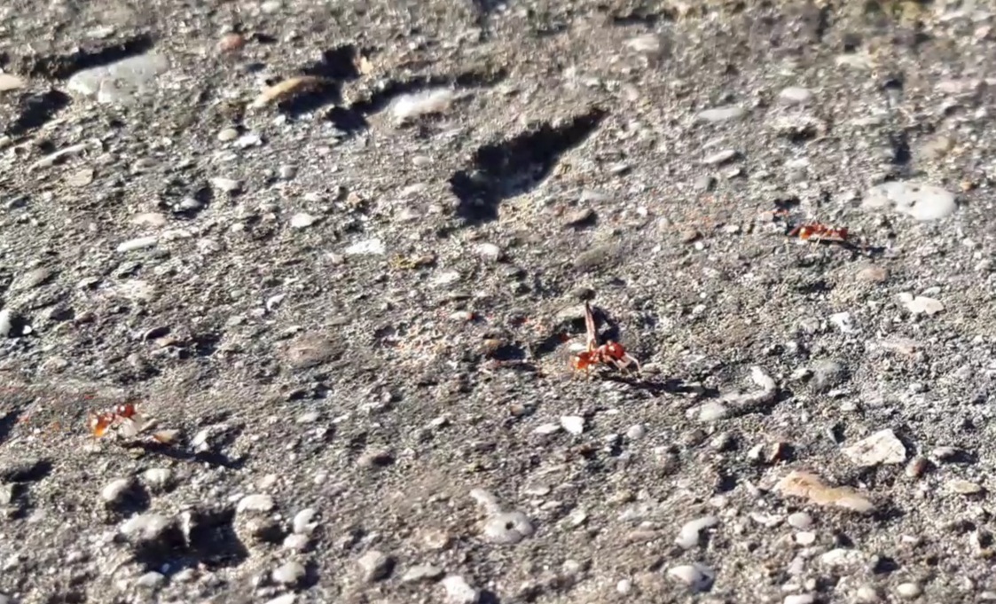 Ich vermute, ich habe in meinem Garten ein Nest von Polyergus rufescens. Ich denke es handelt sich in jedem Fall um eine sklavenhaltende Art, weil ich nun auch ein Art Raubzug beobachten konnte. Unzählige Ameisen liefen wild und wahnsinnig schnell durcheinander. Trotzdem bewegte sich die ganze Gruppe in eine gezielte Richtung, nämlich durch meinen Garten und hinaus Richtung Straße. Später kamen sie ebenso schnell aber zielgerichtet zurückgelaufen Richtung Nest und trugen