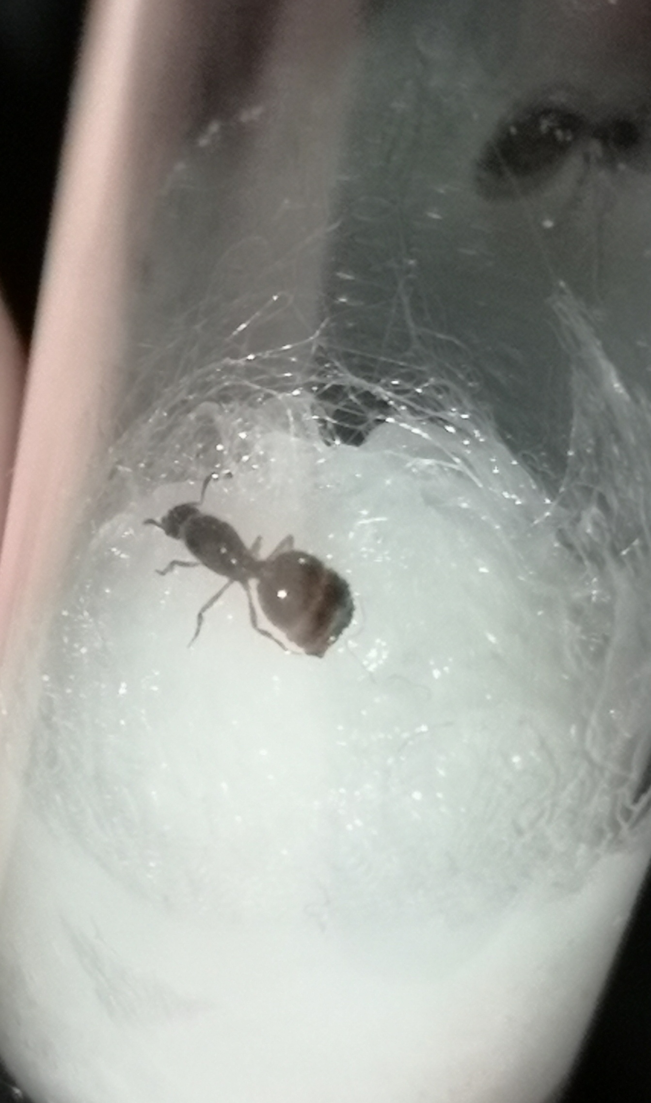 Ich habe sie heute im Zug gefunden. Sie hatte noch Flügel, hab sie aber trotzdem mitgenommen und in eine kleine Dose getan. Als ich zu Hause war, hatte sie die Flügel schon abgeworfen. Ich habe leider keine Ahnung was es für eine Art ist, sie ist nämlich sehr klein (0.6-0.8cm.) Bei der Reise hat sie sich eine kleine Verletzung zugezogen, ich weiß nicht wie schwerwiegend es ist.