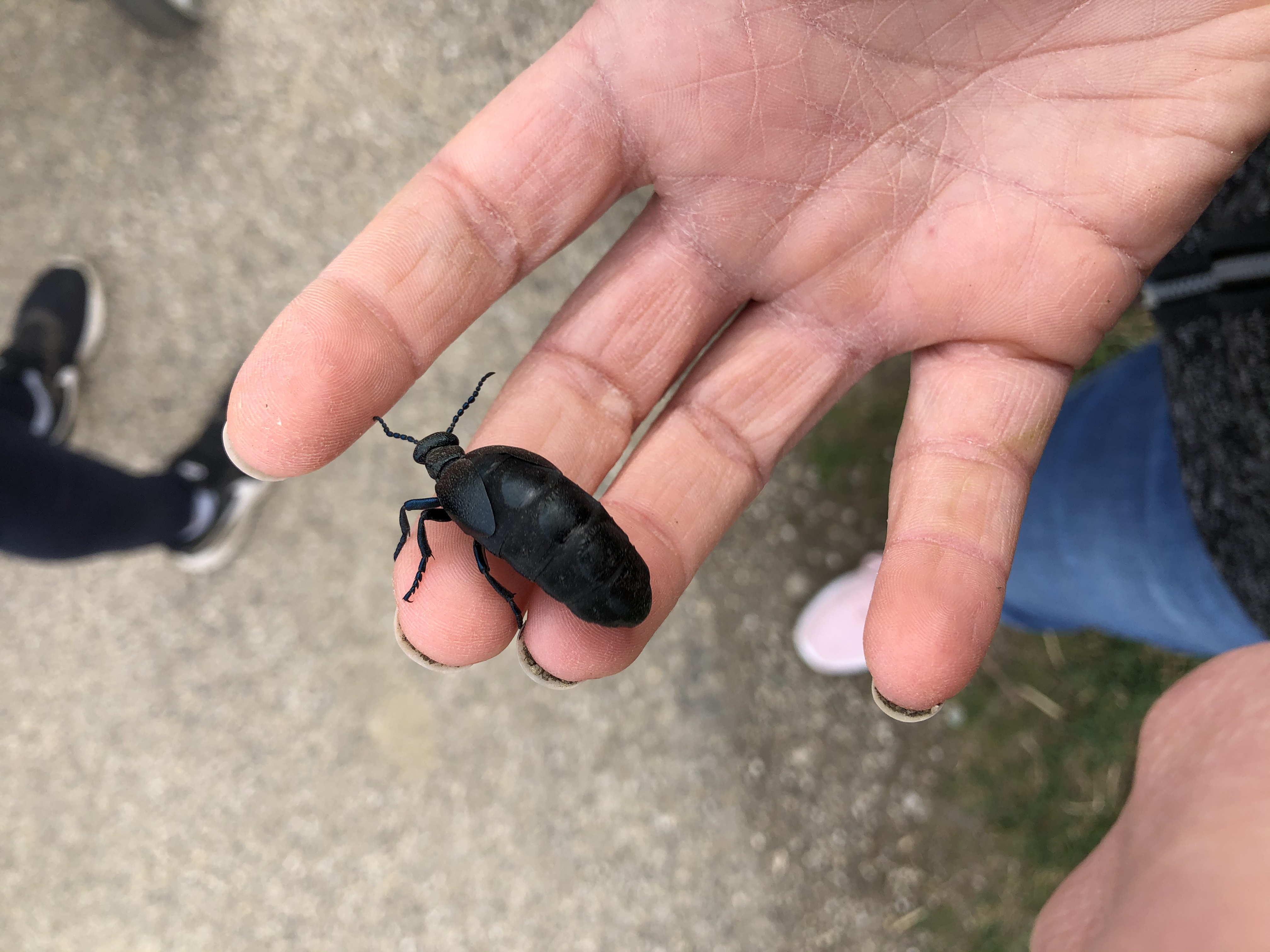 Das ist ein Ölkäfer. Die sind ziemlich giftig, also lieber nicht anfassen.