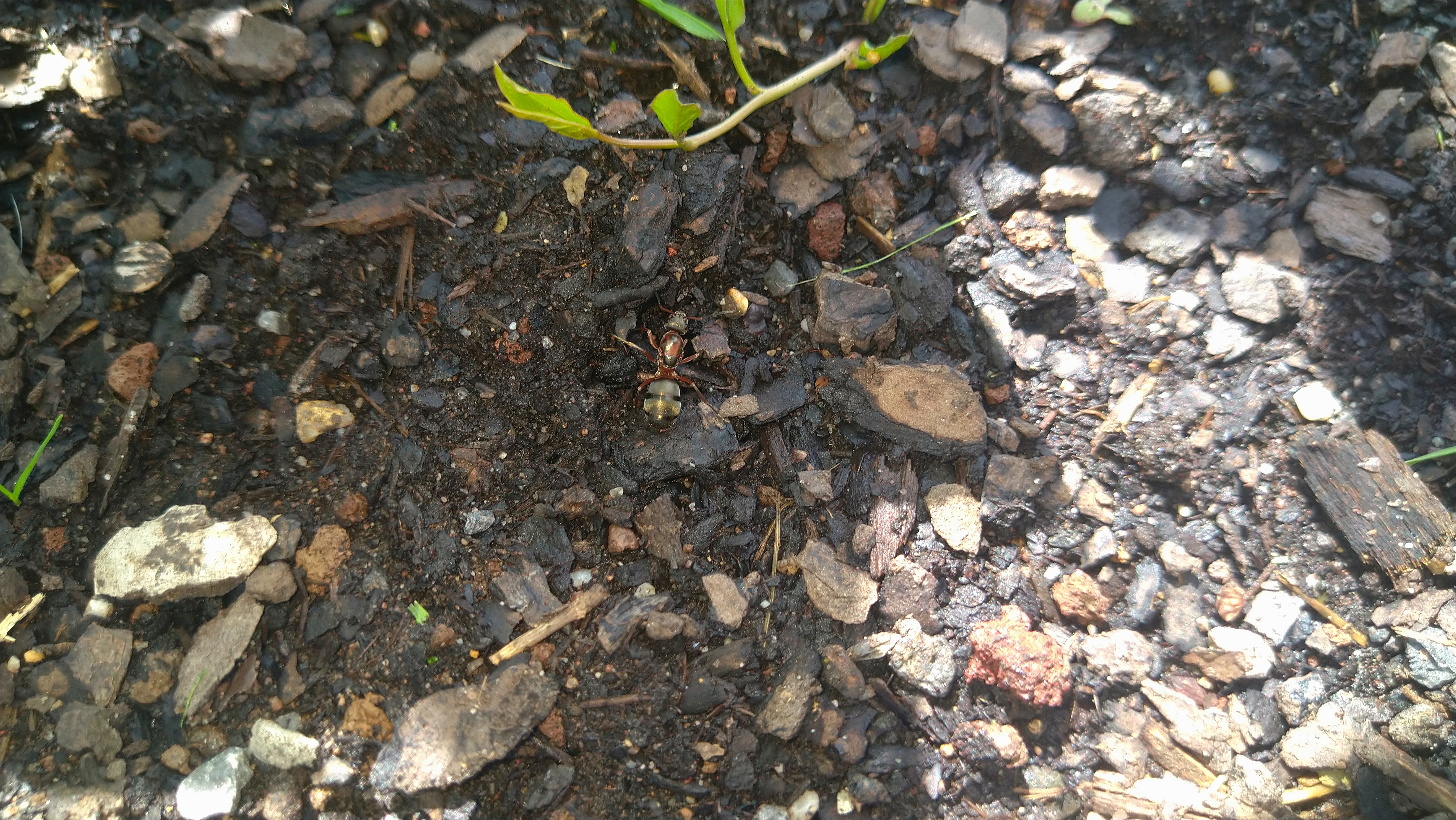 Eine war ziemlich sicher eine Lasius niger. Diese wollte ich als erste Kolonie auch haben, allerdings hatte ich kein passendes Gefäß dabei und sie konnte aus dem Beutel ausbrechen, den ich im Auto liegen hatte.