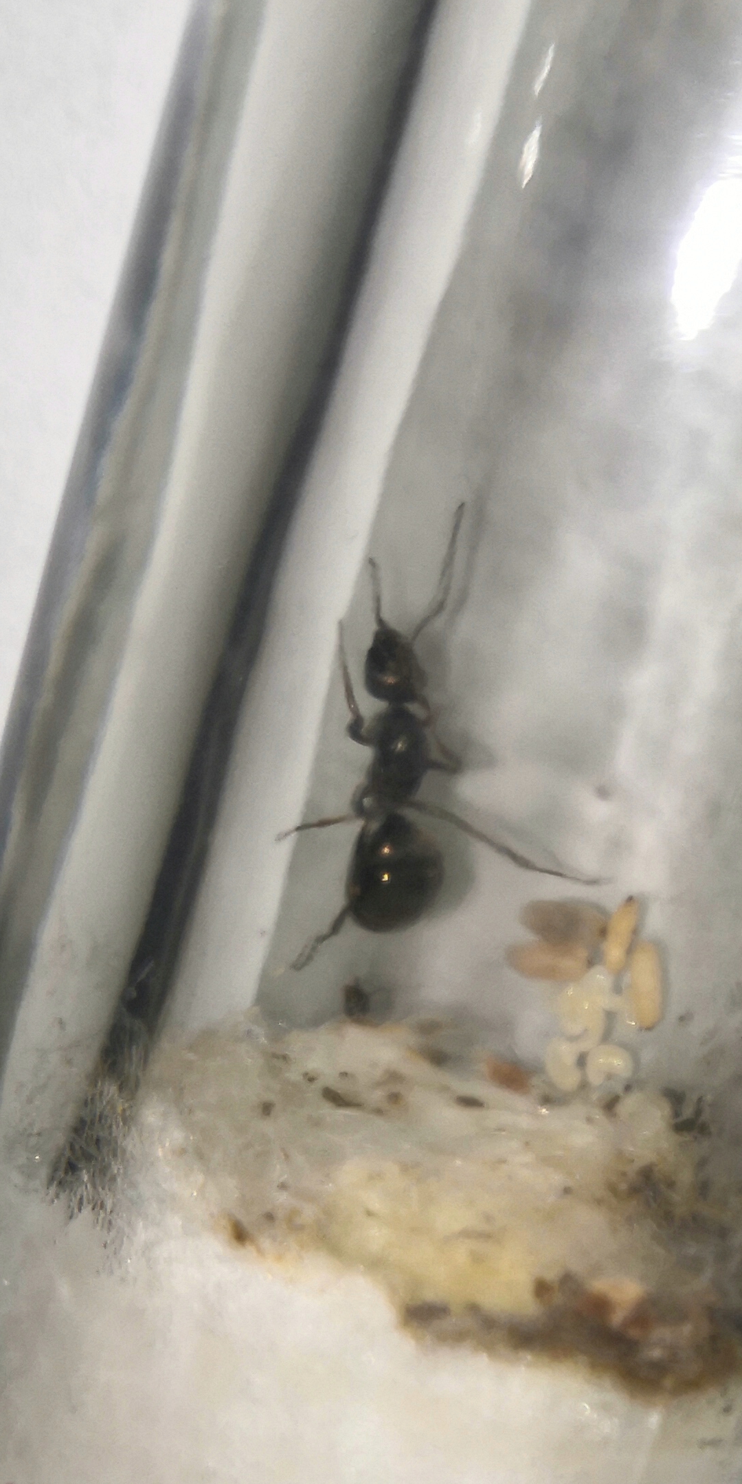 Die Bilder sind nicht die besten, aber soweit ich es erkennen kann, handelt es sich hier um eine Serviformica-Gyne , definitiv nicht um Lasius fuliginosus. Ist die Brut beigefĂŒgt oder hat die Gyne selbst Eier gelegt?