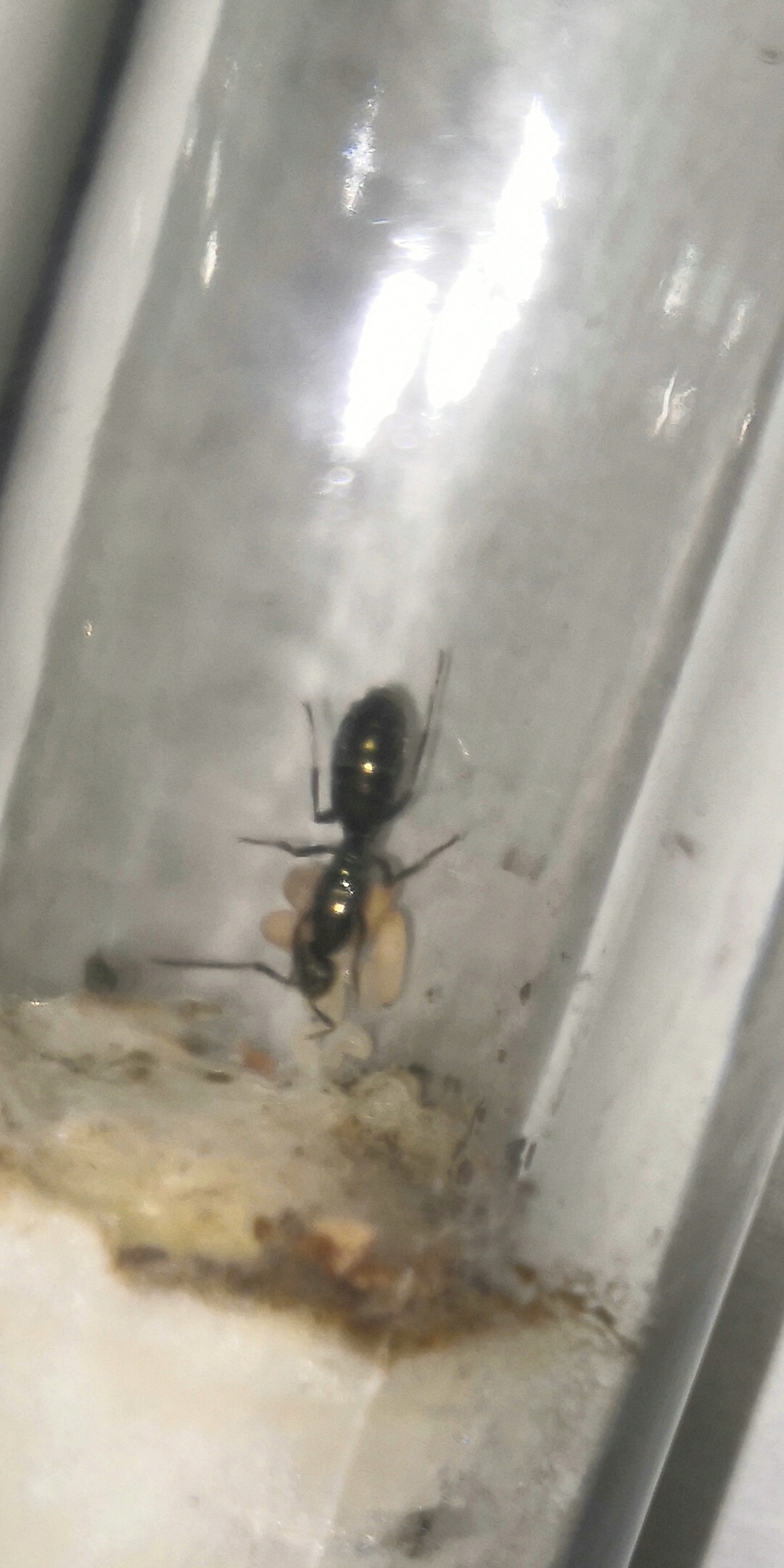 Die Puppen sind die meisten die eigenen, hatte einen Versuch mit vermutlich Lasius niger, kleine schwarze Ameisen aus Erdboden von einer Wiese, mit Arbeiterinnen hat sie sich nicht vertragen.