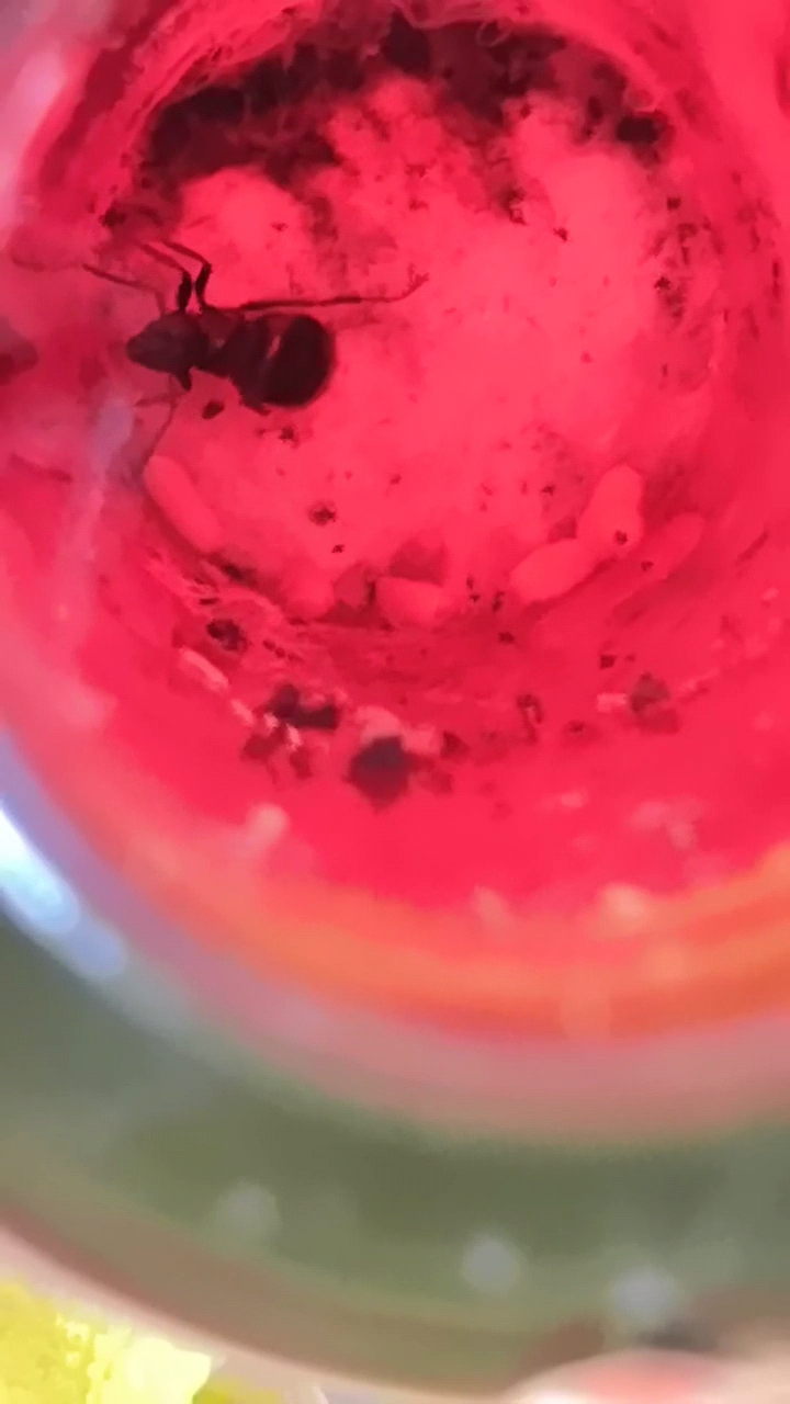 Mittlerweile habe ich rote Folie auf das Nest geklebt, welche leider nicht mehr abgeht, aber kann mal versuchen ein besseres Foto zu machen, Videos kann man hier nicht hochladen? Habe ein schönes von der Lasius fuliginosus-Kolonie.