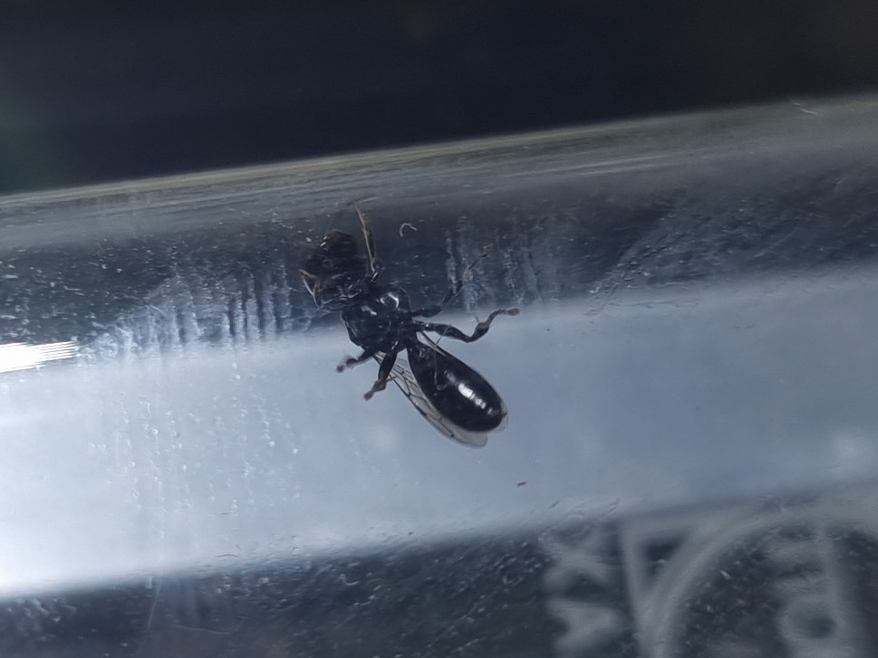 ich habe heute durch Zufall an einer Fensterinnenscheibe folgende Ameise gefunden. Für mich sieht der Gaster irgendwie zu klein aus für eine Königin, lasse mich aber gerne überraschen.