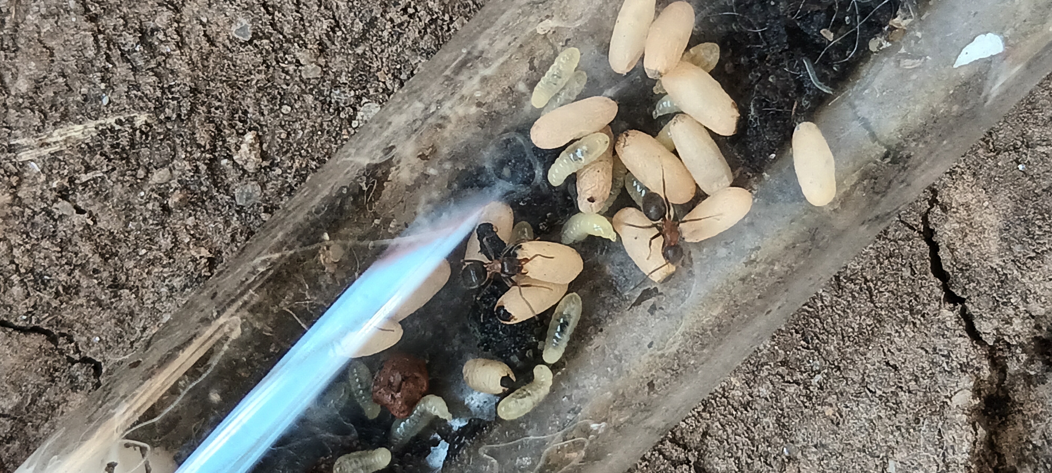 Die zweite ist eine (ebenfalls sozialparasitär gründende) Art aus der Untergattung Chthonolasius. Ein Gründungsversuch mit Puppen ist hier ebenfalls möglich.