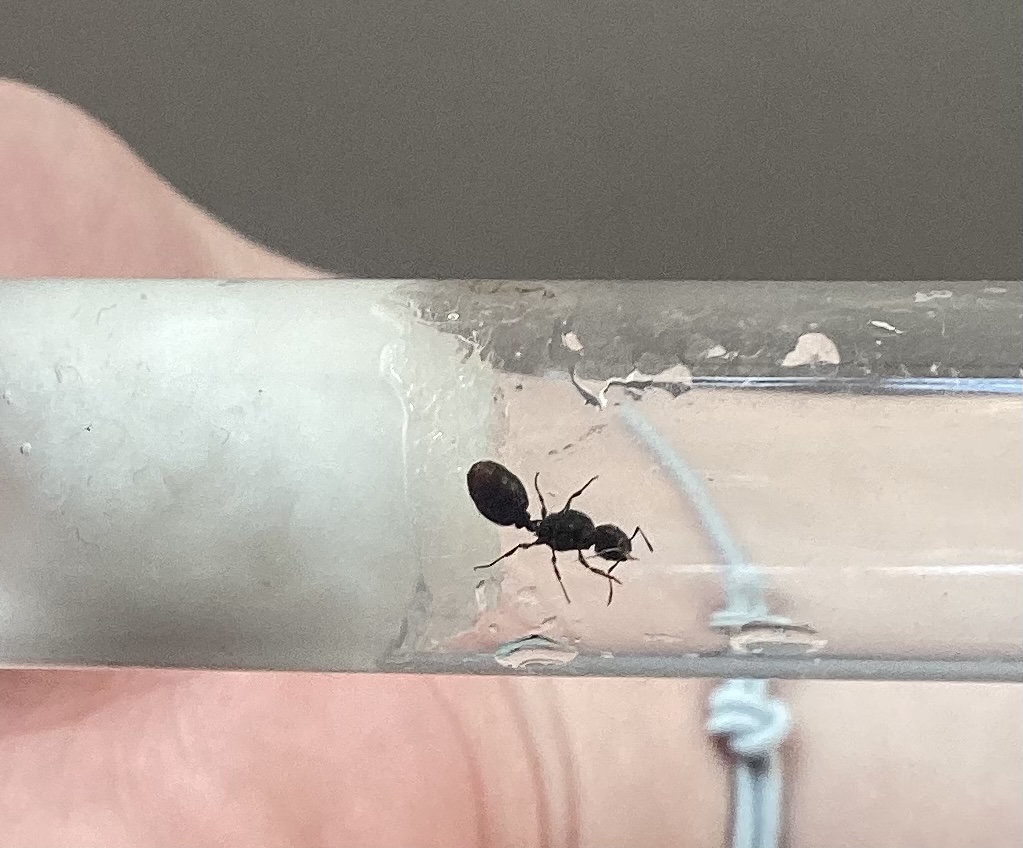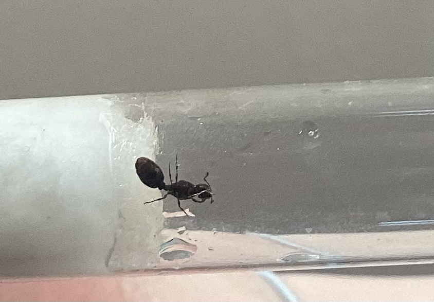 Ich hoffe man kann es auch ohne ReferenzgröĂe einordnen, sie ist aber auf jeden Fall kleiner als die Lasius niger, die ich letztes Jahr gefangen habe.