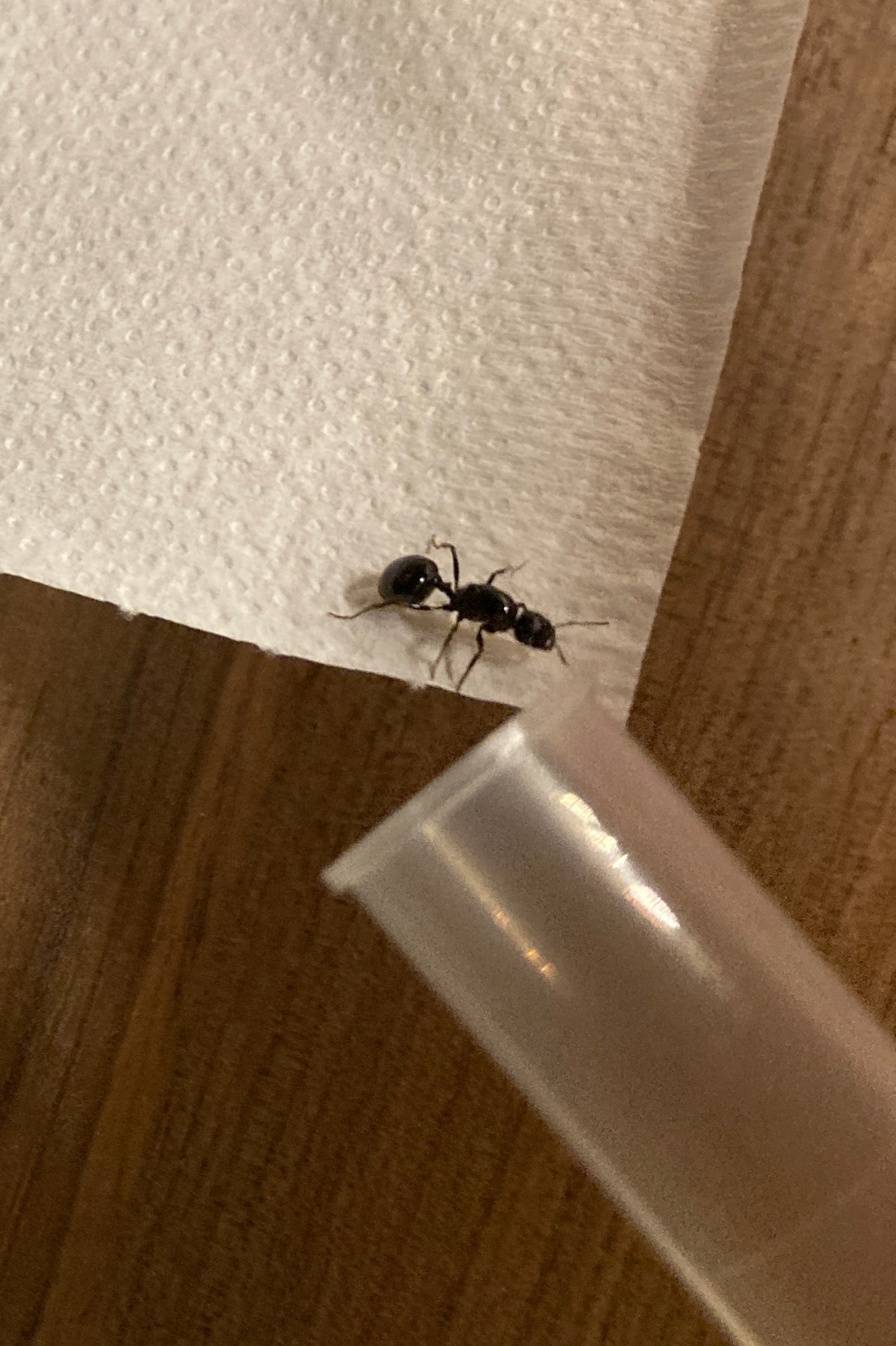 Diesmal habe ich eineGyne gefunden und ich vermute, dass es eine Messor sp . ist, da sie mMn sehr ähnlich aussieht, wie Messor Gynen auf Bildern und ich im Umkreis von mehreren Hundert Metern nur Messor Nester fand. Gefunden wurde sie am 01.09.22 im Mittelmeerraum (Nähe Rom) im städtischen Gebiet nachdem es geregnet hat. Sie ist etwa 14mm lang und, soweit ich es sehen kann, komplett schwarz. Hier sind noch ein paar Bilder, die leider etwas unscharf sind, weil sie sehr schnell ist. Hoffentlich reichen sie, damit mir jemand die Gattung und vielleicht sogar die Art sagen kann.