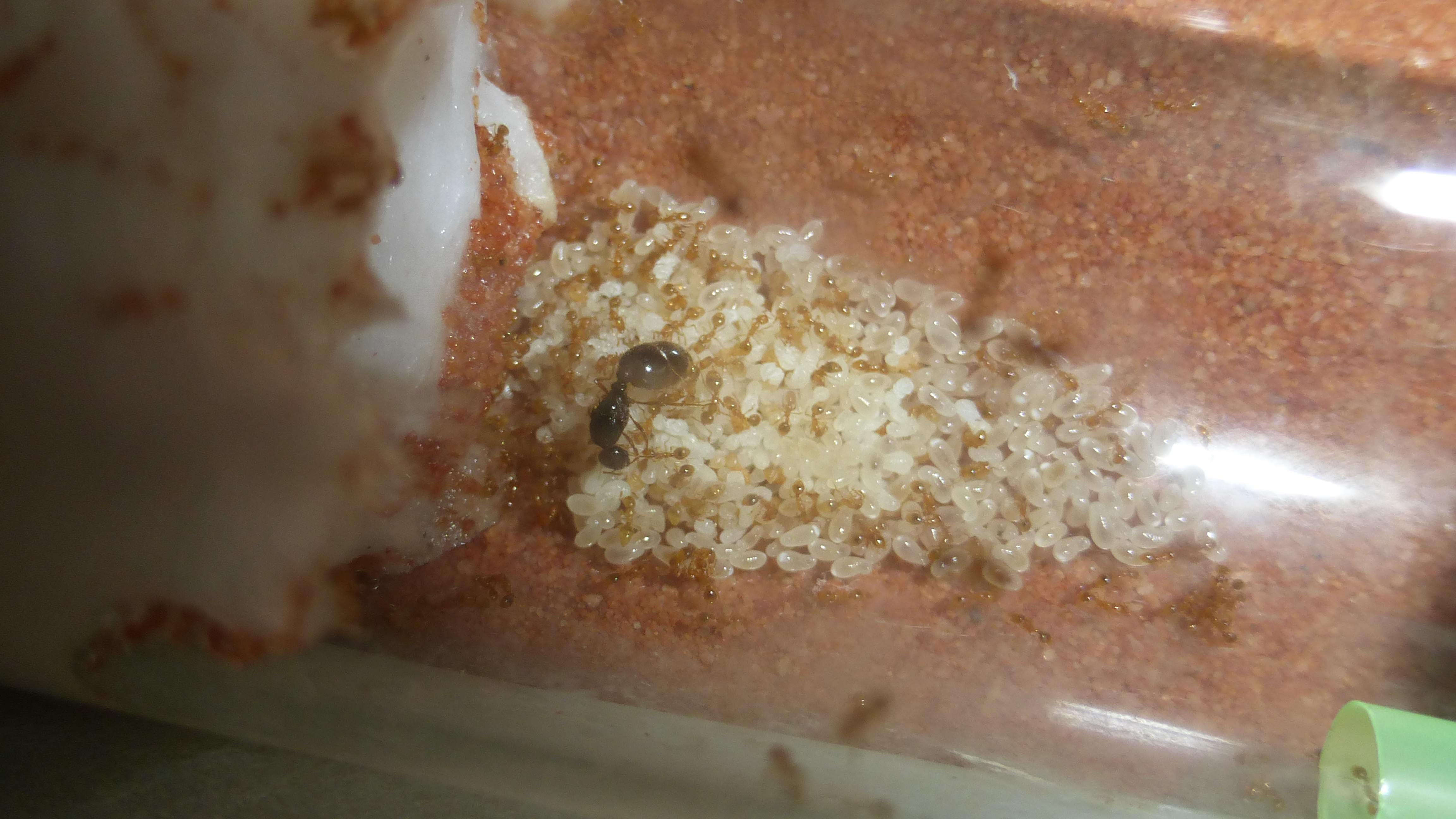 Pro Tipp: Keinen roten Bodengrund verwenden, die Arbeiterinnen sind darauf praktisch unsichtbar. Auf hellem Sand sind sie sehr gut sichtbar, dunkler Bodengrund geht so.