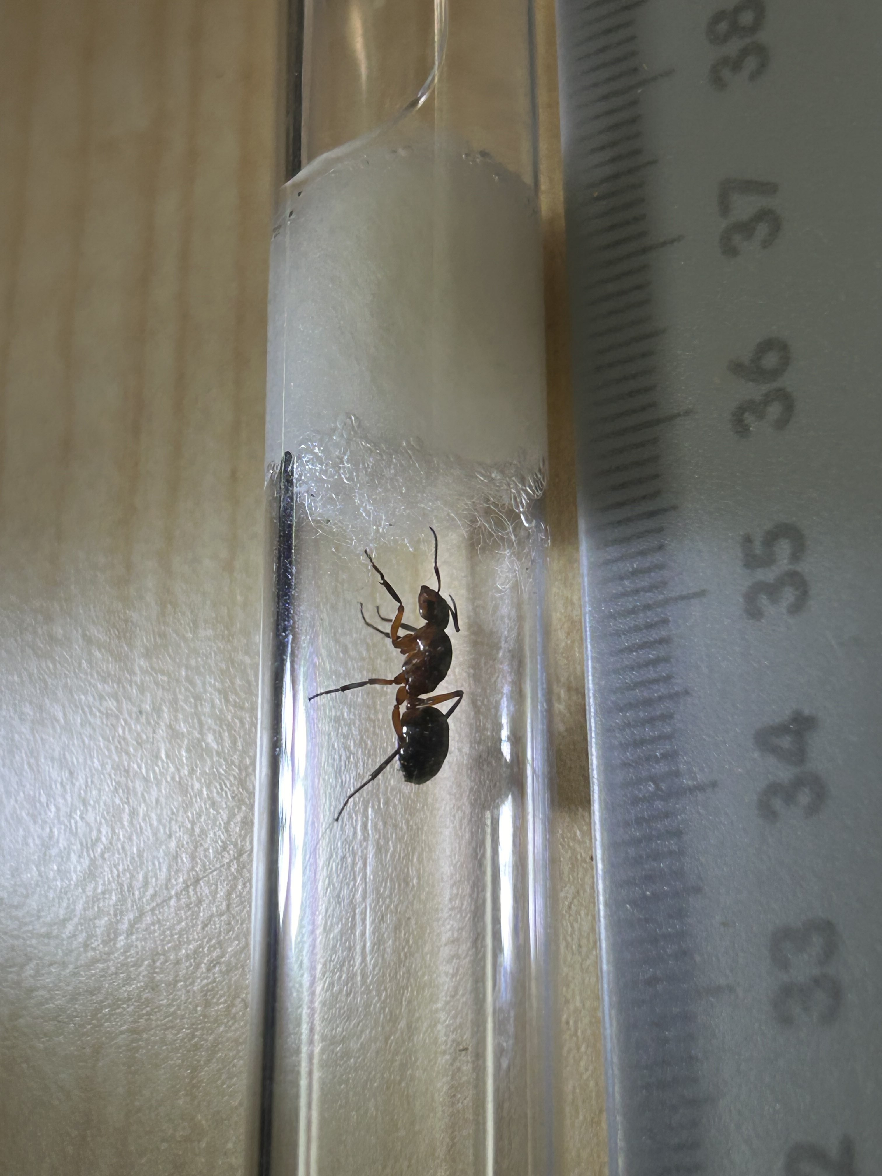 Ich bin heute in der Nähe Hamburgs auf eine FormicaKönigin gestoßen. Diese hielt ich für eine geschützte Formica spec., jedoch fielen mir dann die Kerben unter den Mandibeln auf. Ich habe nun etwas in einer anderen Ameisencommunity herumgefragt und auch, wenn der Großteil ebenfalls der Meinung ist, dass es sich um sanguinea handelt, wurde ebenfalls gemeint, dass die Färbung sehr unüblich für sanguinea sei. Was haltet ihr dazu?