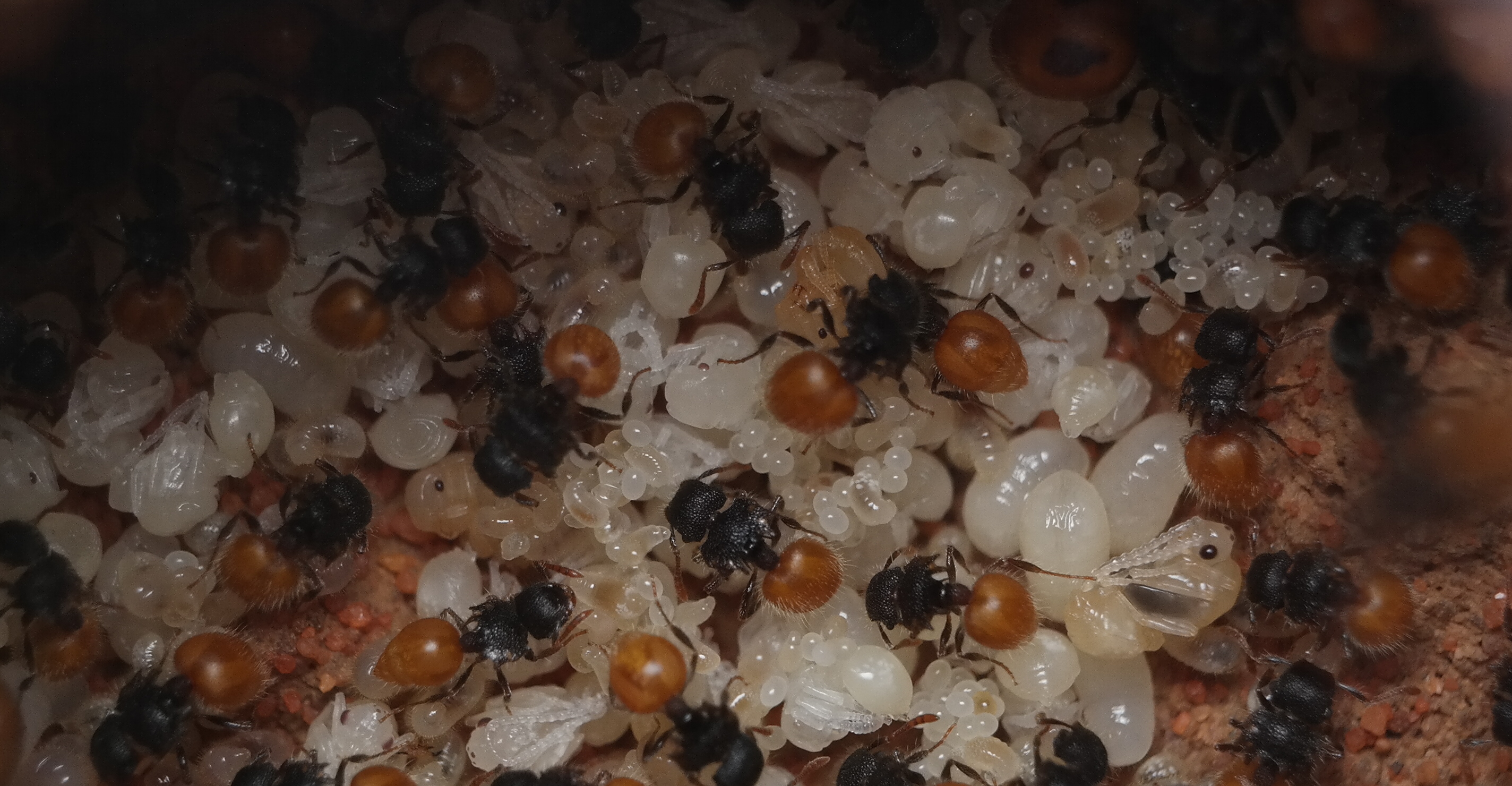 2019 habe ich eine winzige Kolonie der Art mit zwei Königinnen und etwa 5 Arbeiterinnen bekommen. Die Kolonie ist mit der Zeit stetig gewachsen, und pendelte sich irgendwann bei ein paar hundert Arbeiterinnen ein.