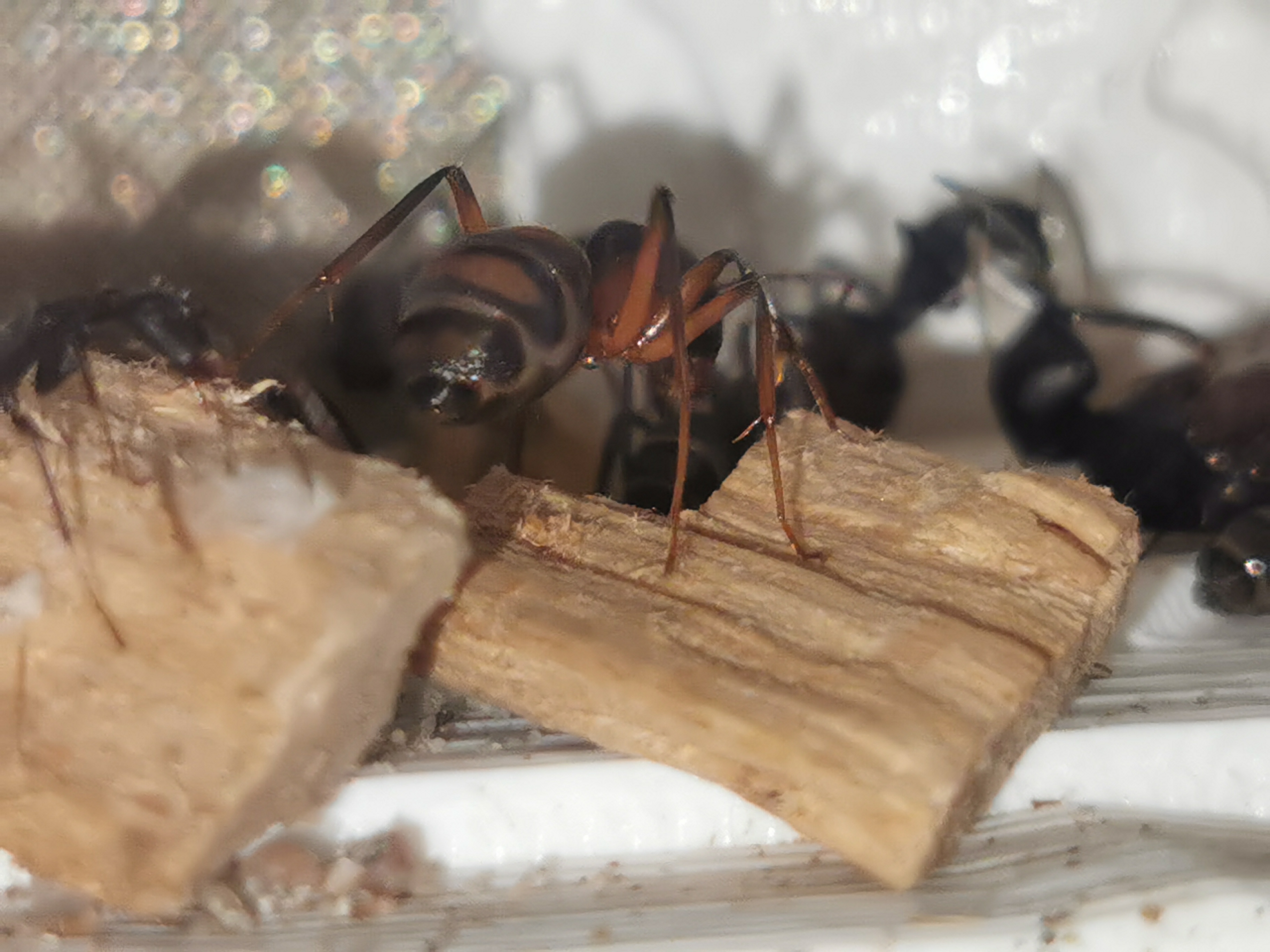 Vor 3 Tagen habe ich eine Kolonie Camponotus cruentatus mit arena und nest erworben. Vor 2 tagen hatte ich so ein ungutes gefühl. Und gestern ist es geschen die arbeiter trugen sie Königin Kreuz und quer durch das nest.