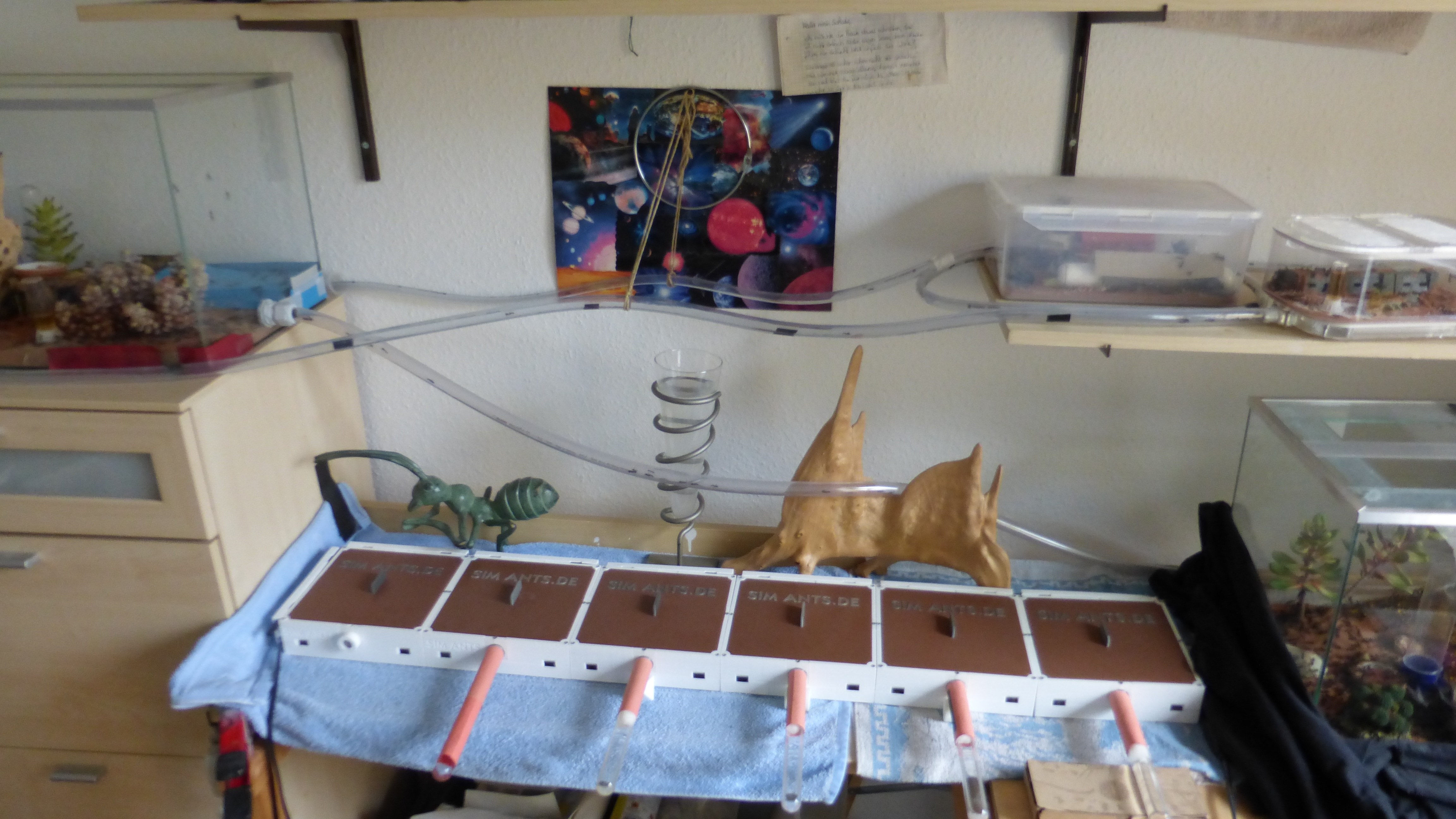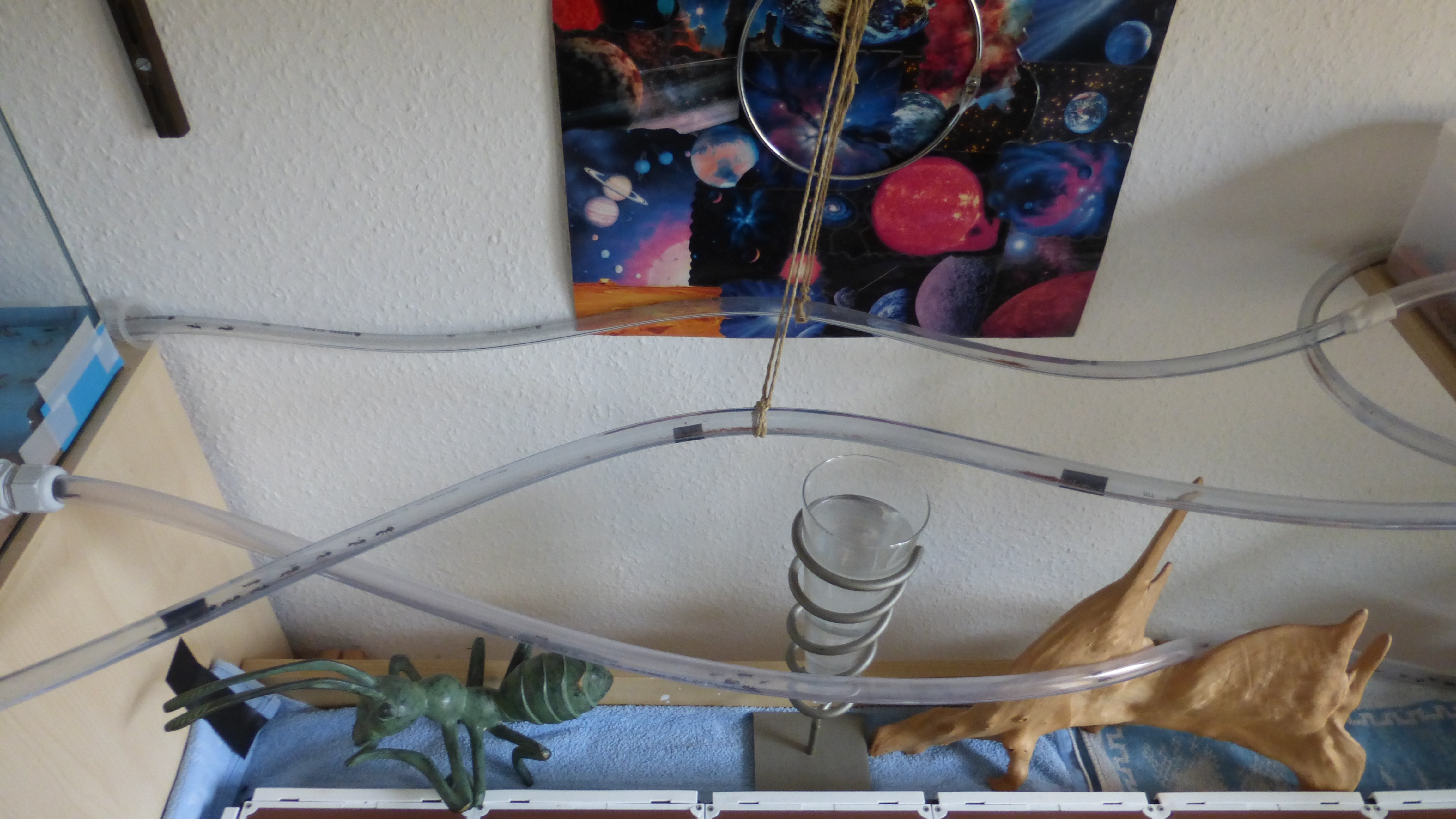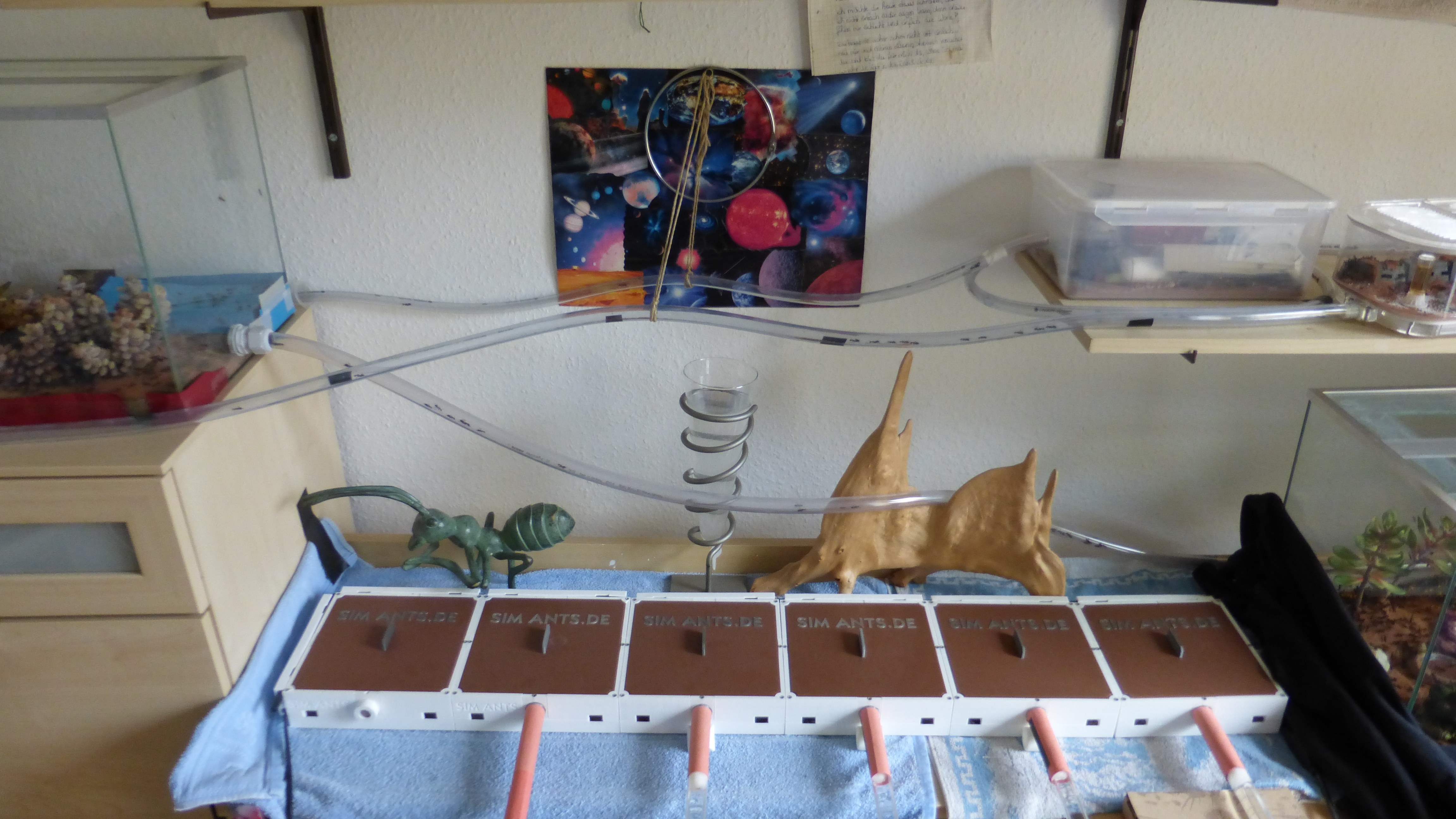 Das Shrimpsröhrenhotel ist voller als je zuvor, scheinbar sind ein paar Ameisen aus der benachbarten Plastikbox hierher umgezogen. Mittlerweile gleicht es praktisch einem dieser japanischen Kapselhotels.