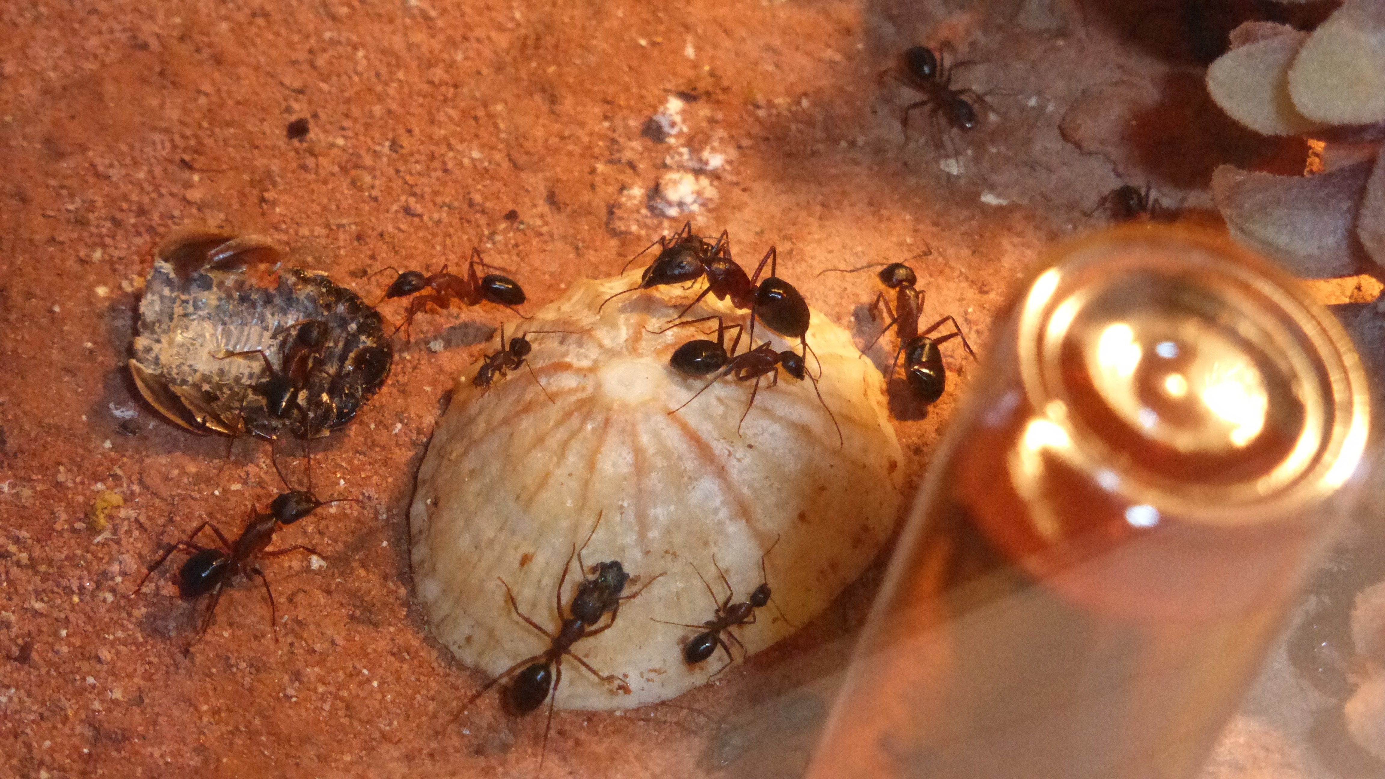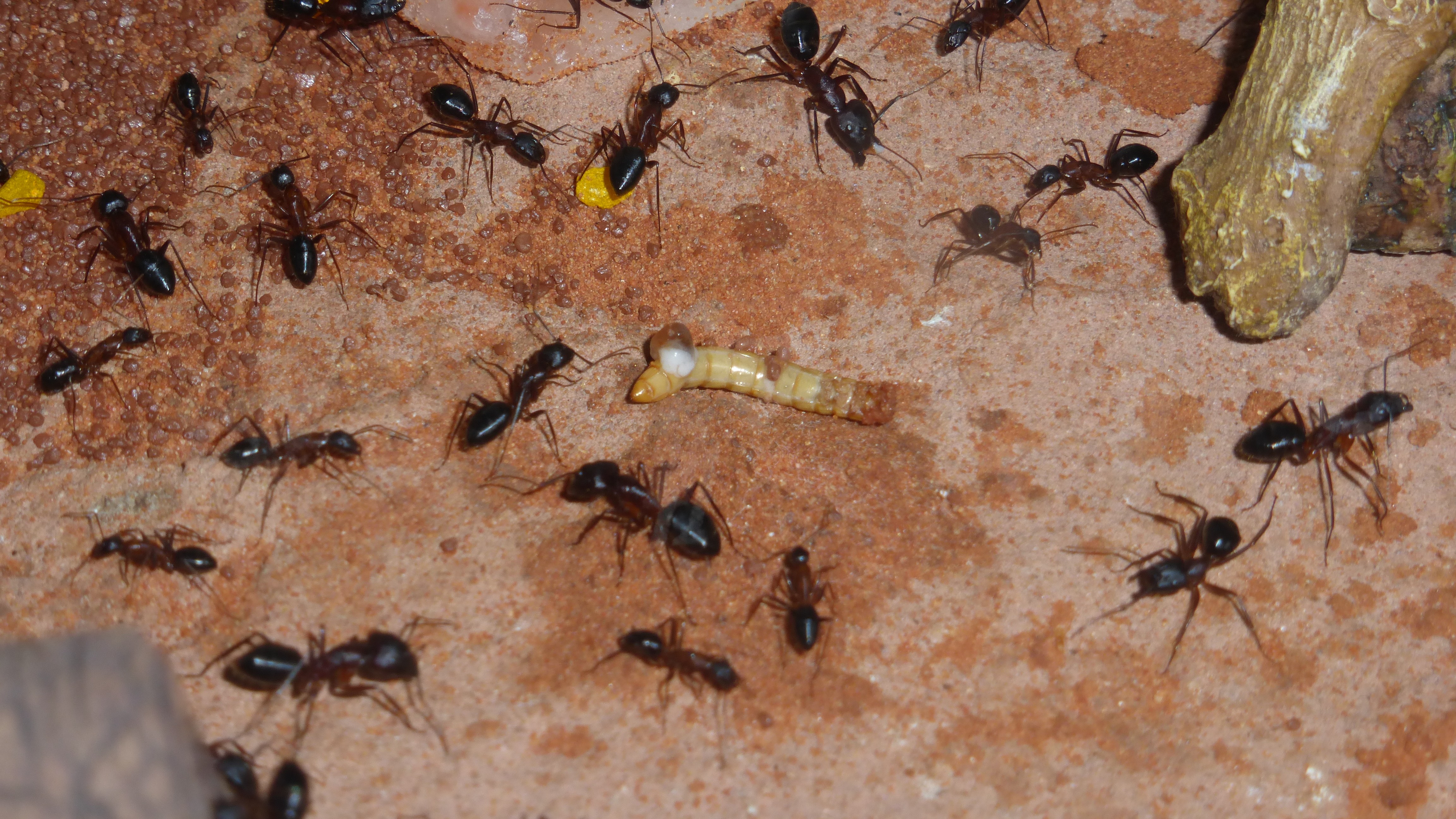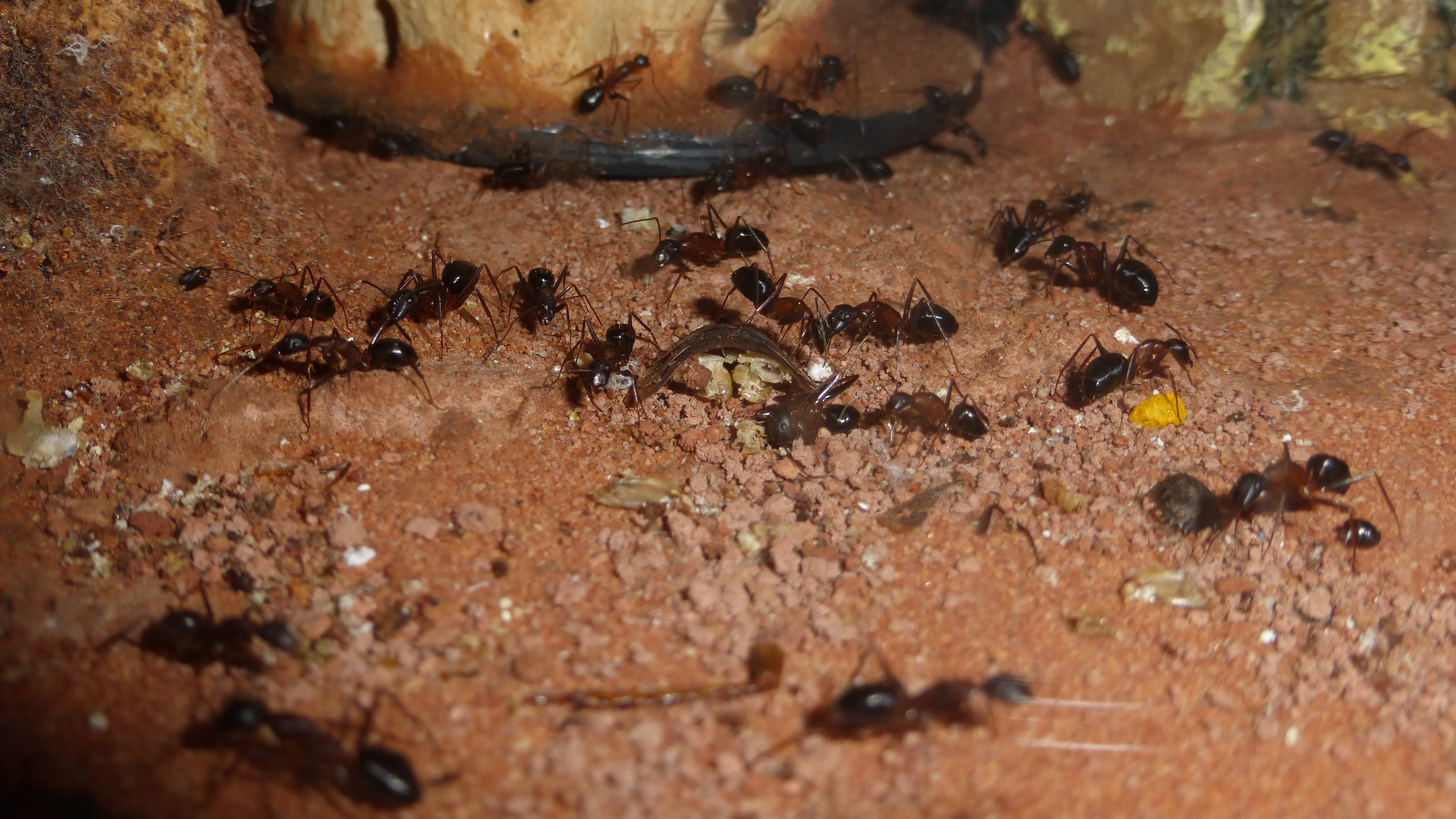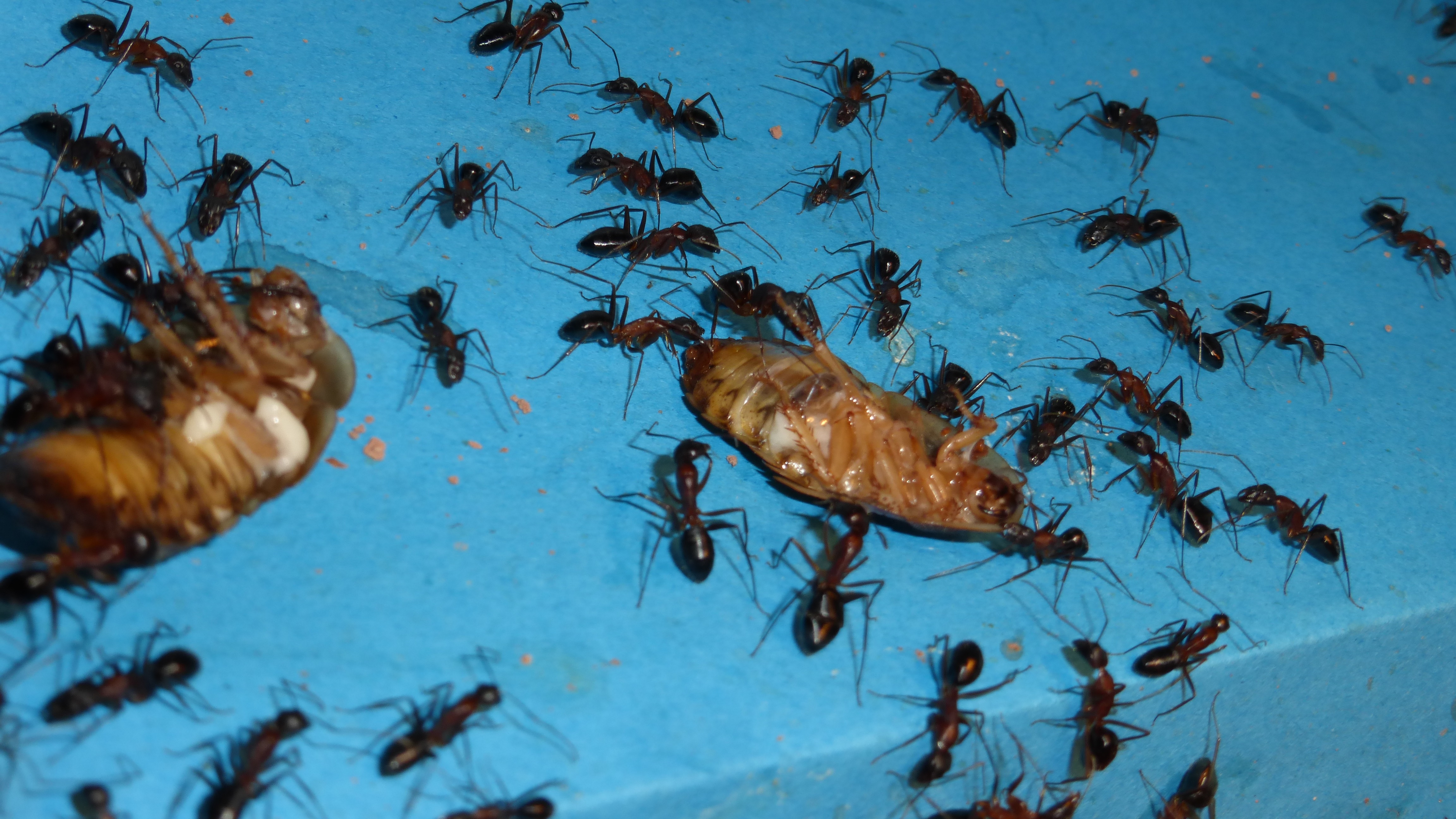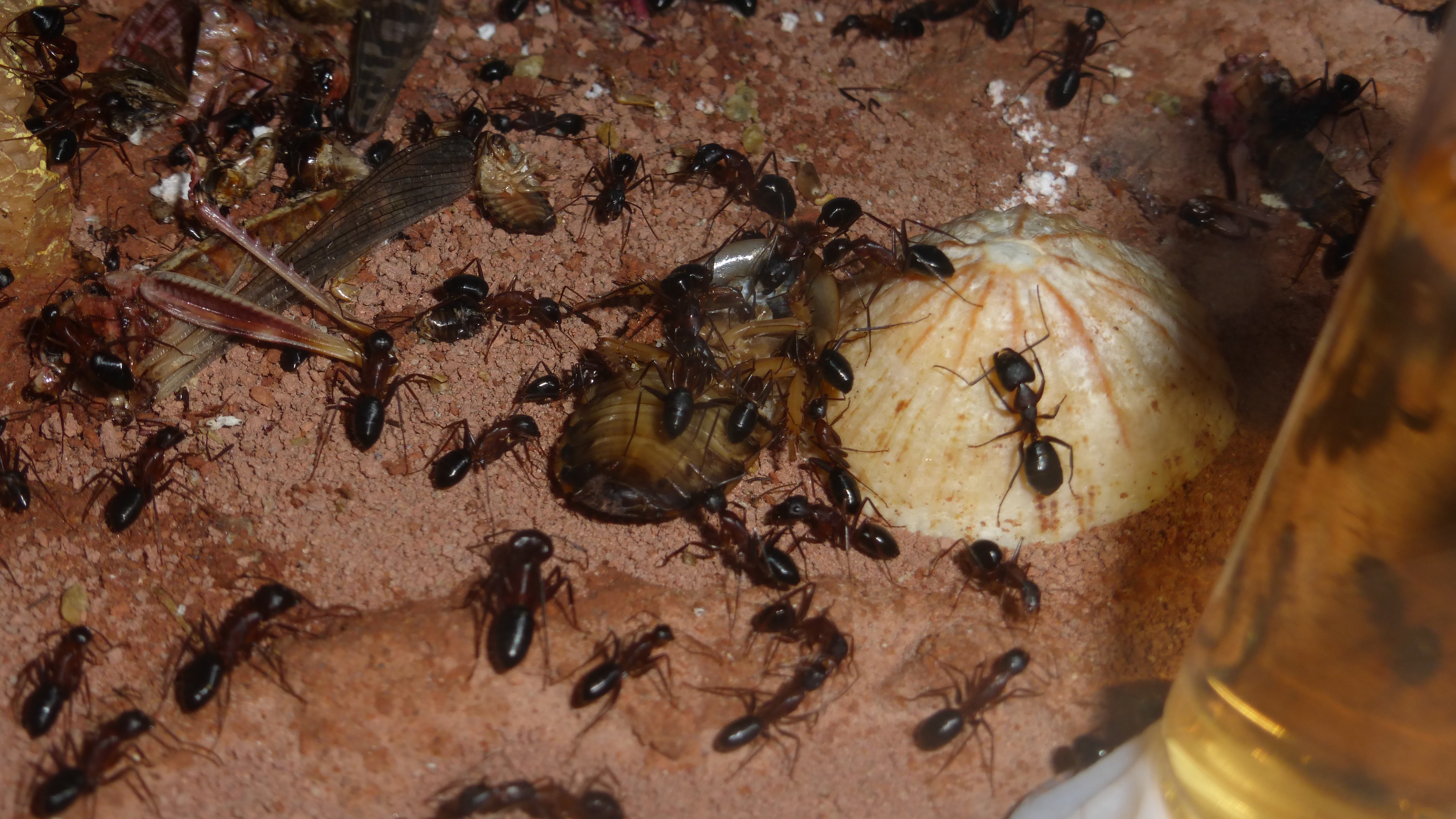 Die Myrmica machen sich weiterhin gut, hier zerlegen sie grad ne kleine Schabe.