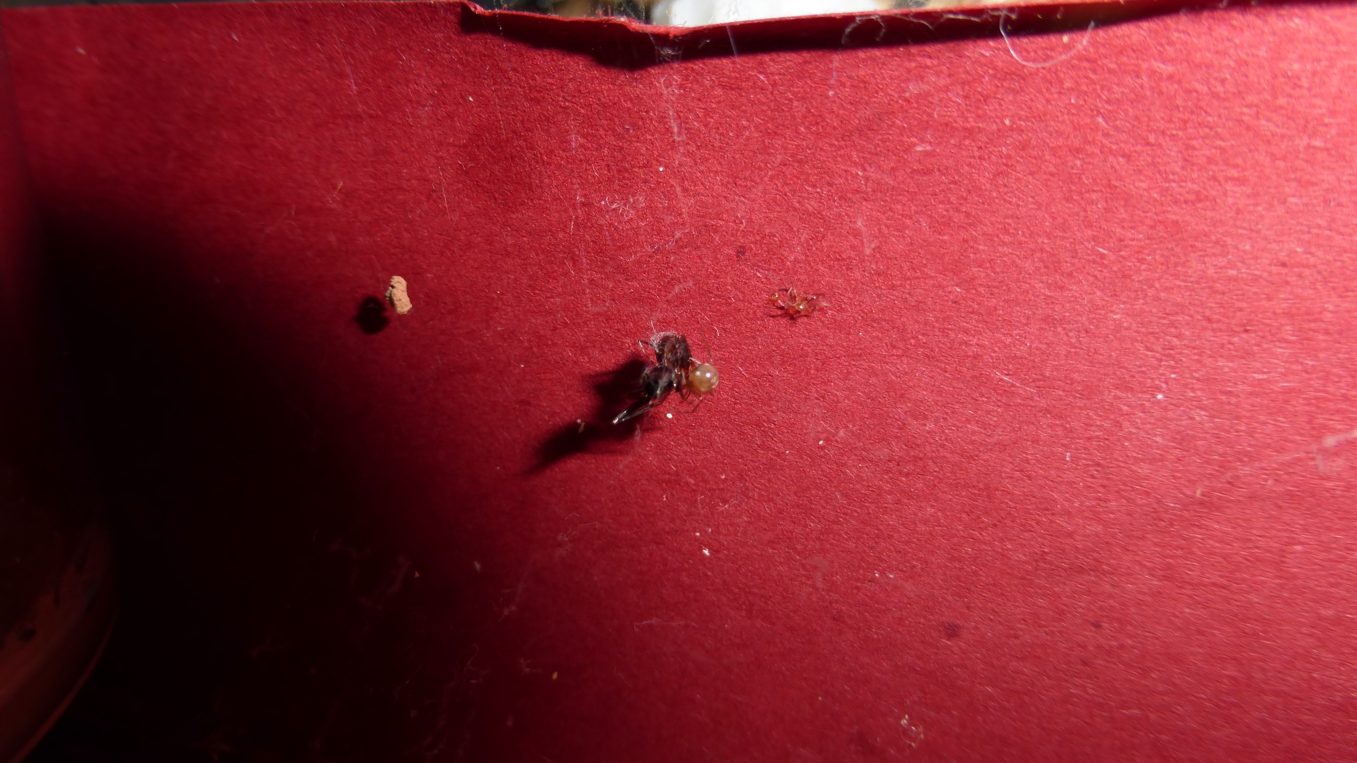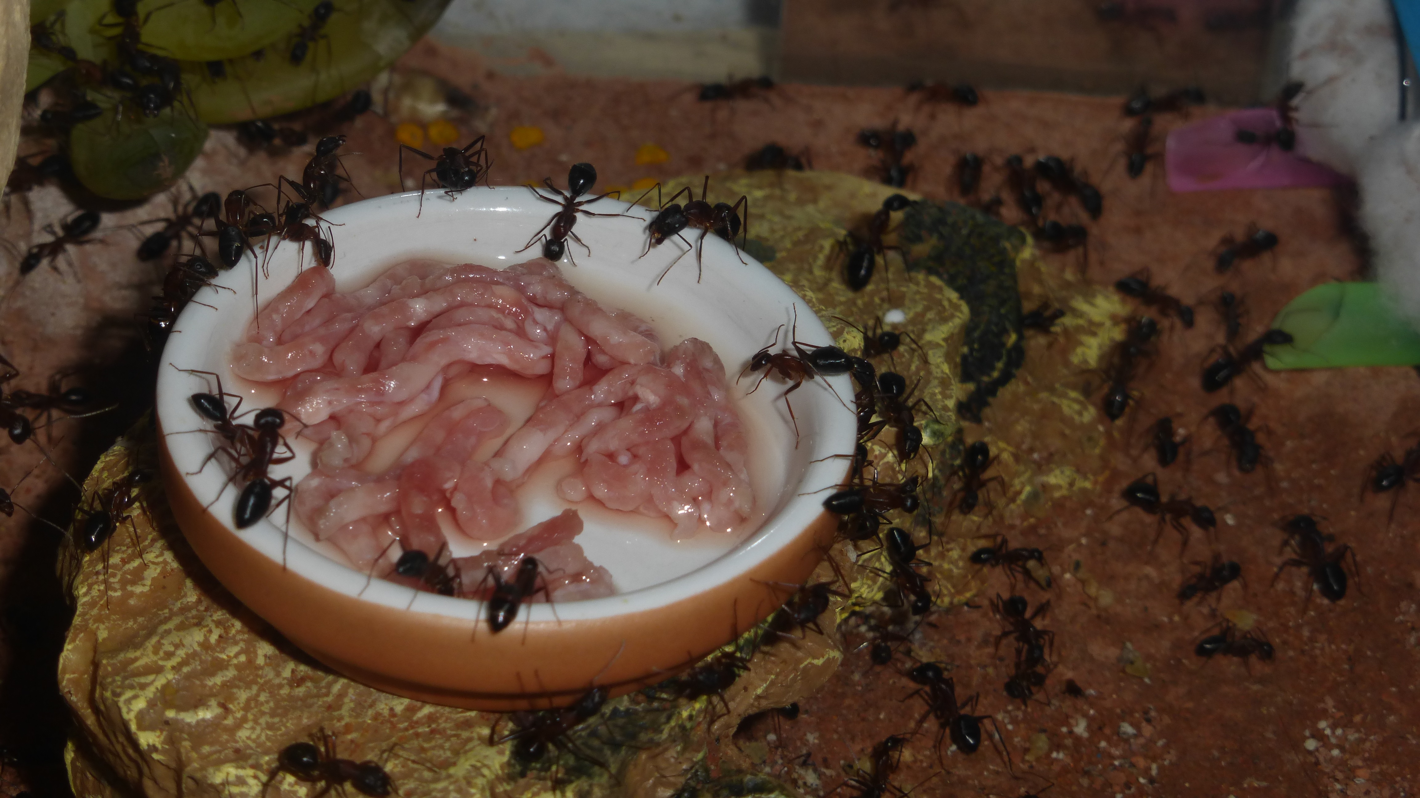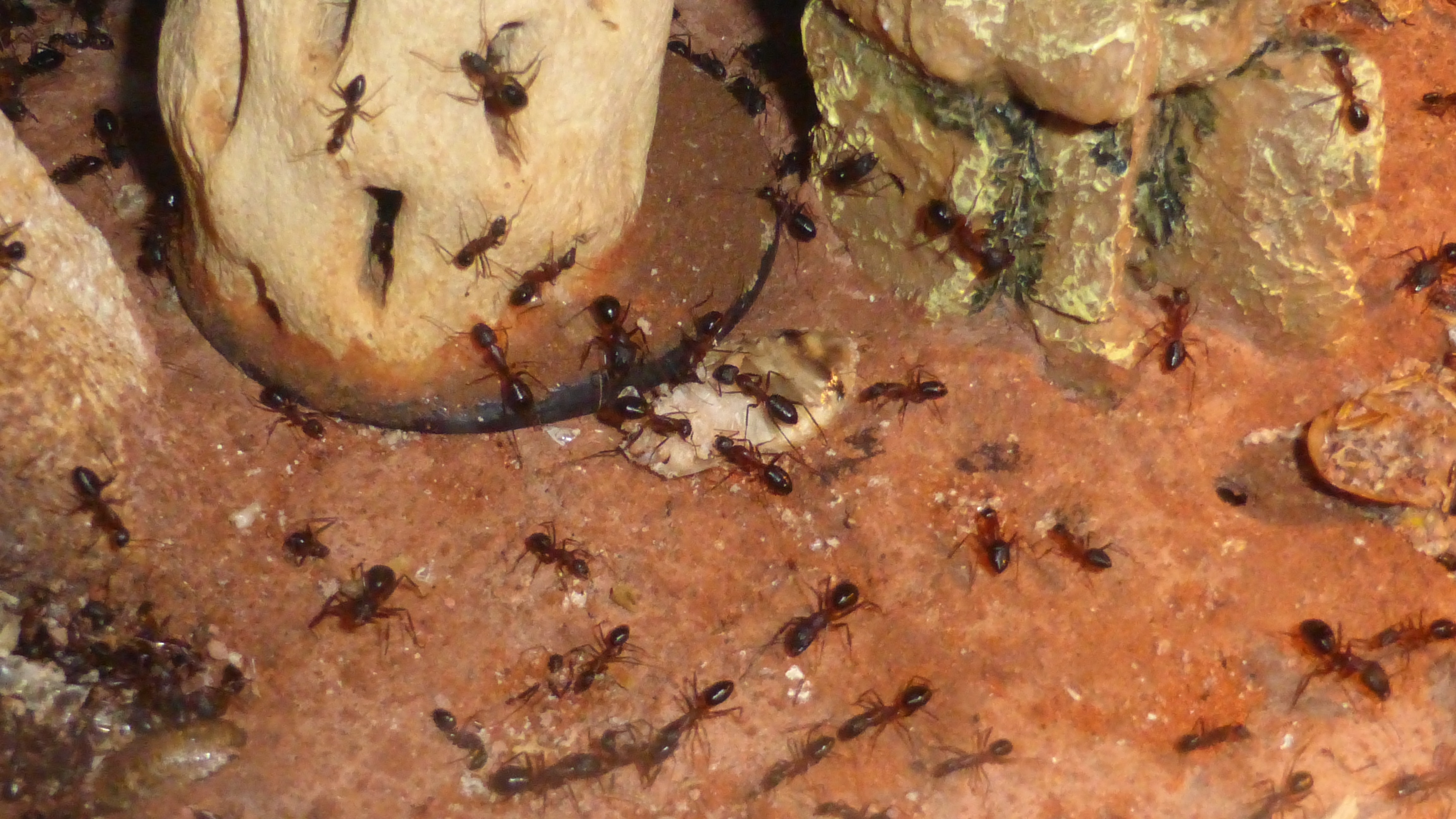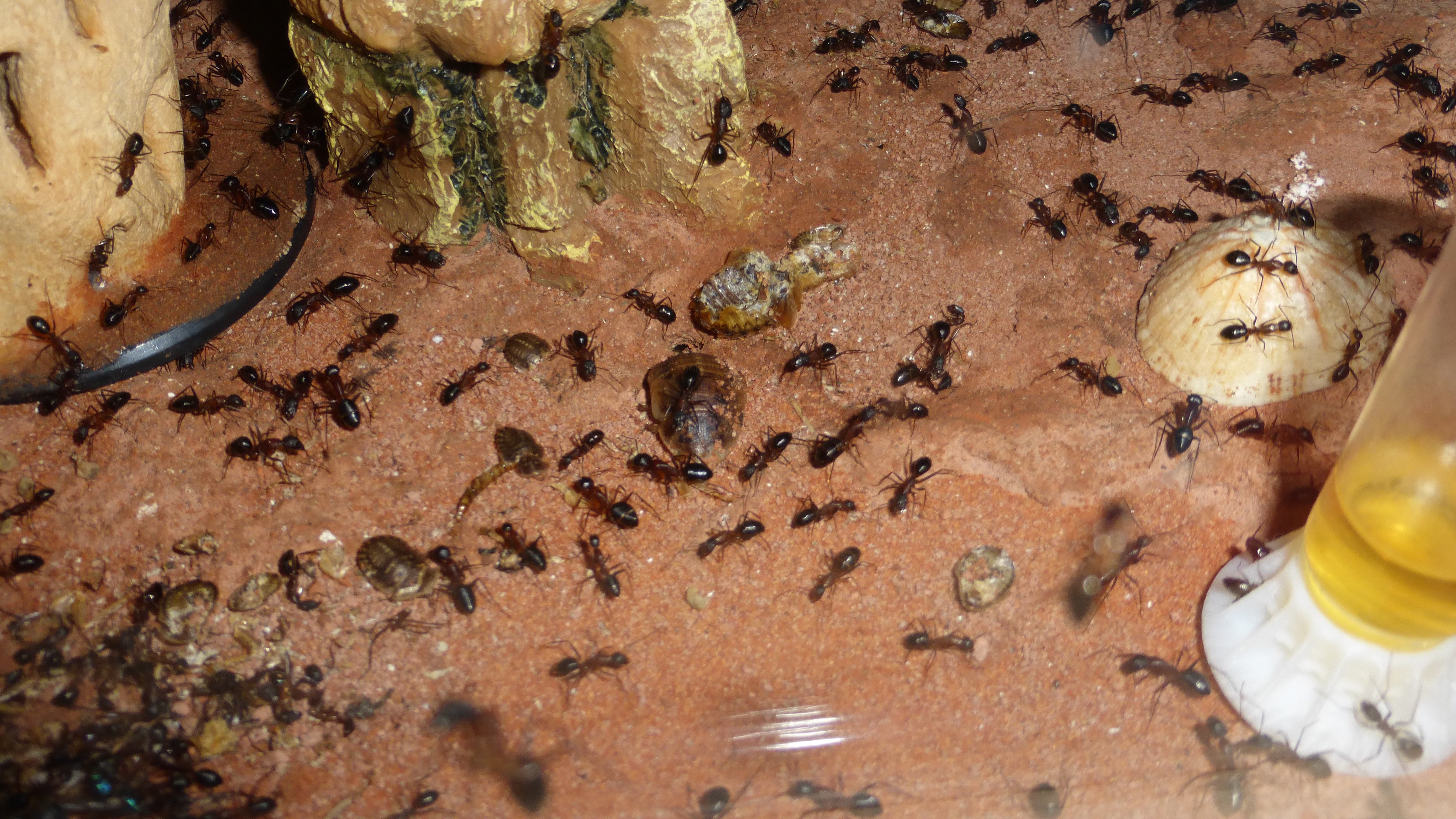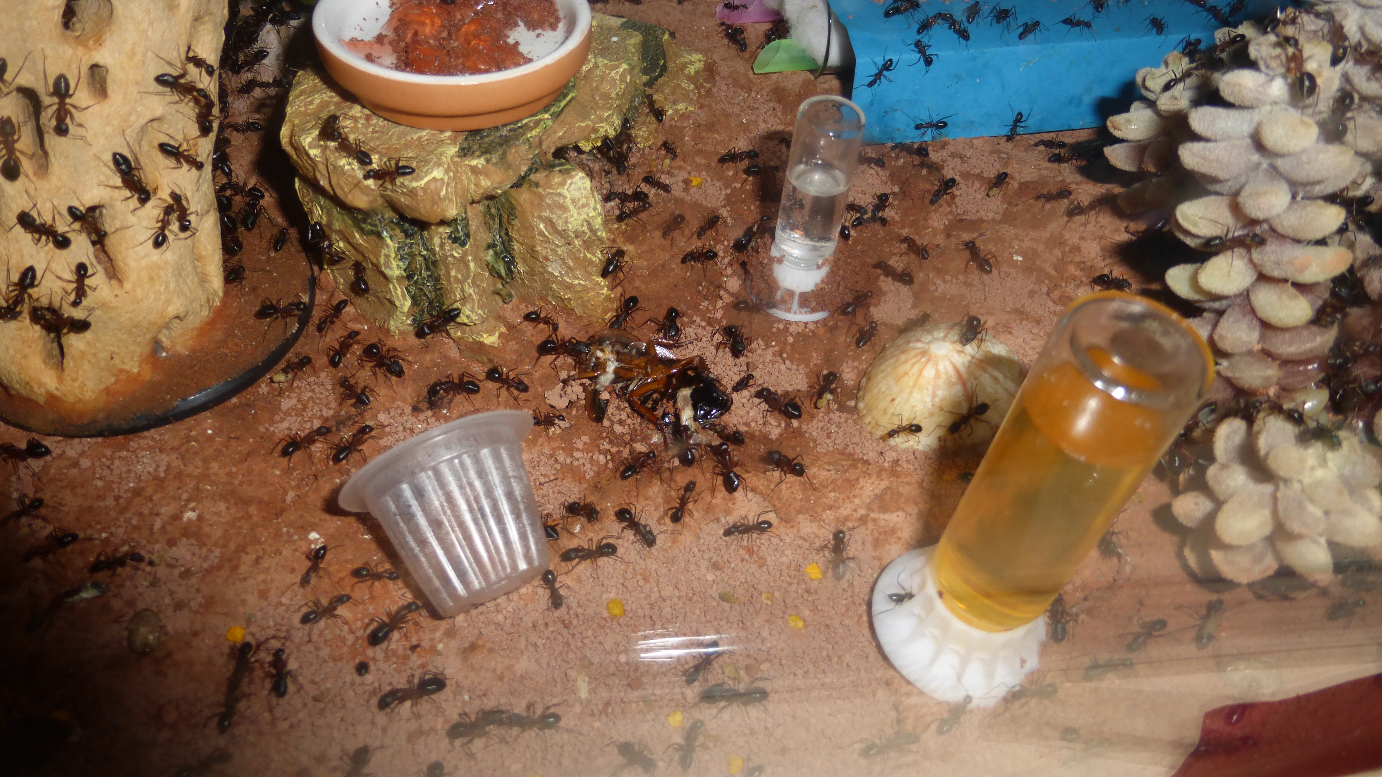 Die Myrmica machen sich weiterhin gut, hier zerlegen sie grad ne kleine Schabe.