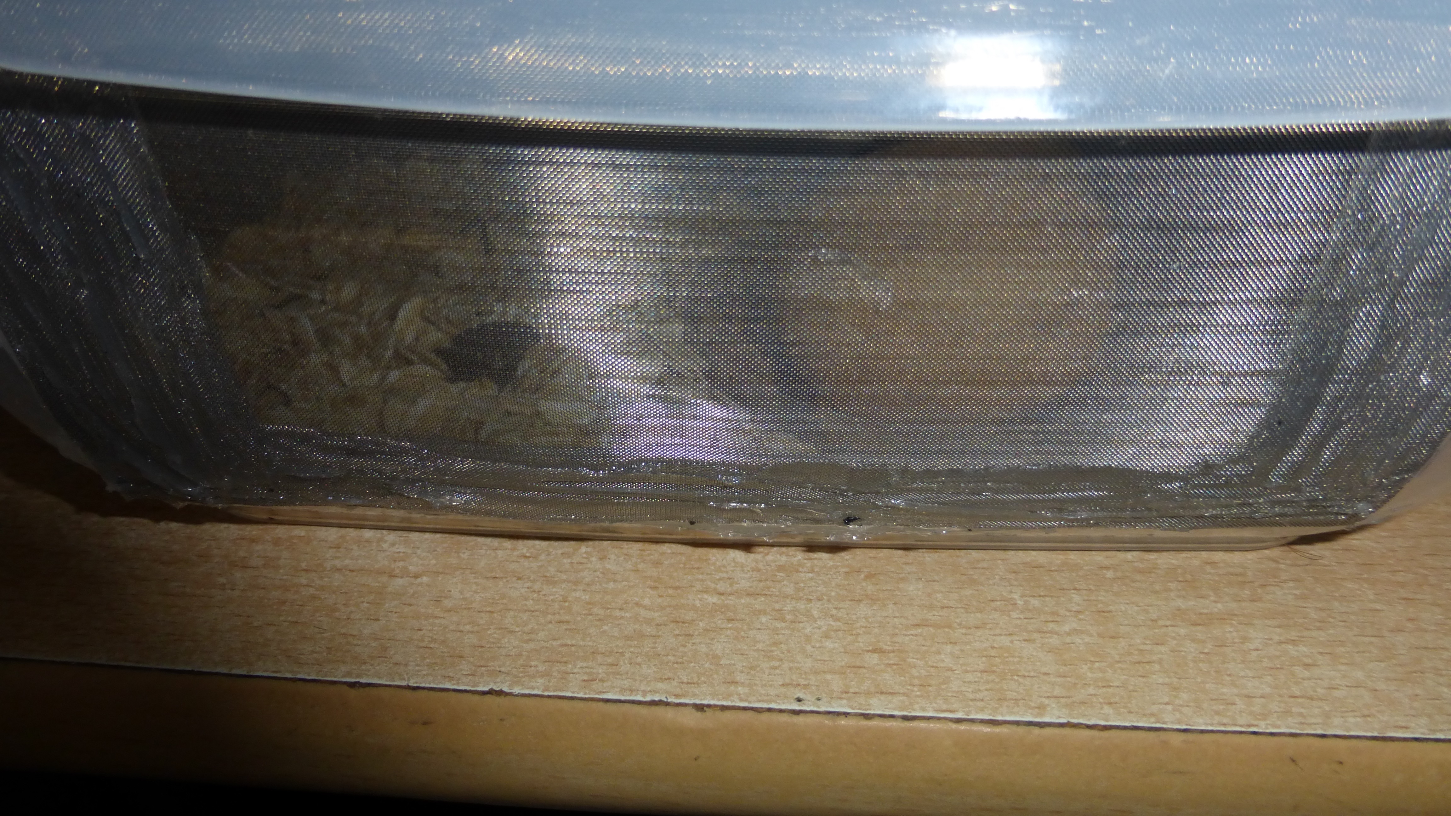 Nestbilder vom 2. April. Ungefähr zu der Zeit hab ich die Wärmekabel wieder eingesteckt und die Nester befeuchtet wie man an einigen Stellen an der Kondensation sehen kann.