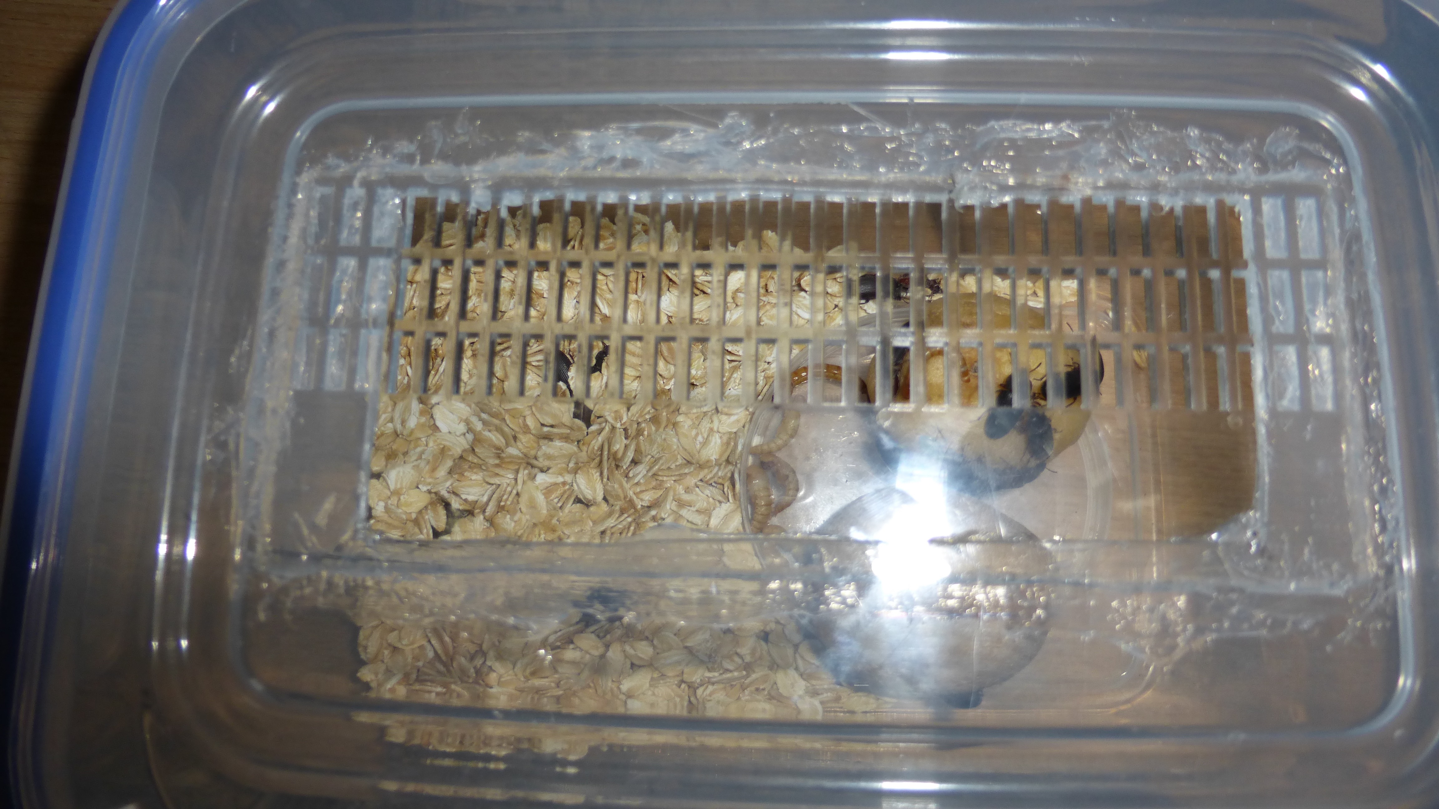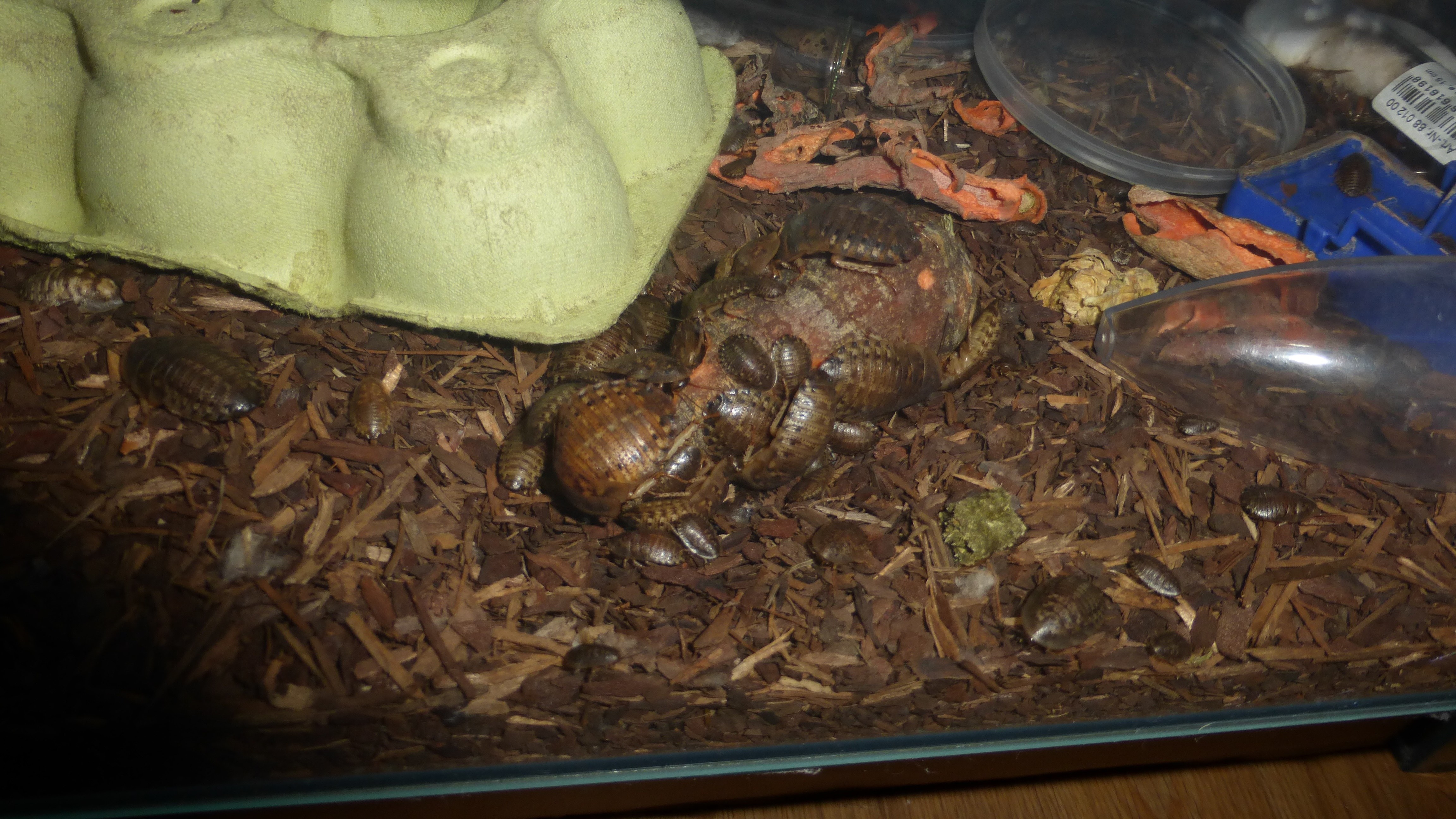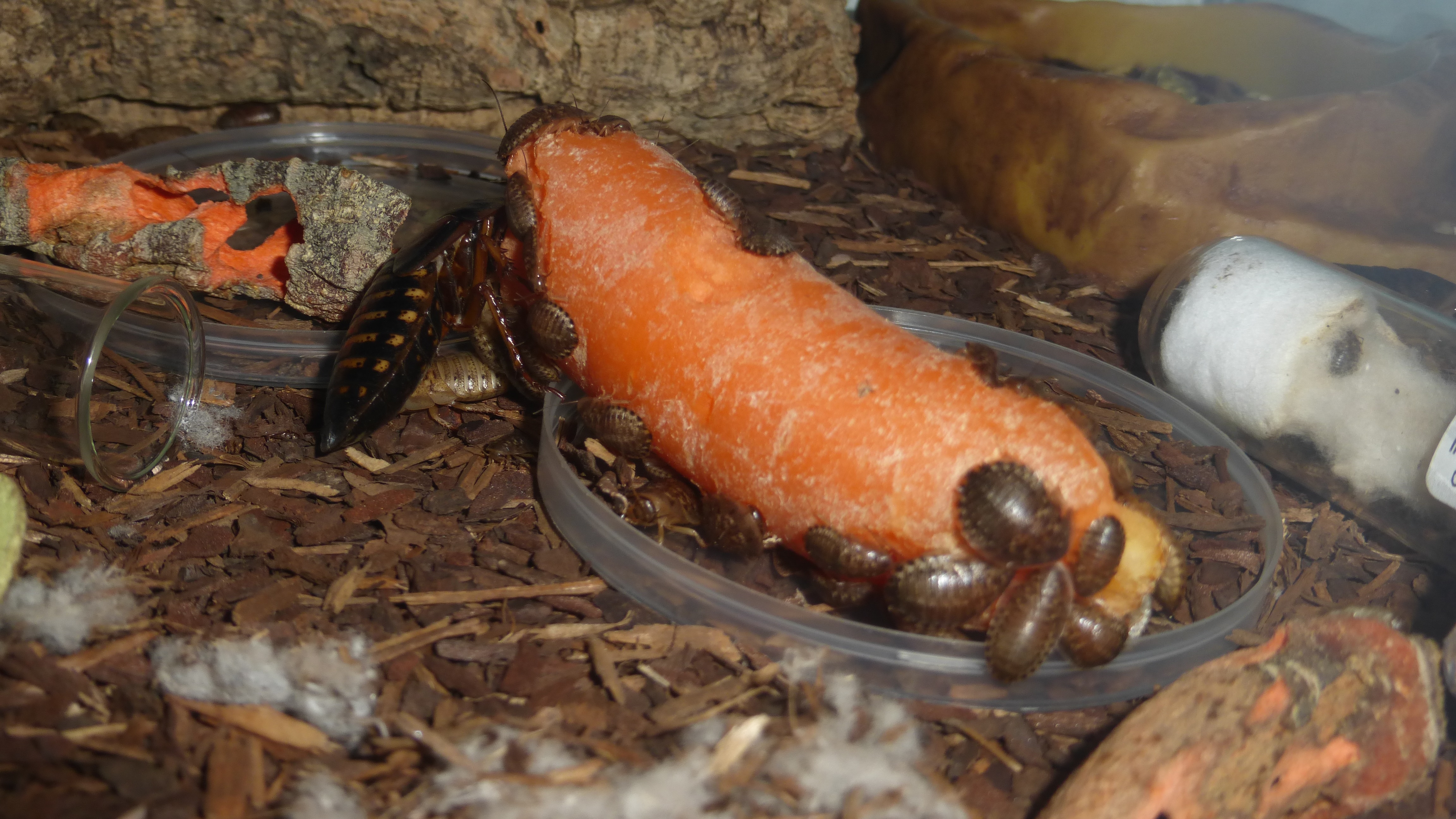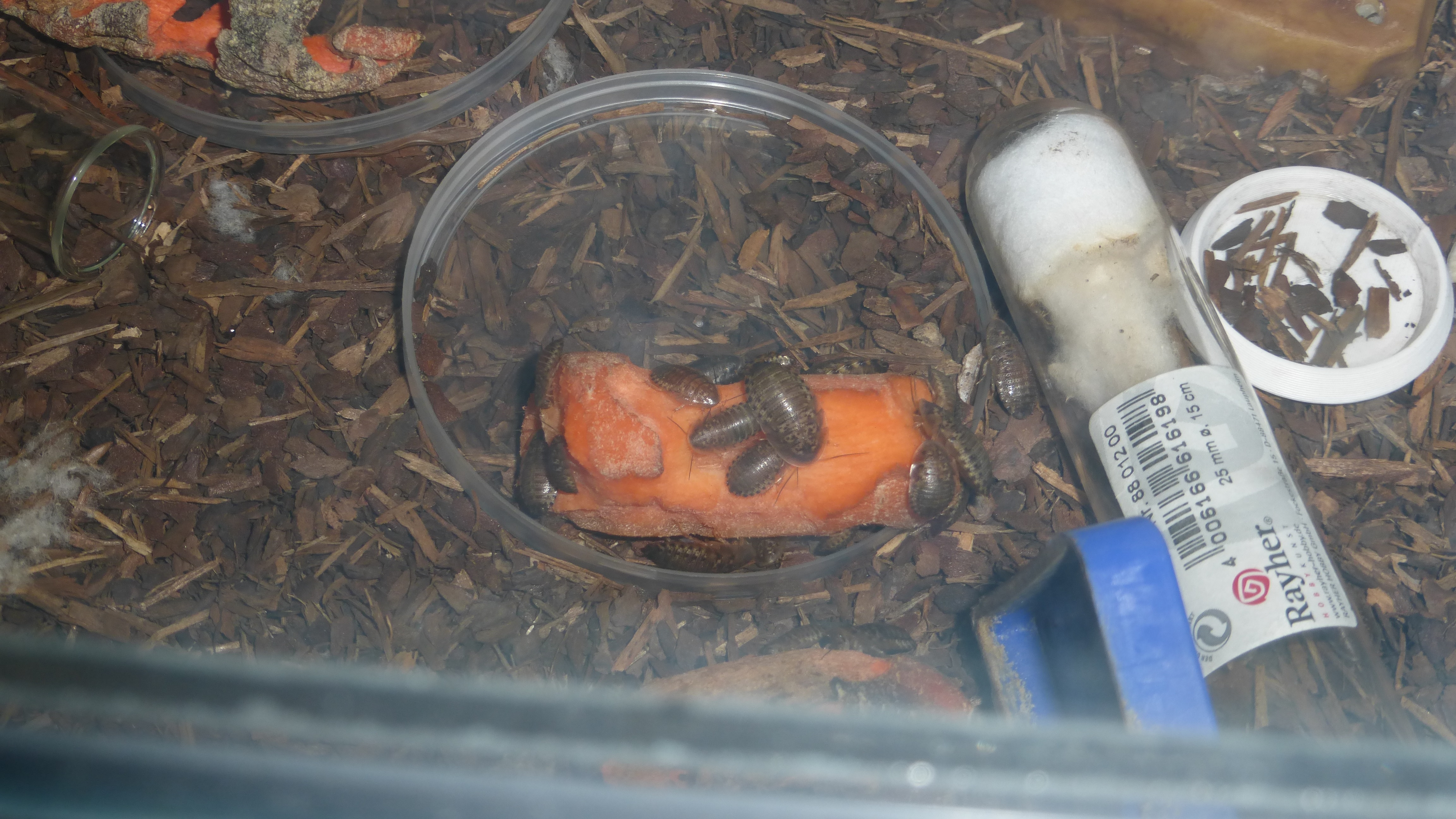 Futter wird auch wieder etwas mehr angenommen, sie ahben ĂĽber die letzten Tage doch ein paar Schaben verspeist.