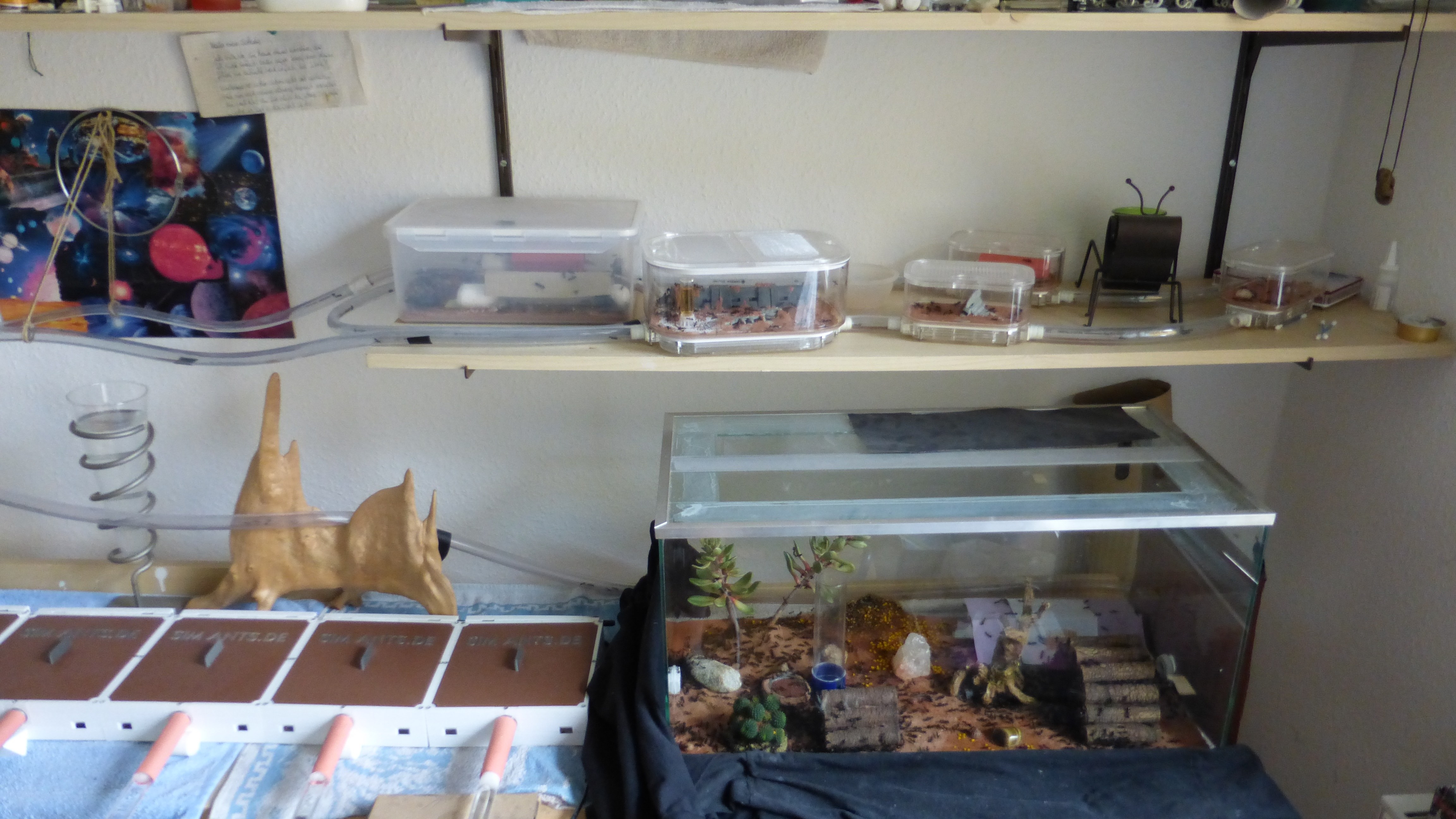Die kleineren Becken am Ende der Anlage bekommen jetzt gelegentlich auch etwas Futter, damit sich die Ameisen dort nicht komplett langweilen.