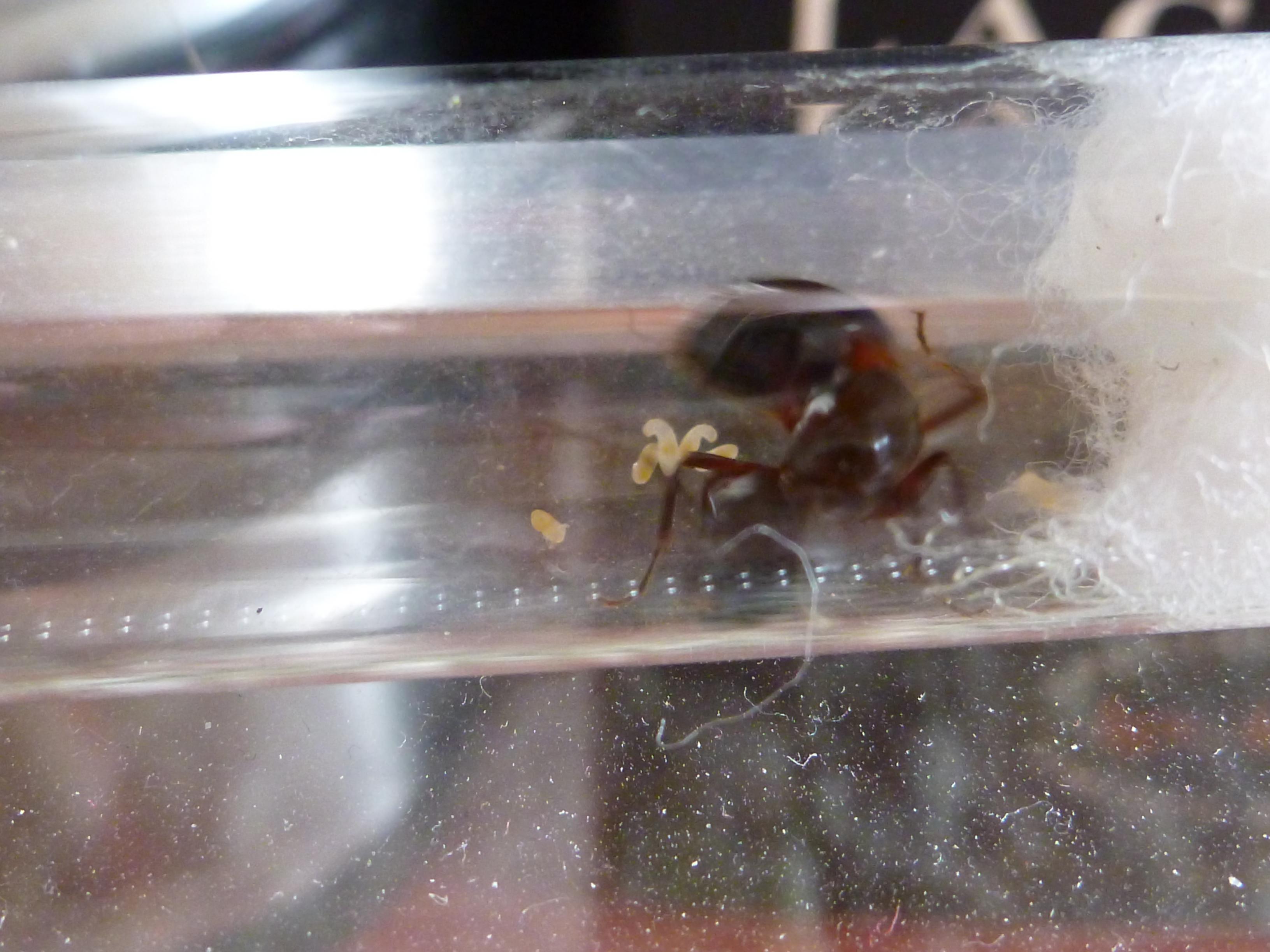Ein schneller Blick durchs RG lies mich aufatmen: DieGyne ist in das RG im Formicarium gezogen.