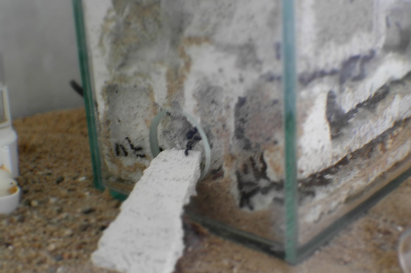 Wollte die Damen eigentlich in ein Flachhaus umziehen lassen, da beim alten Nest das Befüllen mühsam ist. Aber trotz monatelanger Trockenheit des alten Nestes ziehen nicht alle um.