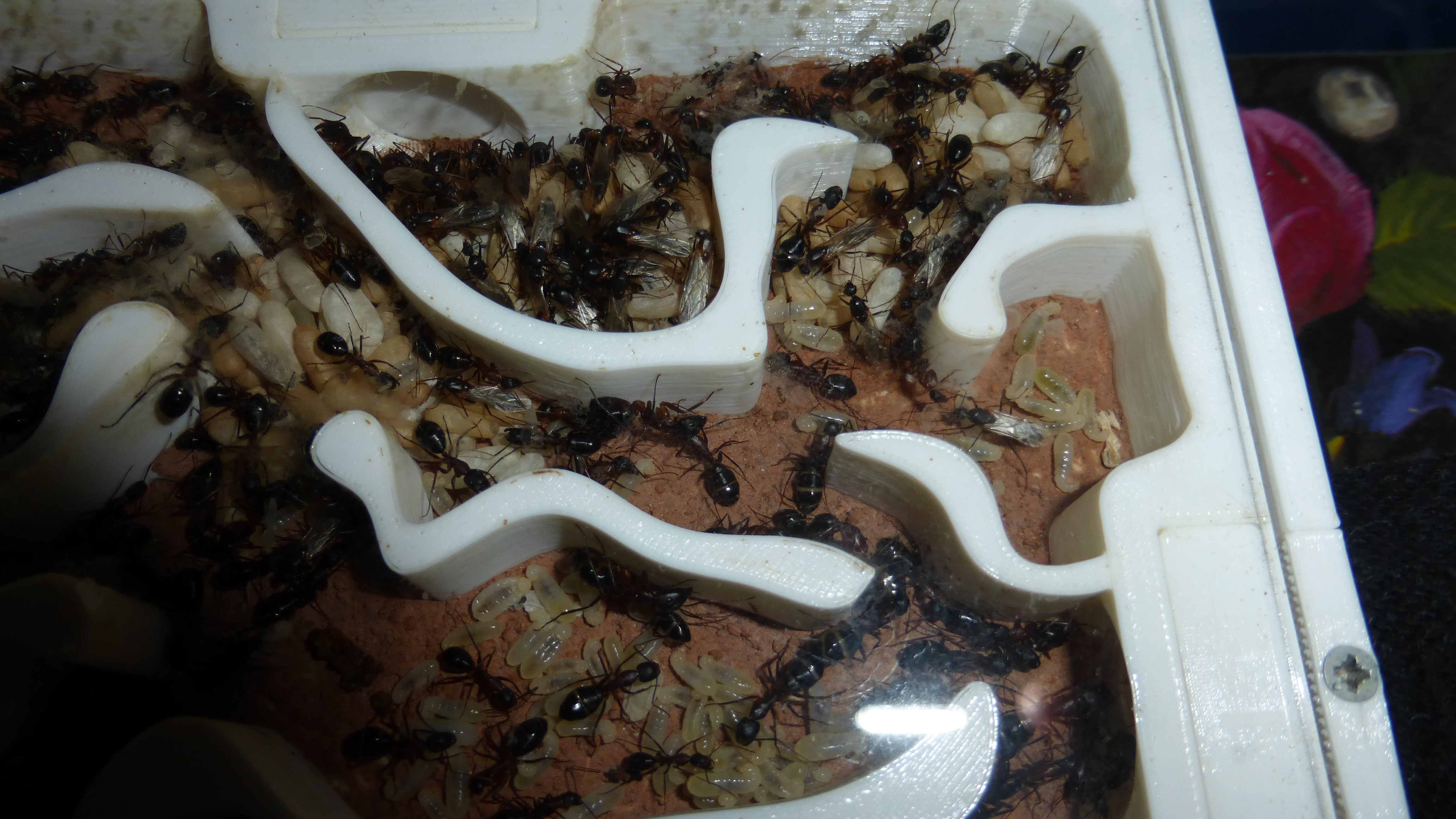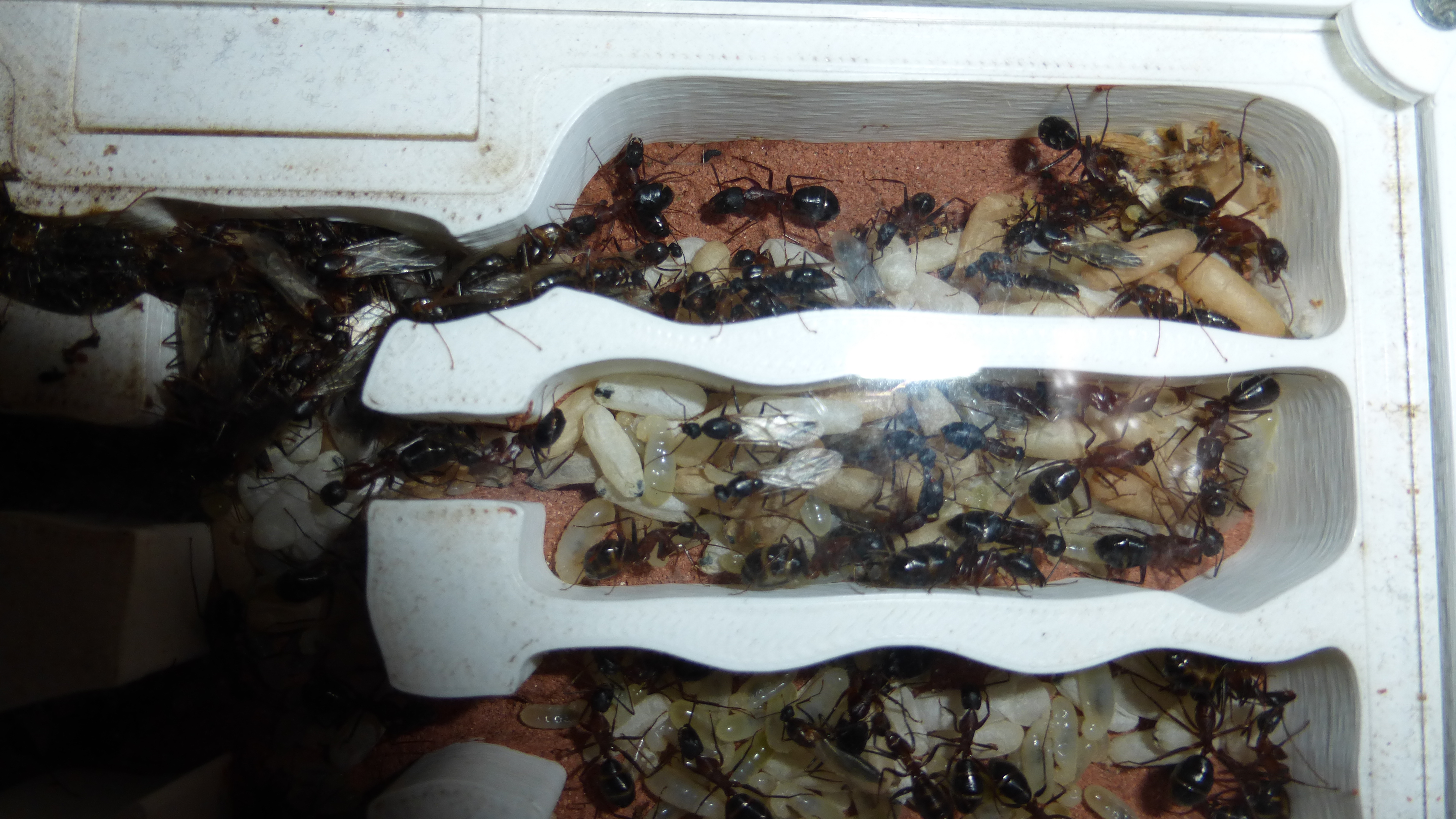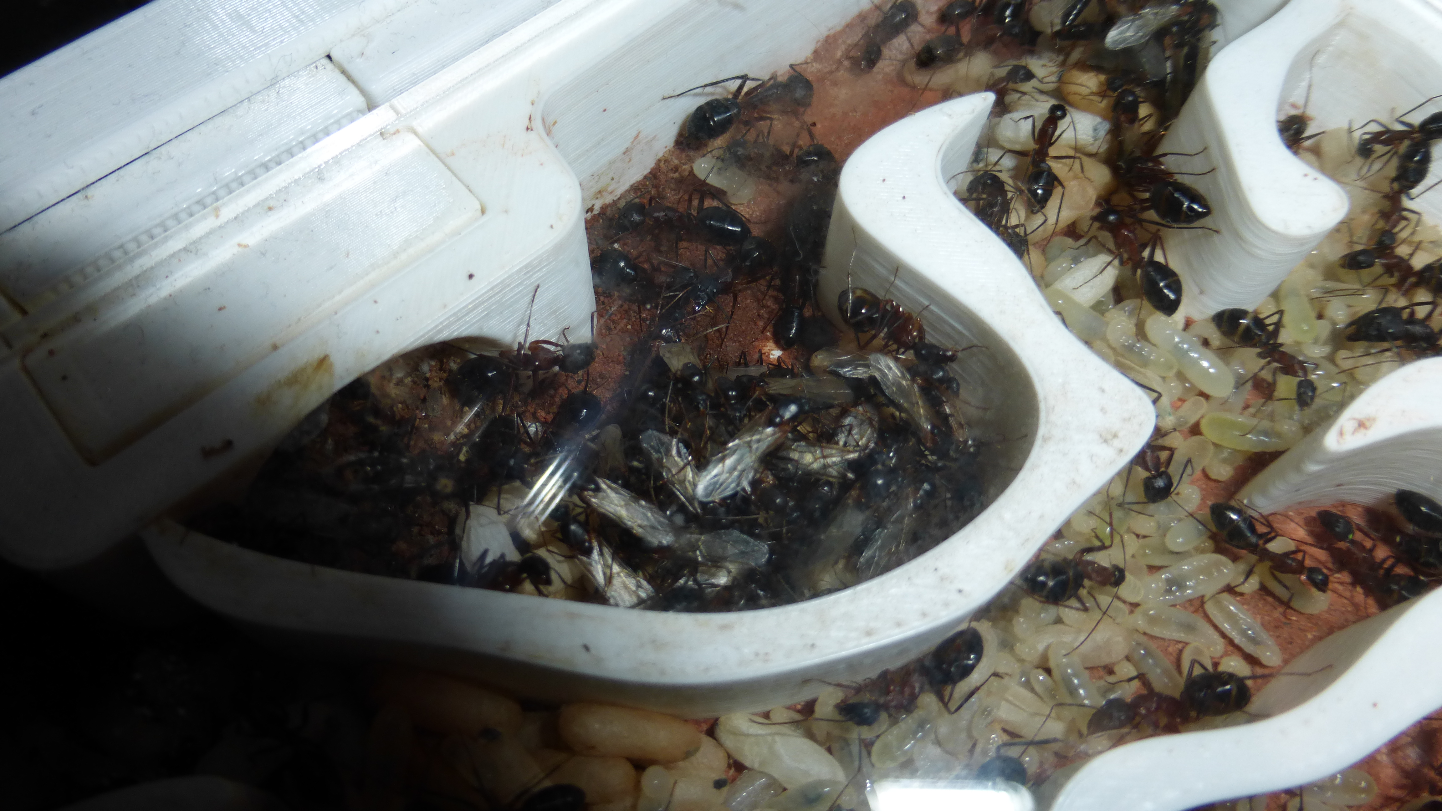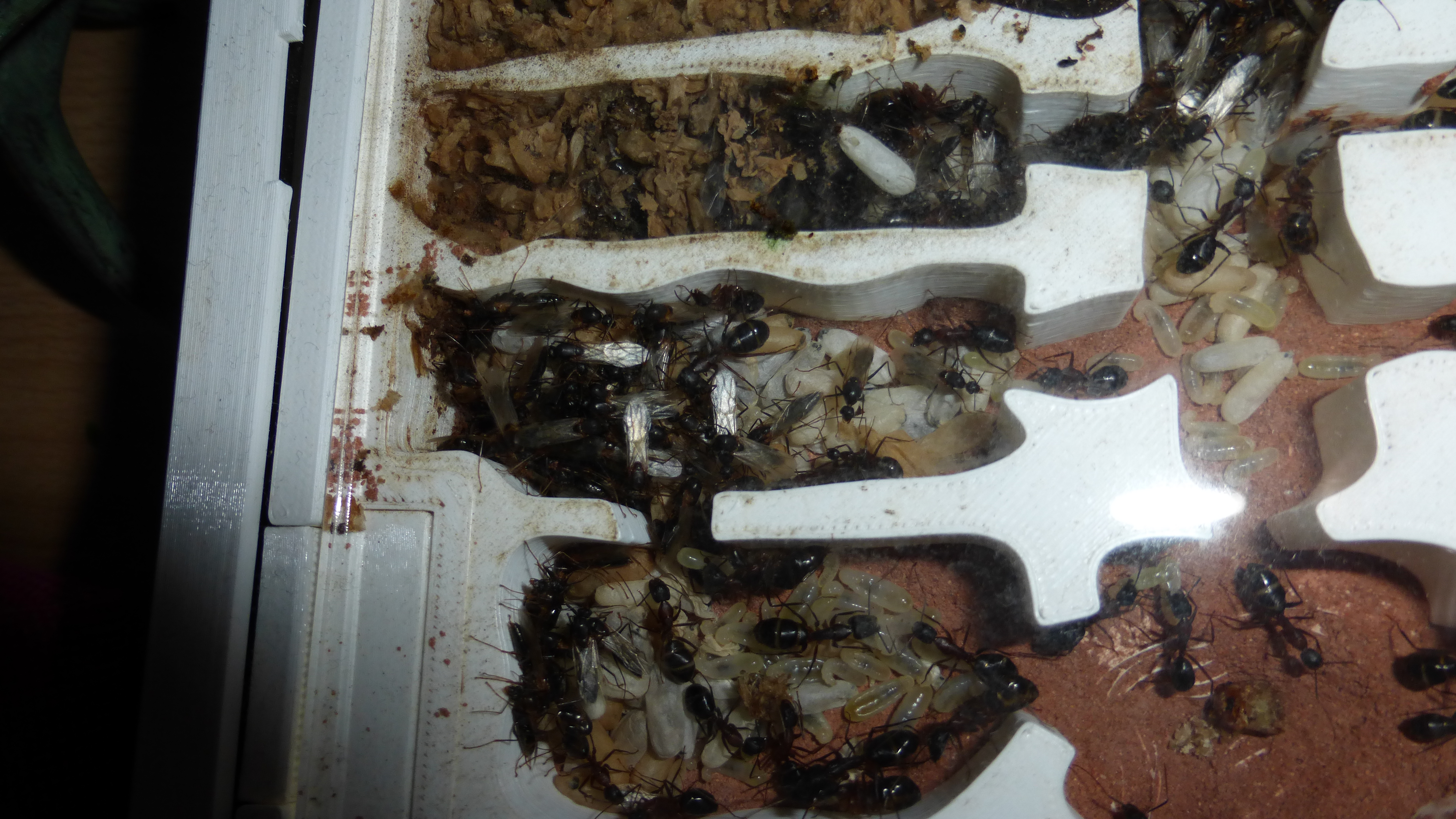 Larven sind zwar noch im Wintermodus, aber die Arbeiterinnen verwerten eine Maus jetzt innerhalb von 2-3 Tagen.