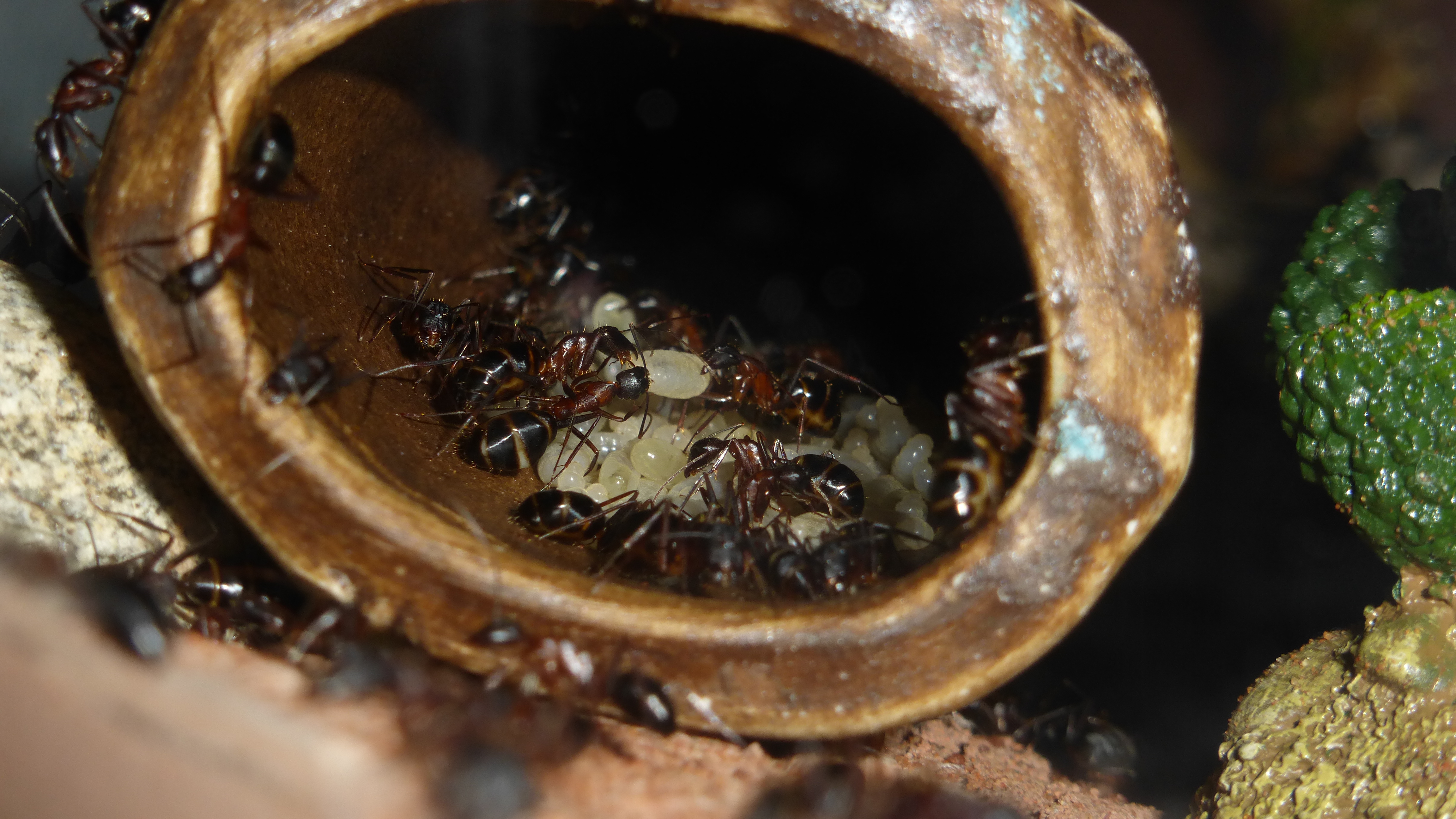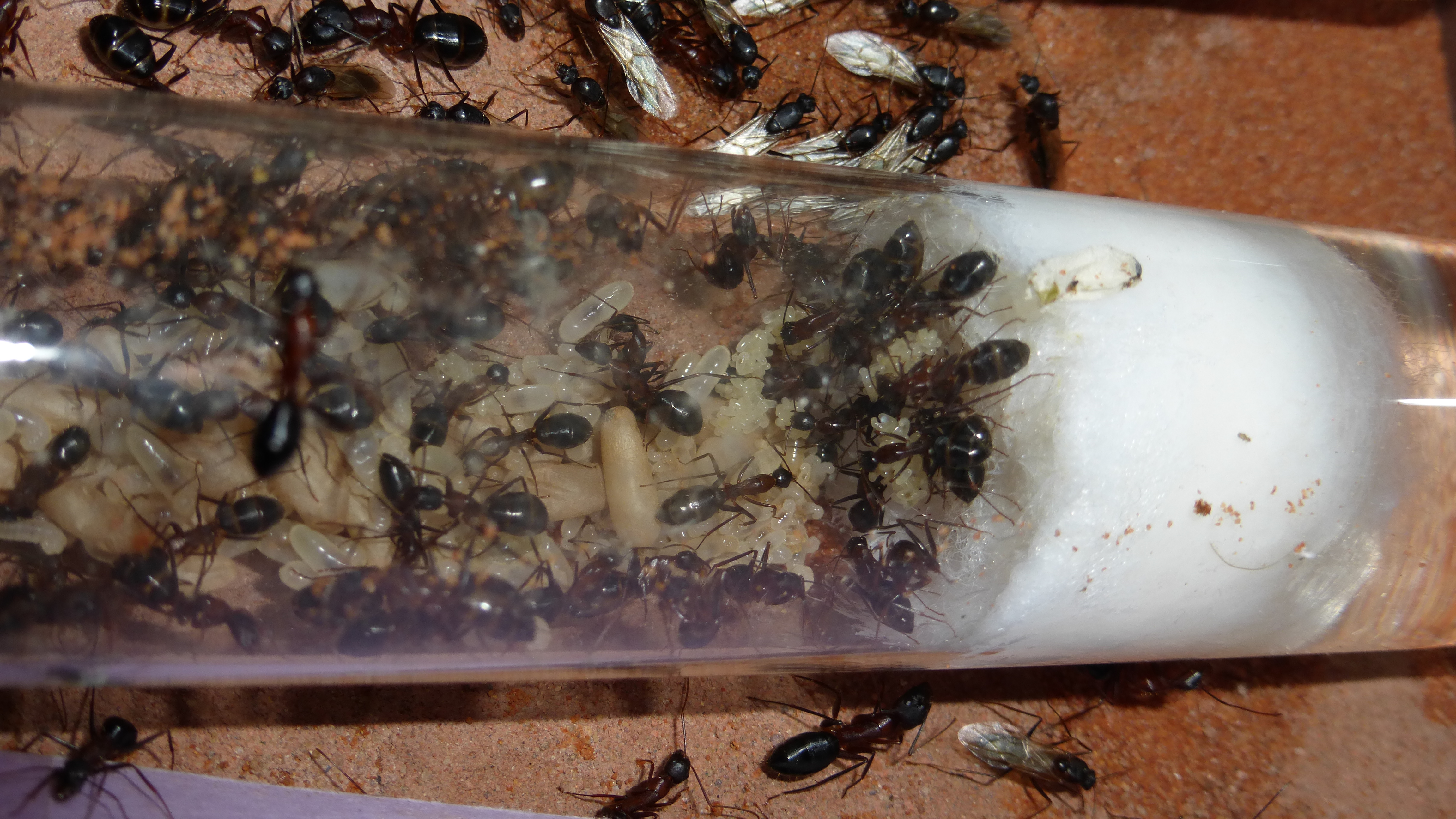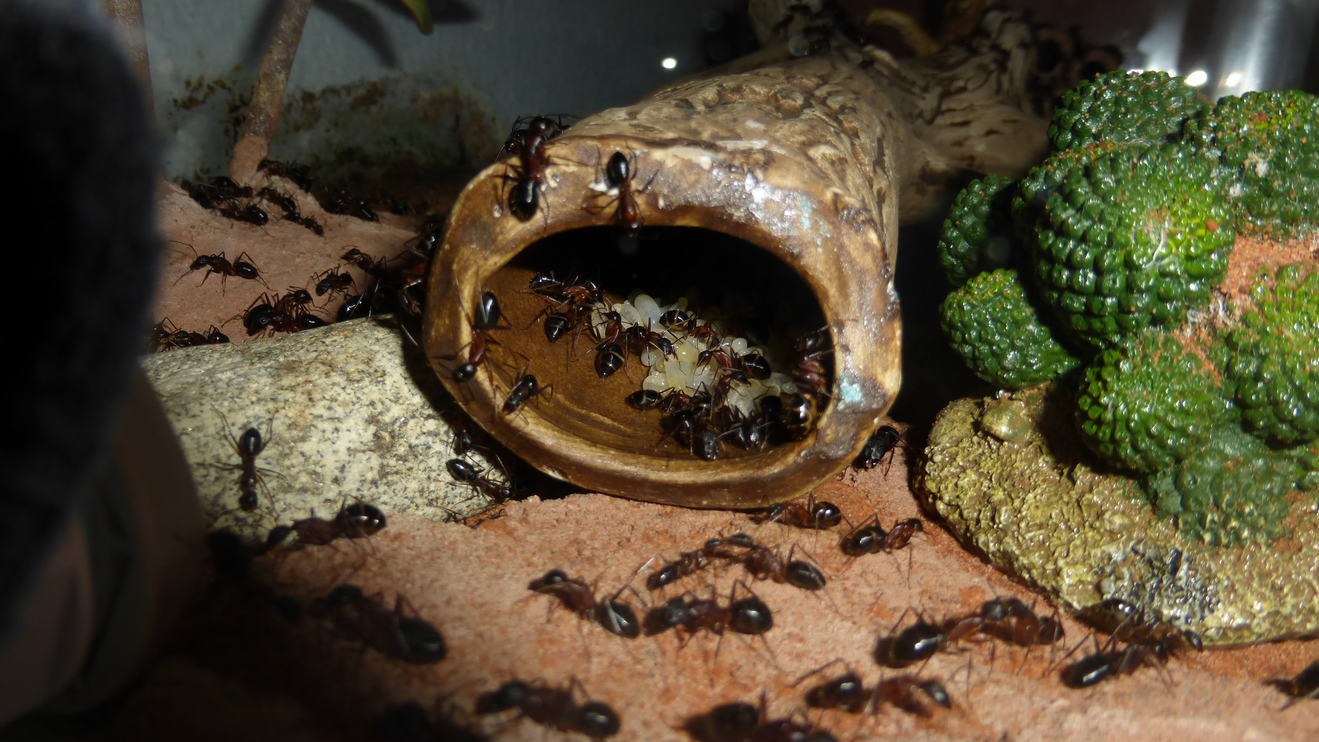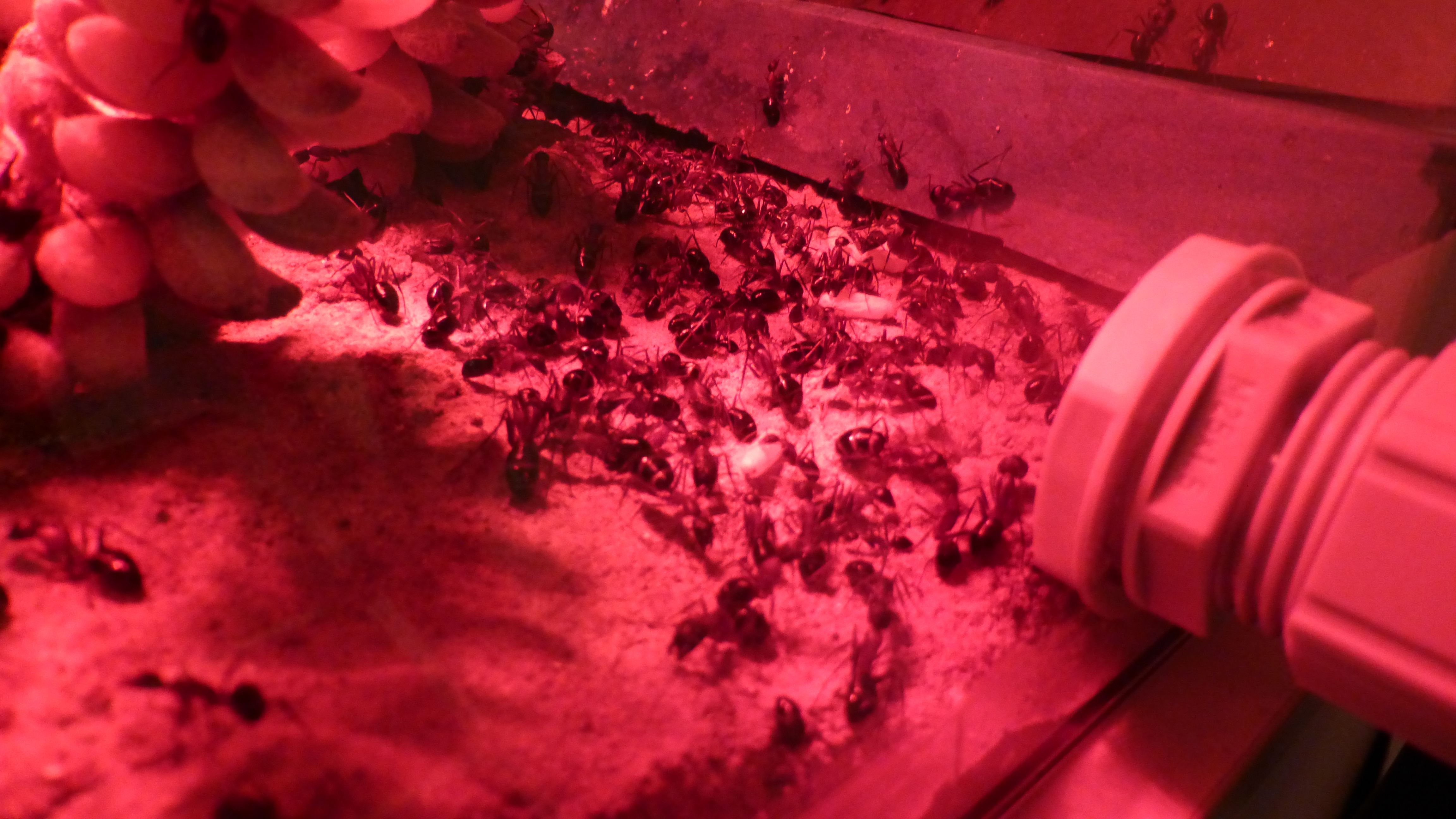 Larven sind zwar noch im Wintermodus, aber die Arbeiterinnen verwerten eine Maus jetzt innerhalb von 2-3 Tagen.