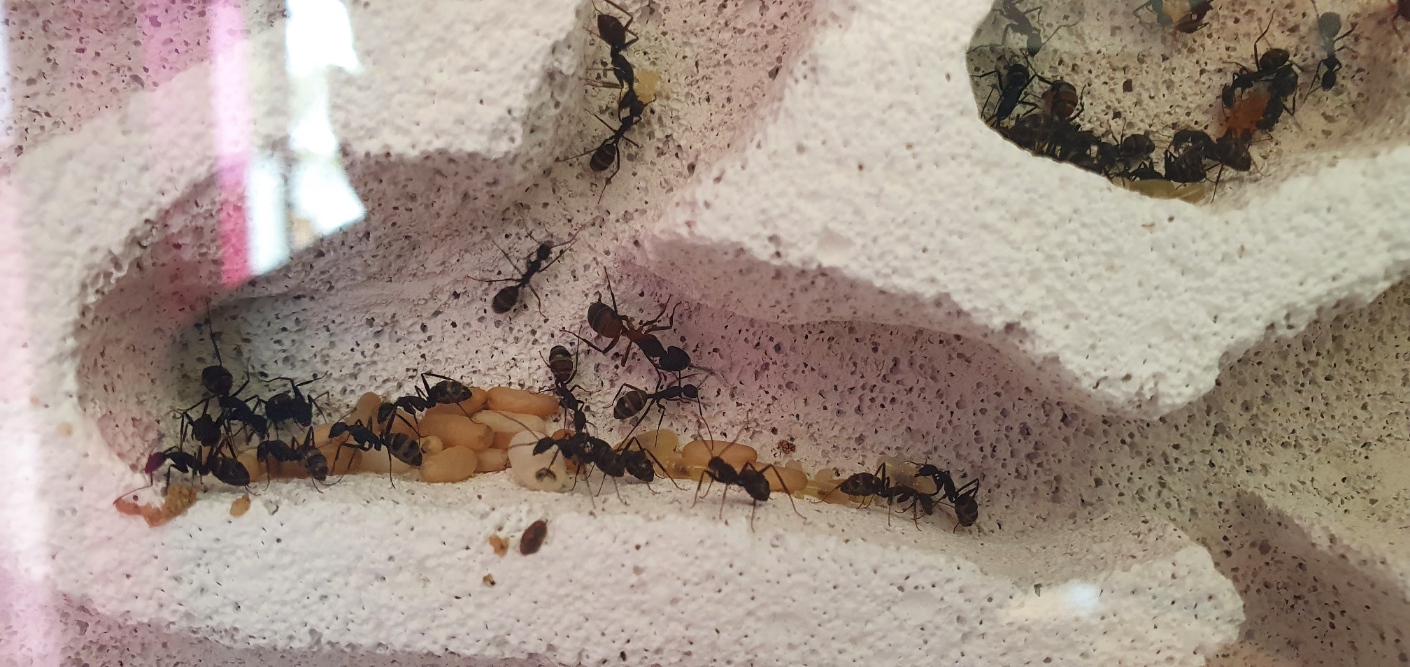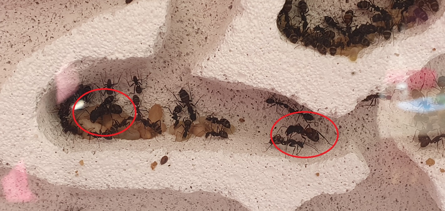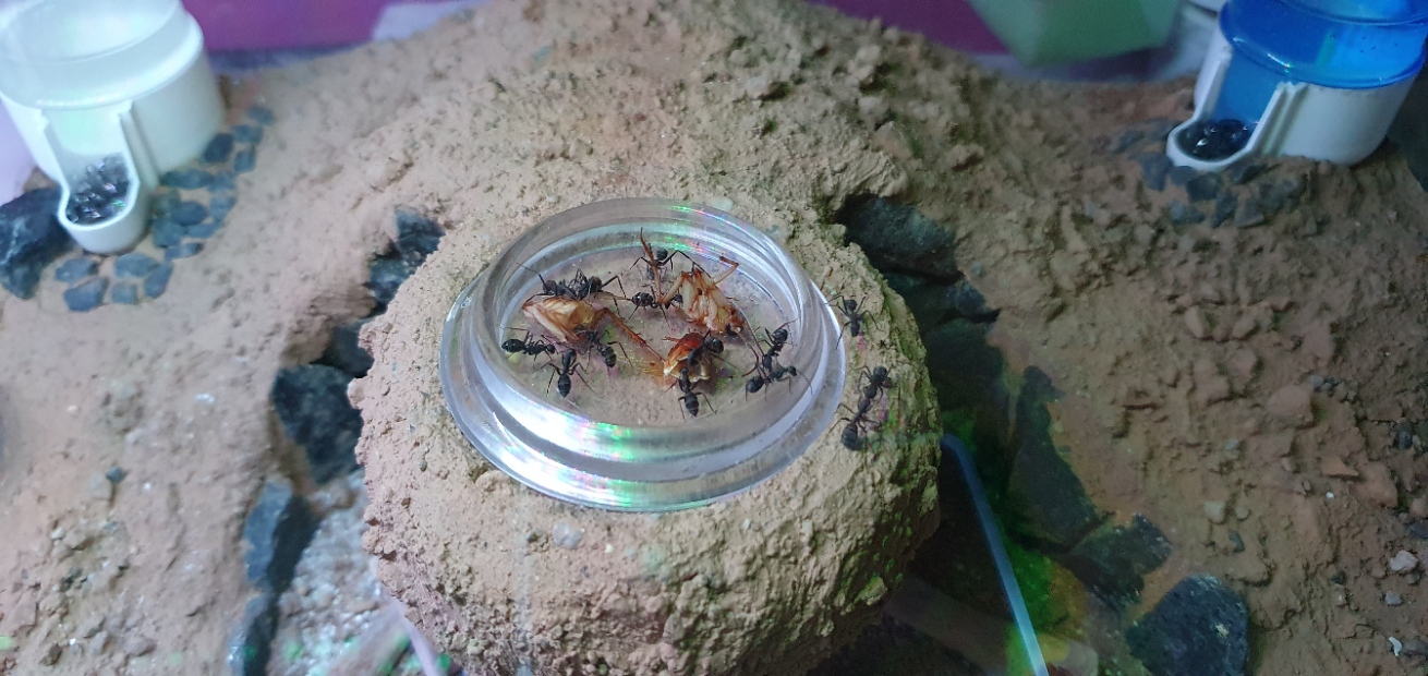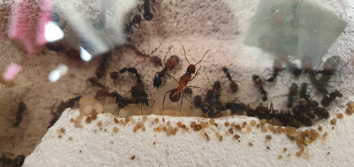 Im August/September sind mir letztlich ca. 15-20 Arbeiterinnen an vergorenem Zuckerwasser verstorben. Hatte damit seit Haltungsbeginn nie Probleme aber da war es wirklich so, dass mir das frisch zubereitete Zuckerwasser innerhalb weniger Tage in der Arena vergoren ist. Ob das an der Rezeptur lag oder an etwas anderem weiĂ ich nicht. Hab letztlich einfach auf Honig umgestellt und dosierte diesen relativ gering. Dadurch hat sich die Lage wieder normalisiert und alles ist wieder gut