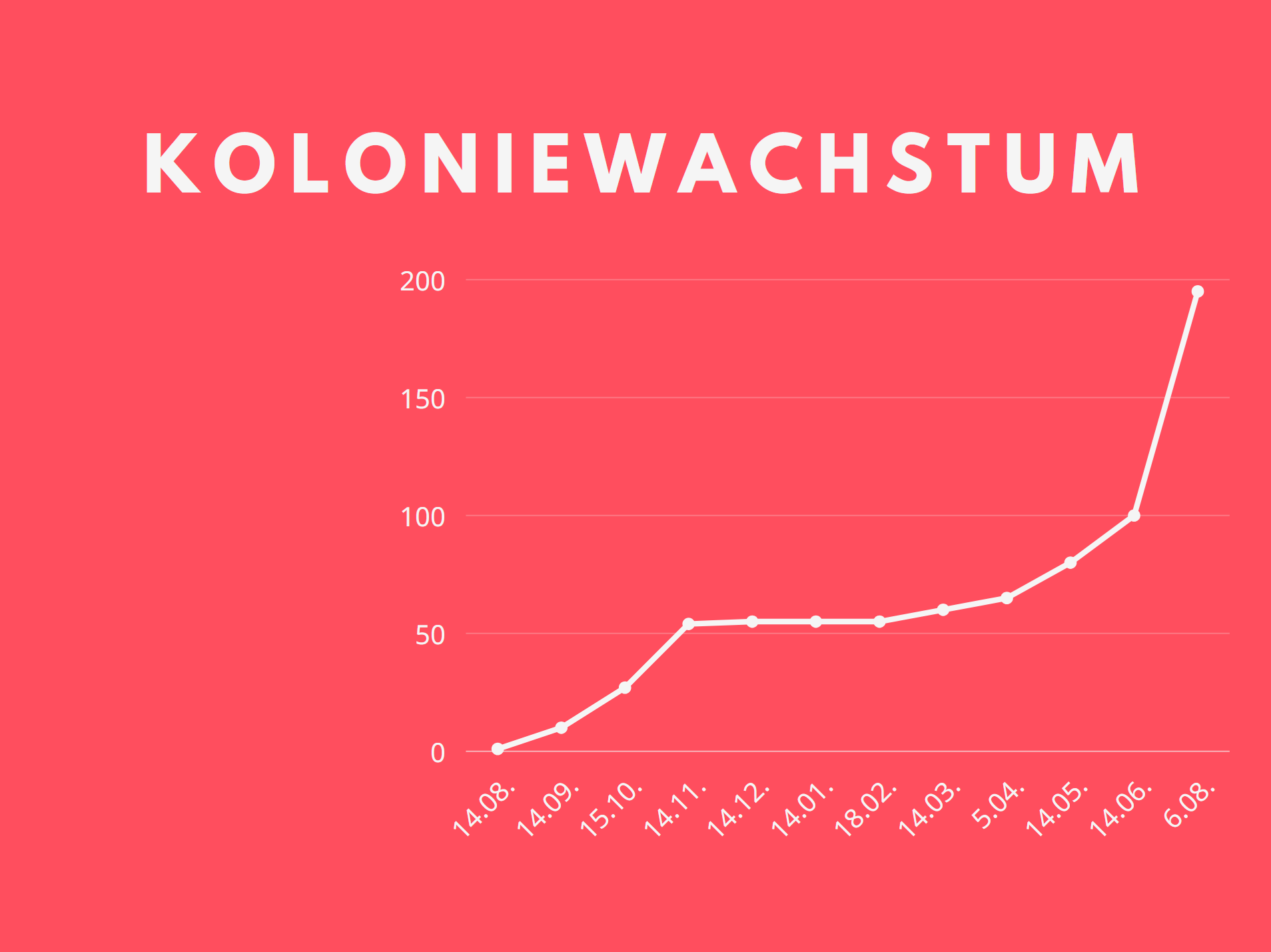 Trotz den Toten haben sie doch auch wieder gut zugelegt. Die aktuelle Bevölkerung dĂŒrfte sich im Bereich um die 300 Arbeiterinnen bewegen.