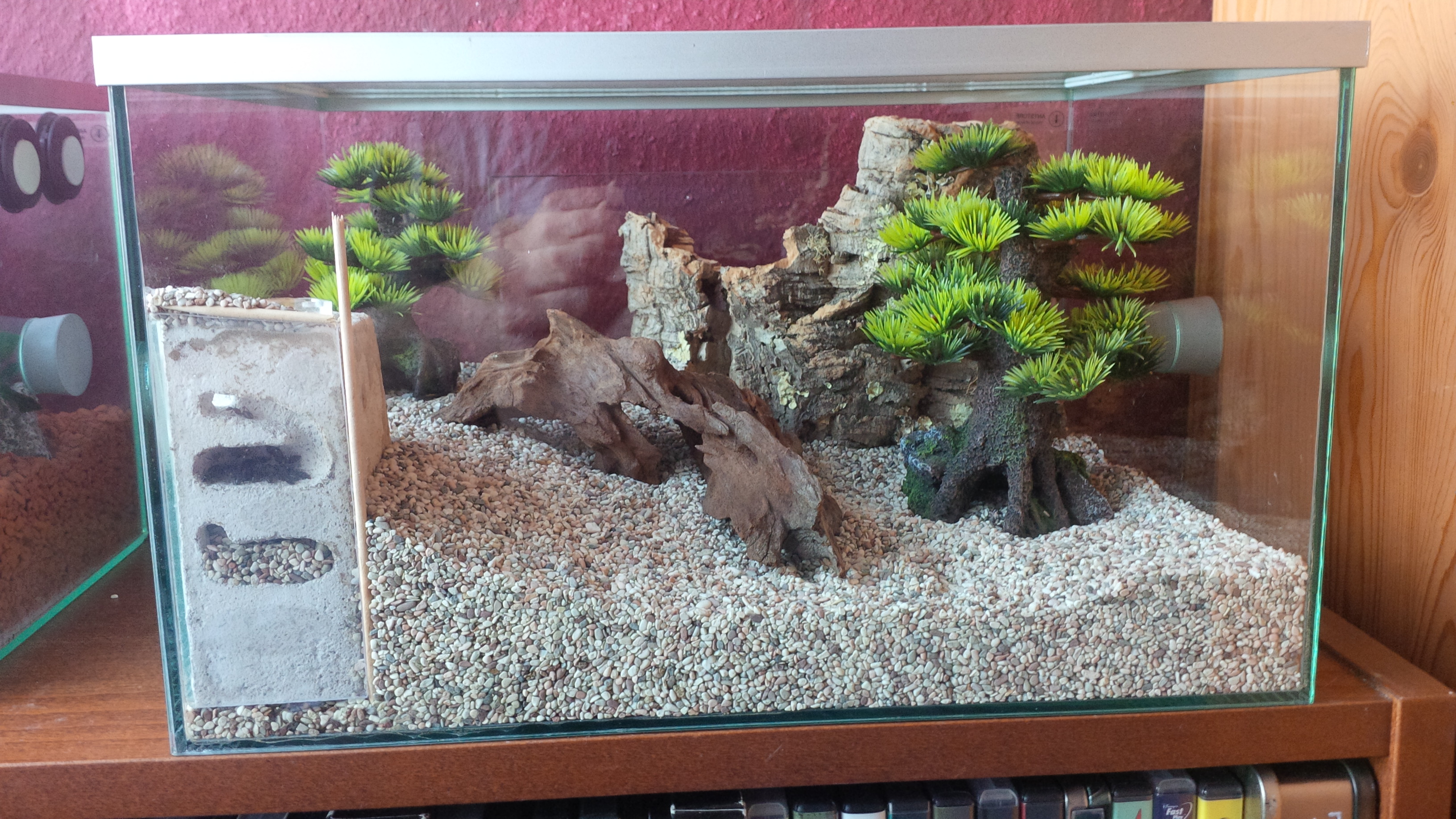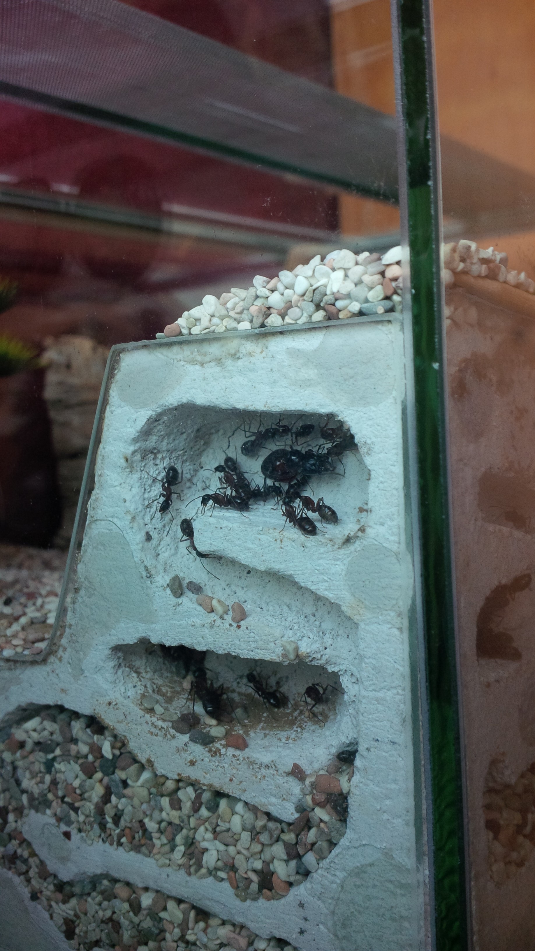 In mein Pflanzenformikarium, welches noch nicht mit dem Nestformikarium verbunden ist (wegen fehlender Verbinder) sind heute frĂŒh 5 Miniheimchen eingezogen, die sich gleich in den Pflanzen versteckt haben. Ich hoffe nur, dass ich auch dieses Mal GlĂŒck habe wegen Milben und diese keine haben, ansonsten ist das Pflanzenbecken ja eh gleich Sperrgebiet. Wenn die Heimchen trozt Futter und Wasser bis nĂ€chste Woche durchhalten (und ich keine Milben finde), haben die Damen haben gleich was zu tun... Heimchen fangen, das mochten sie letztes Jahr ganz gern. Aber das geht ja eh nur, wenn die Beckenverbinder kommen... von daher kann der Pestiziedtest auch lĂ€nger dauern.
