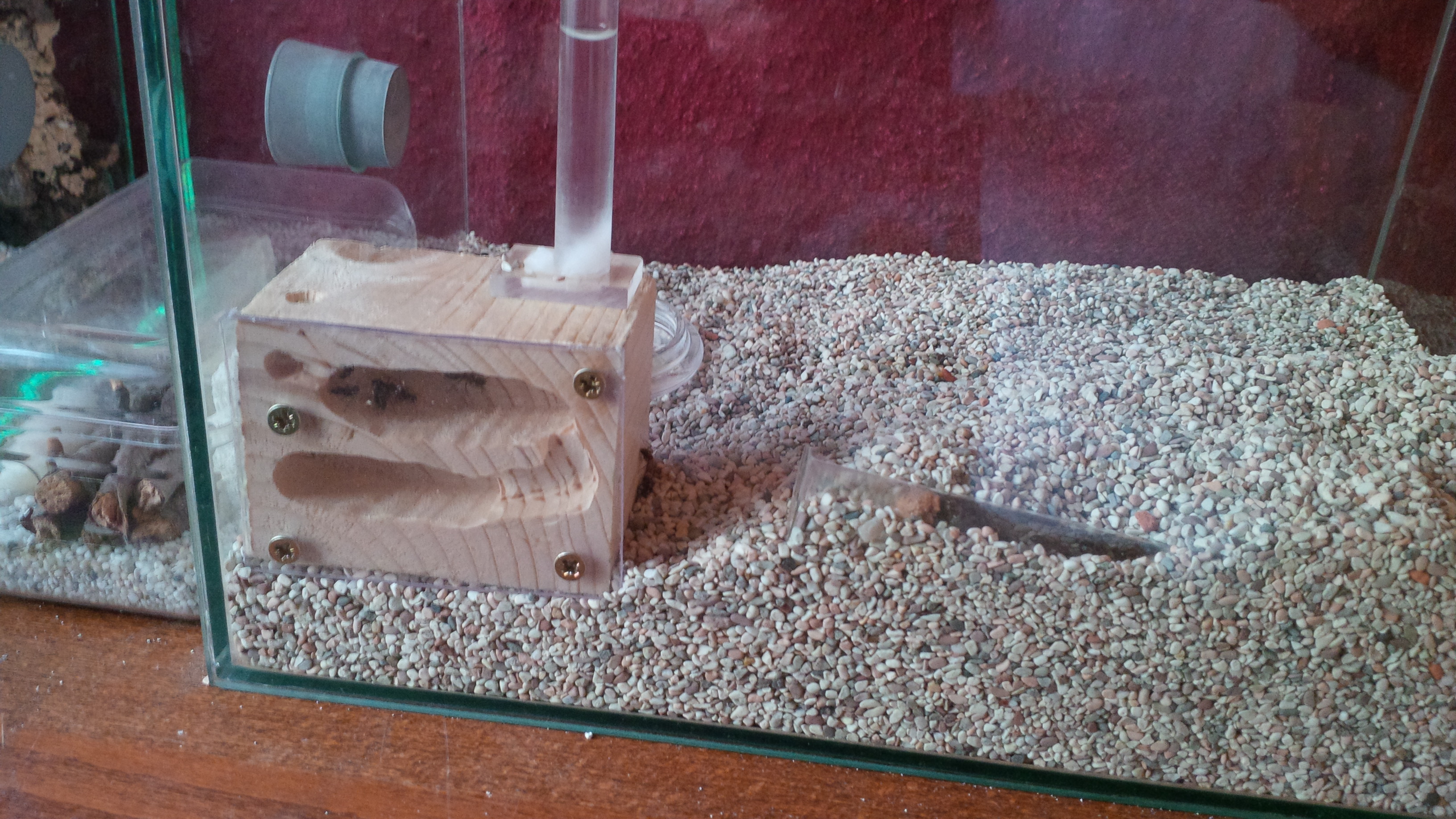 Neu ist auch, das sie es jetzt doch bevorzugen, wenn das Nest etwas feuchter ist. Im letzten Jahr sind sie, sobald der Ytong feucht wurde pansich geworden (und nein, ich habe nicht das halbe Nest unterwasser gesetzt, nur vorsichtig von der Oberfläche her befeuchtet), dieses Jahr schleppen sie die