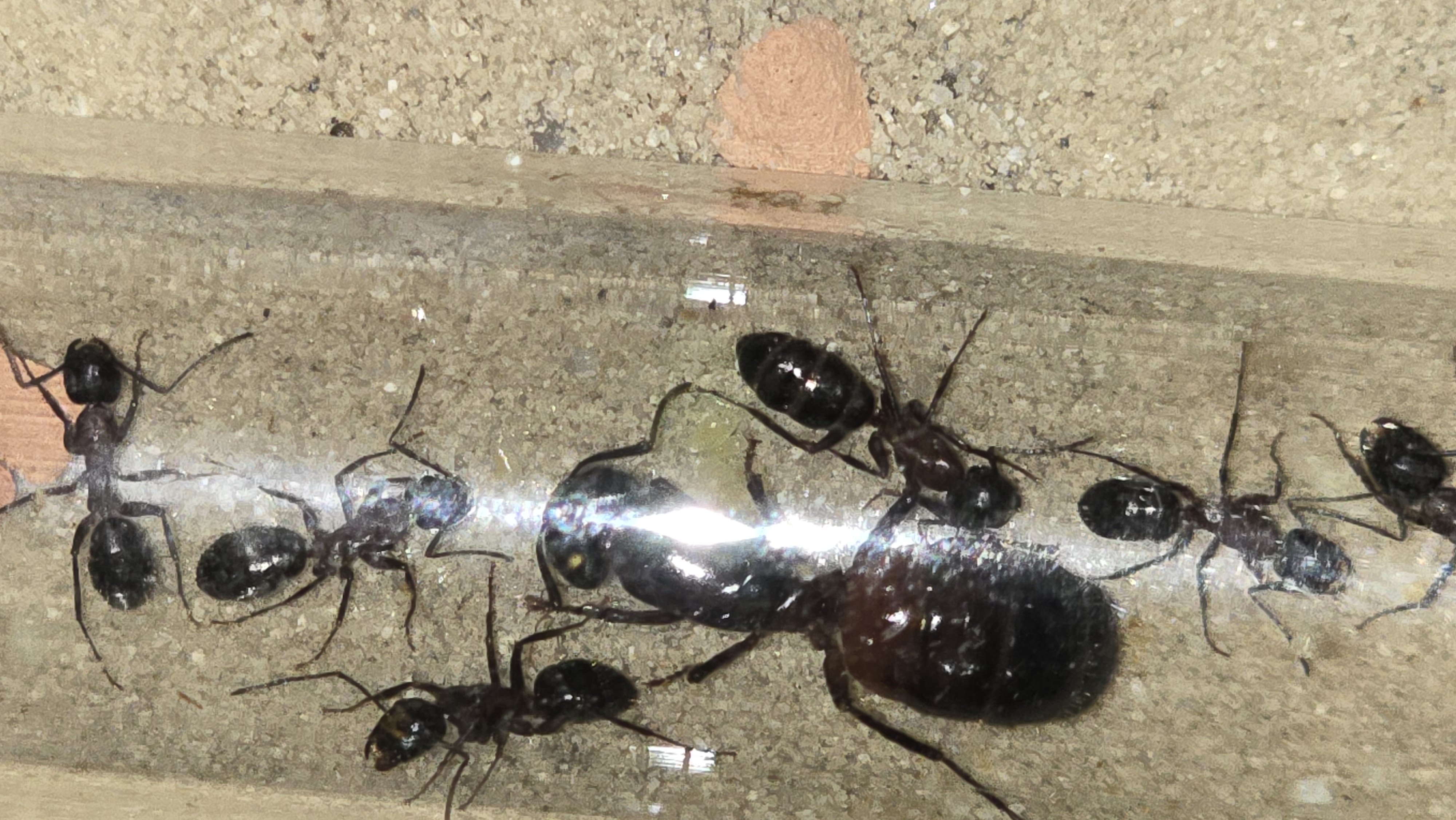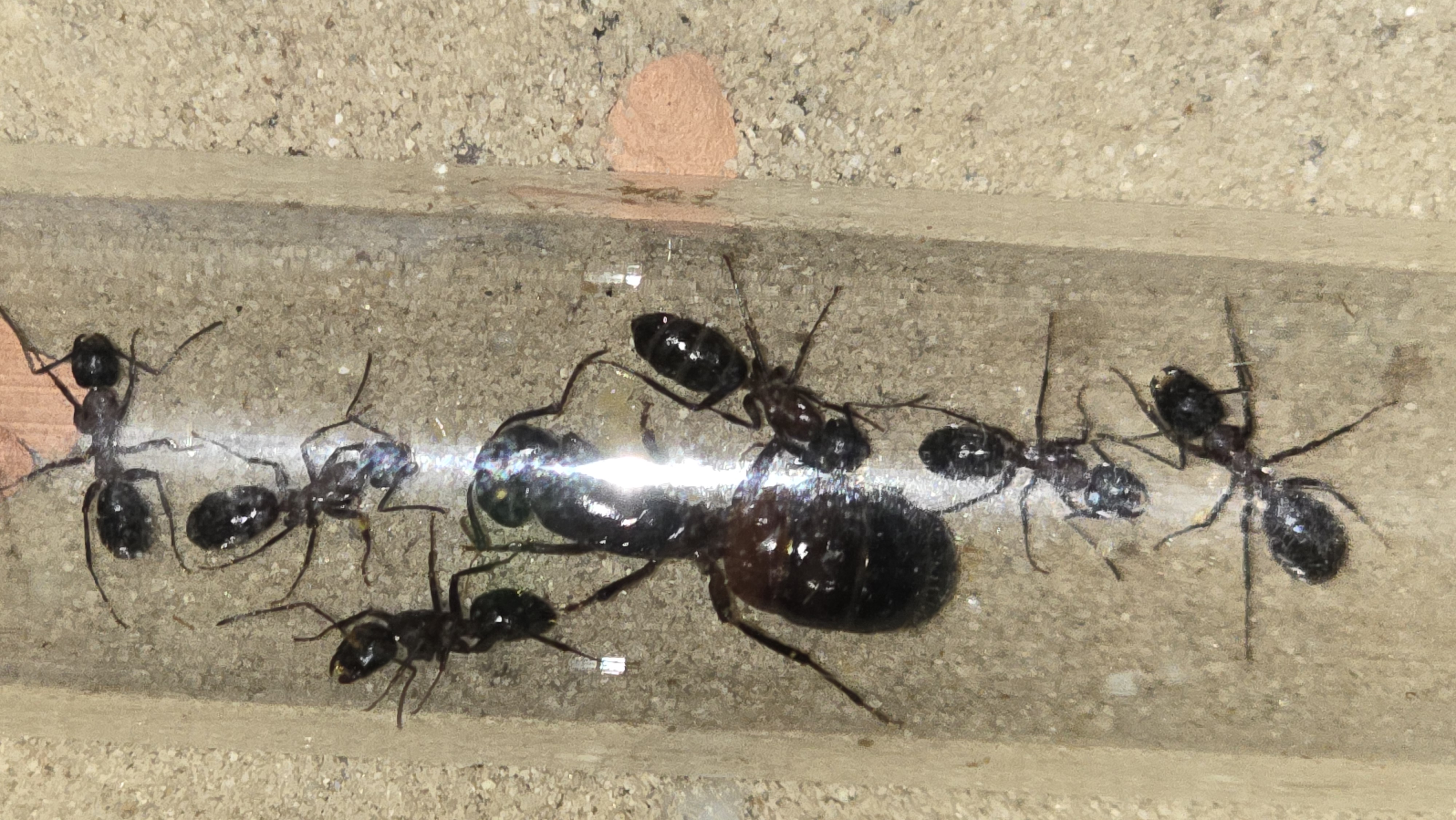 Ein Teil der Arbeiterin hat sich noch ordentlich mit Zuckerwasser vollgesogen, klasse.