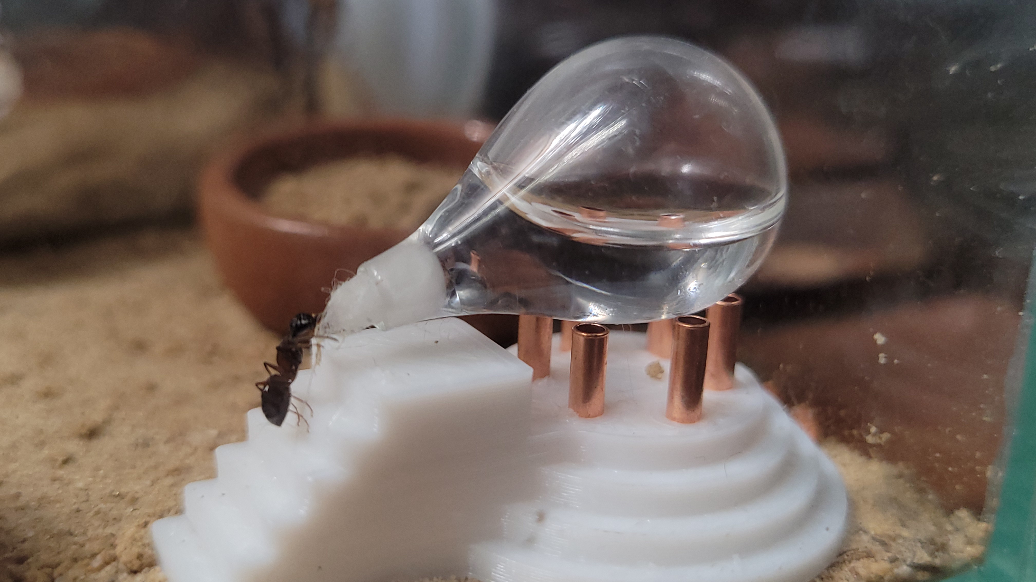 Diese Woche habe ich es auch geschafft, die Camponotus an der kleinen Tränke von Etsy beim trinken zu fotografieren. Obwohl eigentlich klar war, dass diese die einiges reger nutzen als die Diacamma aufgrund des Füllstandes. Mein Bild hat es übrigens auf die Seite des Verkäufers geschafft was mich riesig freut, da ich es echt ein tolles Produkt finde. Wie ein Kommentar auf Etsy treffend geschrieben hat: Dies ist eine Ding welches ich absolut nicht brauche und dennoch überglücklich bin, dass ich es gekauft habe.