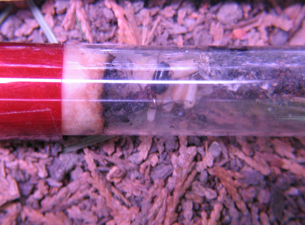 Heute dann endlich die erste neue Arbeiterin! Sie ist etwas größer als die Pygmäe, aber ich bin mir nicht sicher, ob die schon als Minor gilt. Wohl eher nicht.