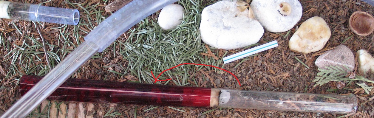 Ich hatte die rote Folie zurückgezogen, damit ich etwas sehen kann sobald ich die Alufolie hoch hebe. Nun wohnen sie hinter dem RG in der Folie. Da können sie nur nicht bleiben: es gibt keinen Wassertank und das Ganze ist nur mit einem kleinen Streifen Klebeband zusammen gehalten, würde sich also früher oder später lösen, wenn kein RG drin steckt.