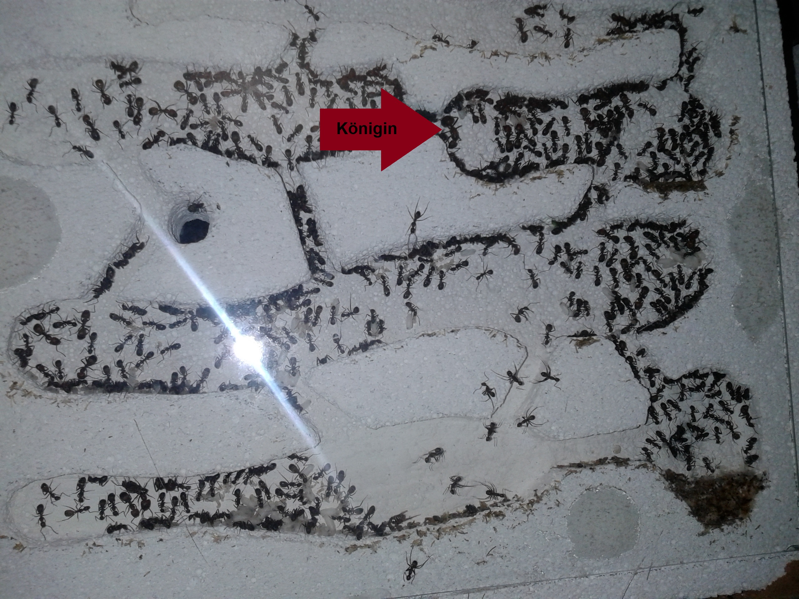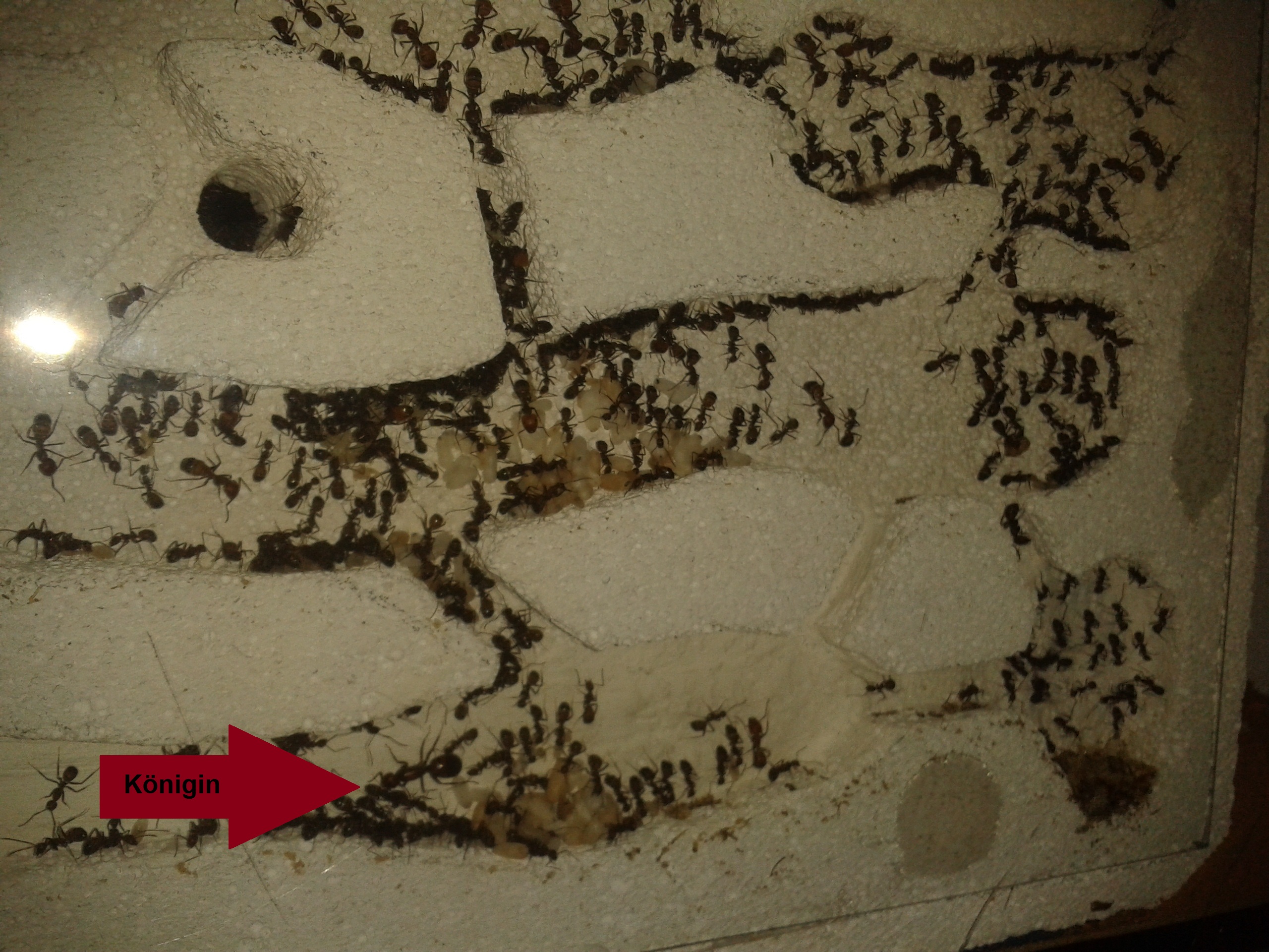 Die Kolonie ist nun also ziemlich genau 4 Monate alt. Abschätzen kann ich das Wachstum der Kolonie aktuell gar nicht. Ich gehe von 200-300 (kann auch deutlich mehr sein, weniger nicht) Ameisen aus und