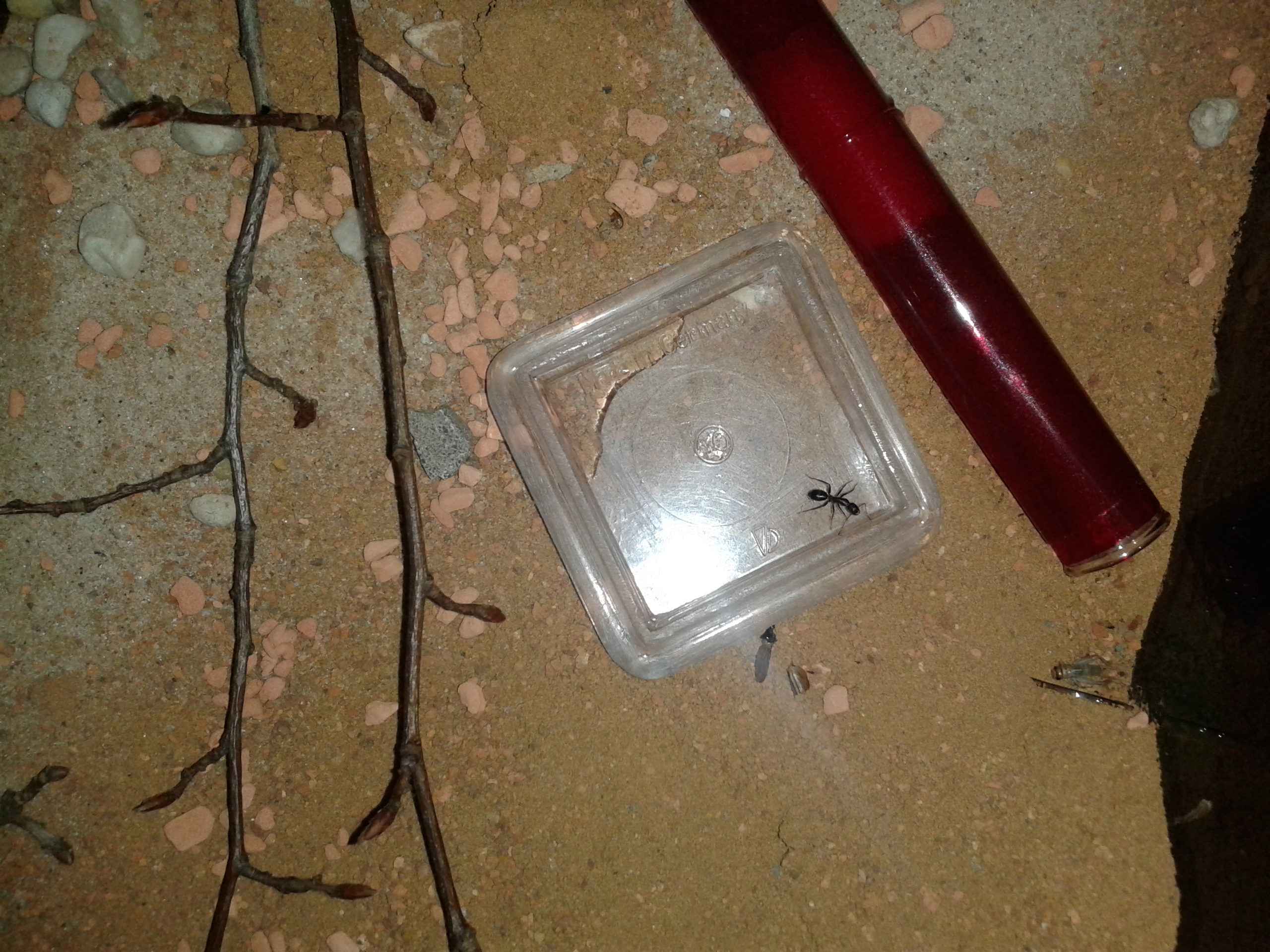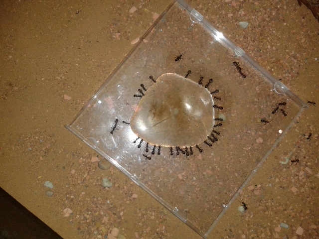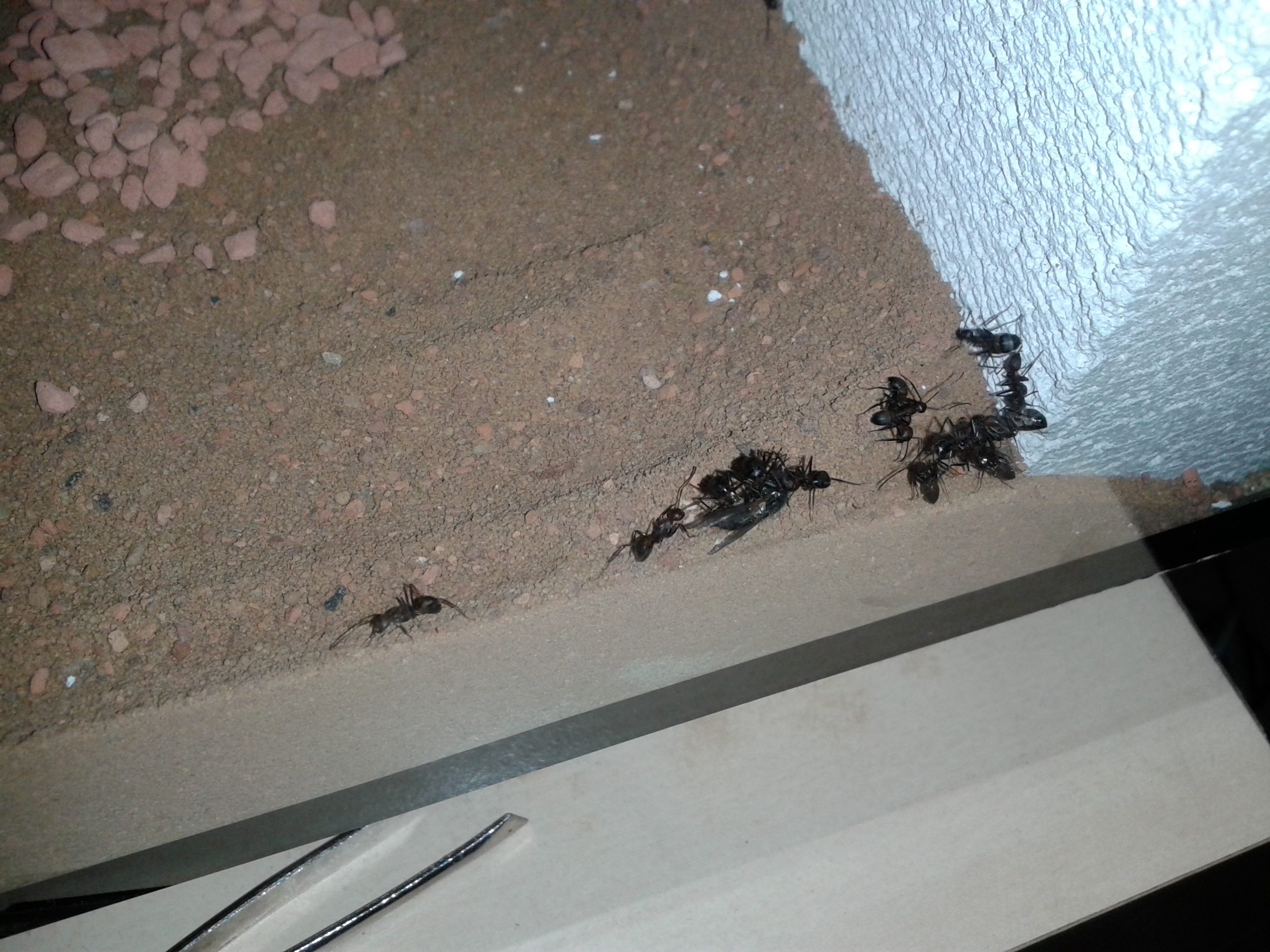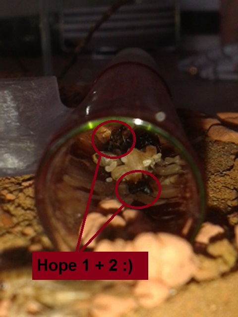 Der Ast wird gut belaufen, sobald es Futter gibt oder die Tränke aufgesucht wird, teilweise werden kleine Straßen gebildet. Majore sehe ich leider immernoch keine außerhalb des Nests, wenn überhaupt ganz selten mal eine von den kleineren. Ein Bild von der kleinen optischen Veränderung befindet sich im Anhang.