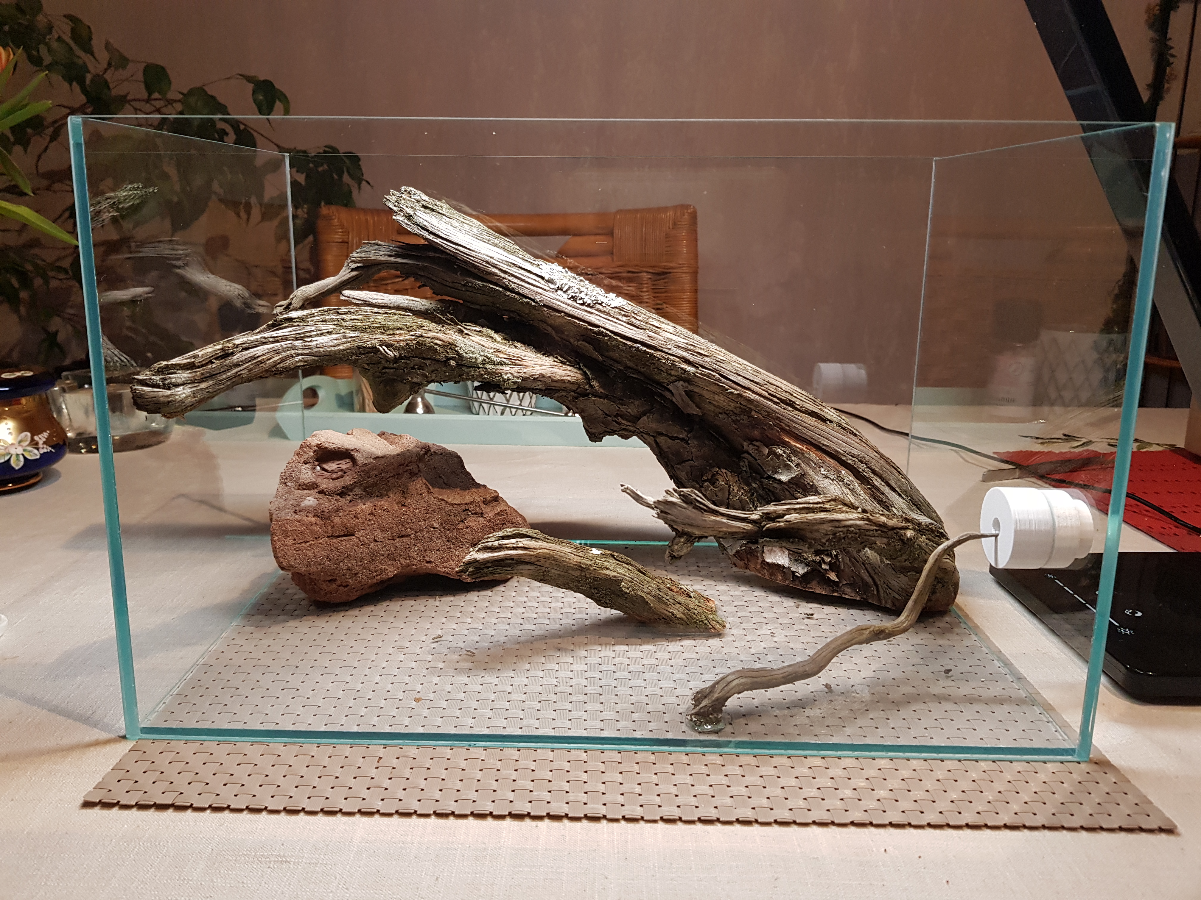 Beim Becken habe ich mich für ein günstiges 40x25x25 Glasbecken entschieden, welches ich in der Bucht fand. Zwecks Optik und damit der