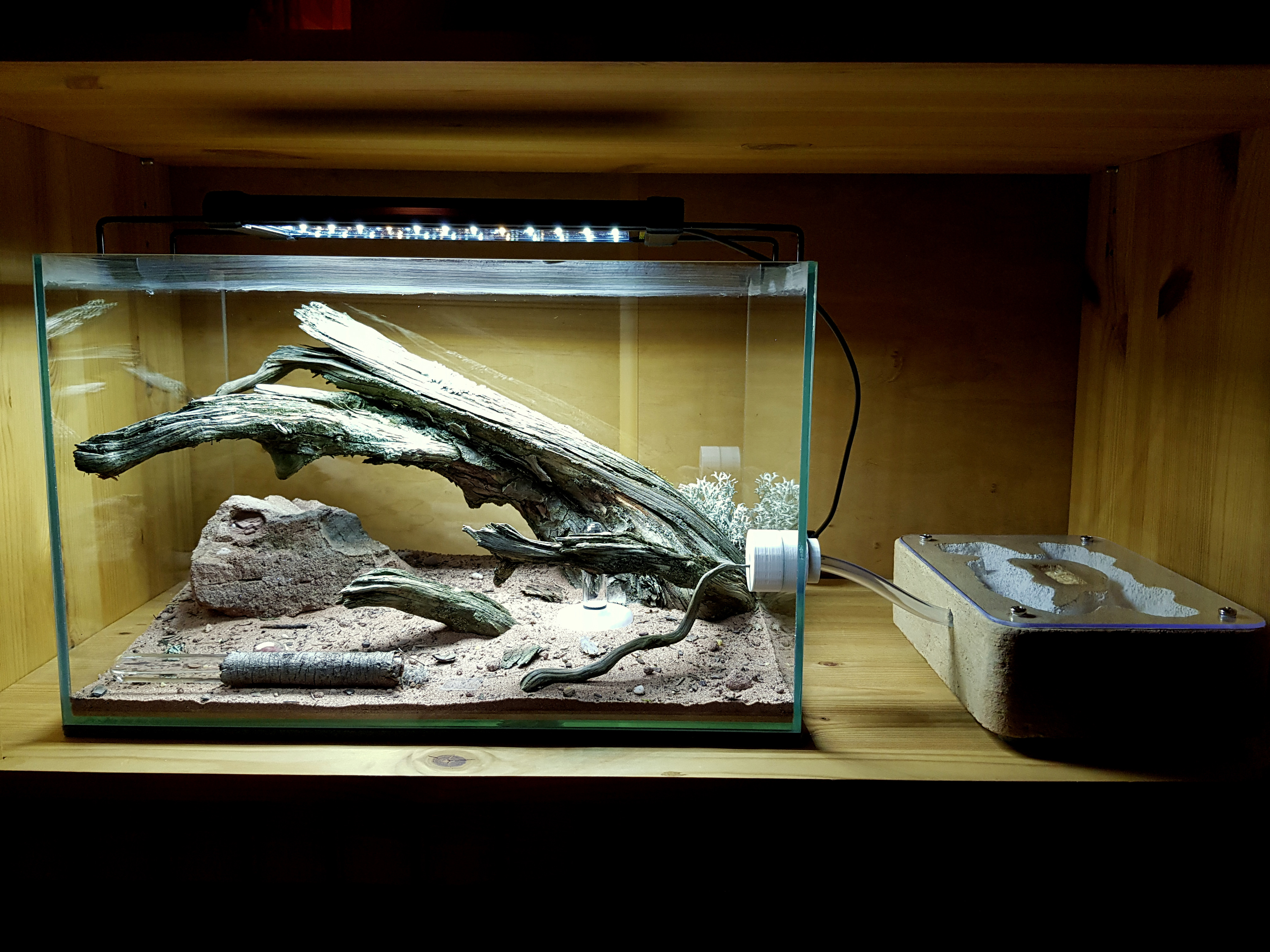 Für die Arena dieser Kolonie hatte ich mir zunächst überlegt, etwas bioaktives anzugehen, mit verschiedenen Moosen, vielleicht auch Farn,