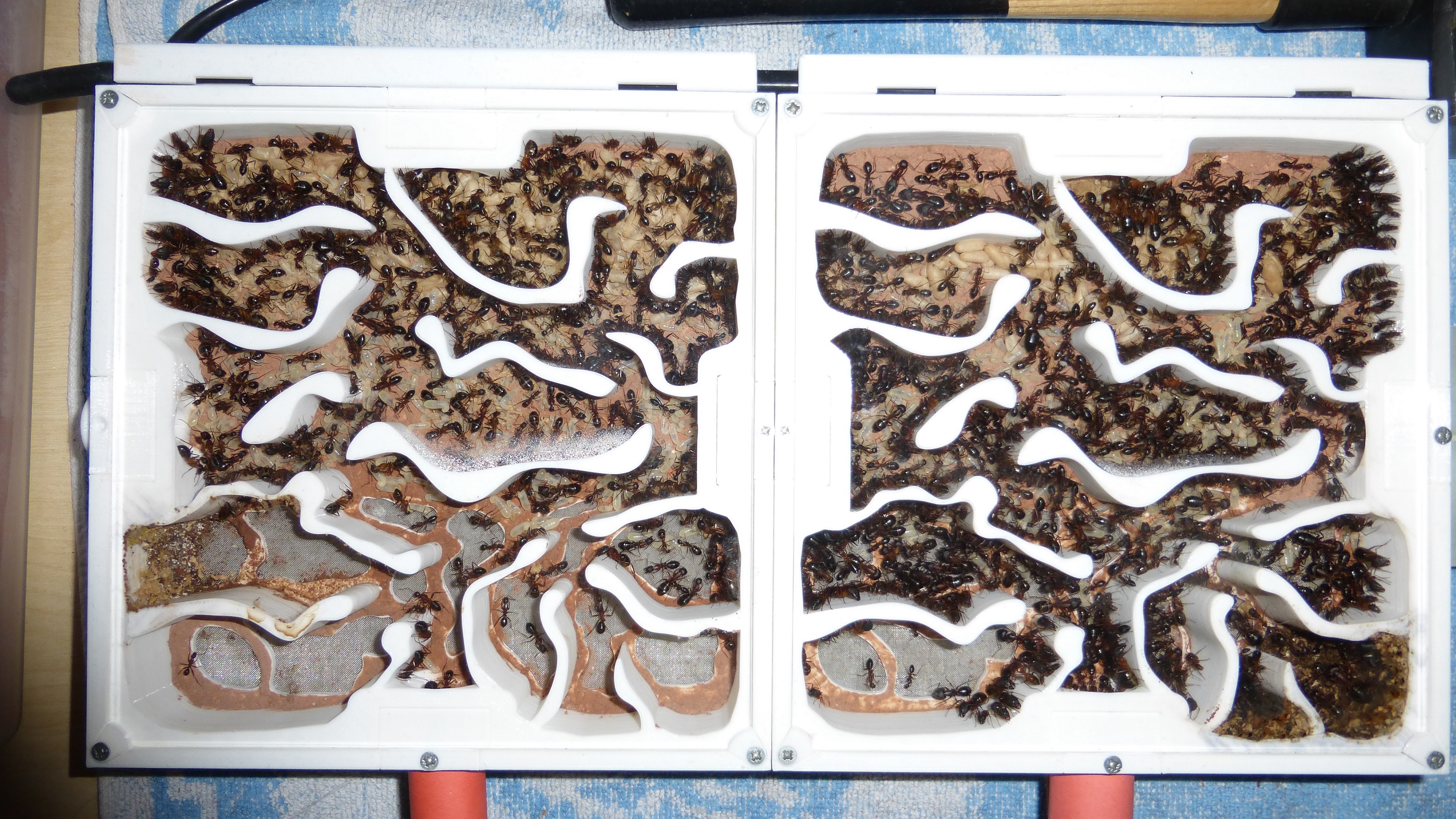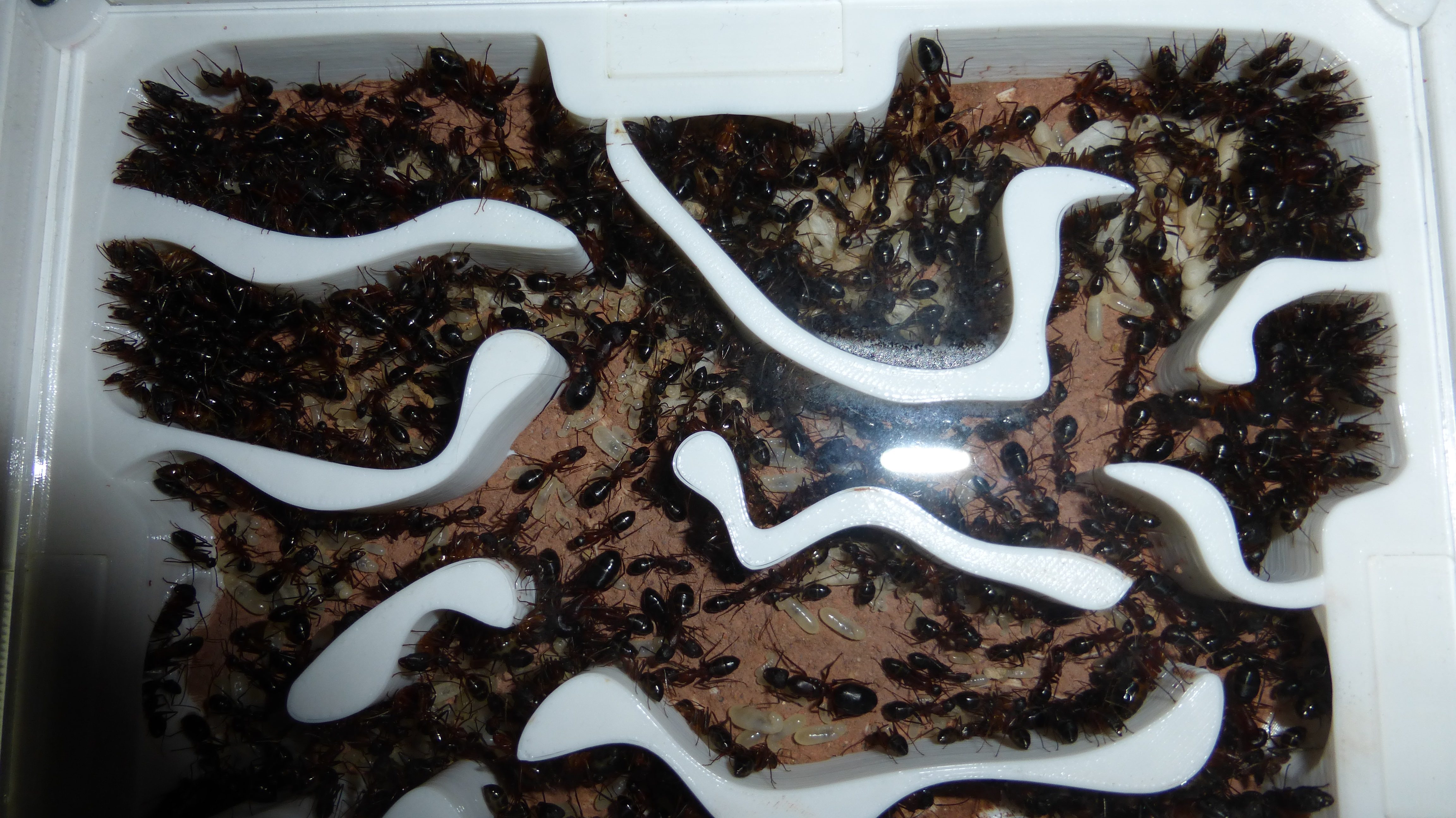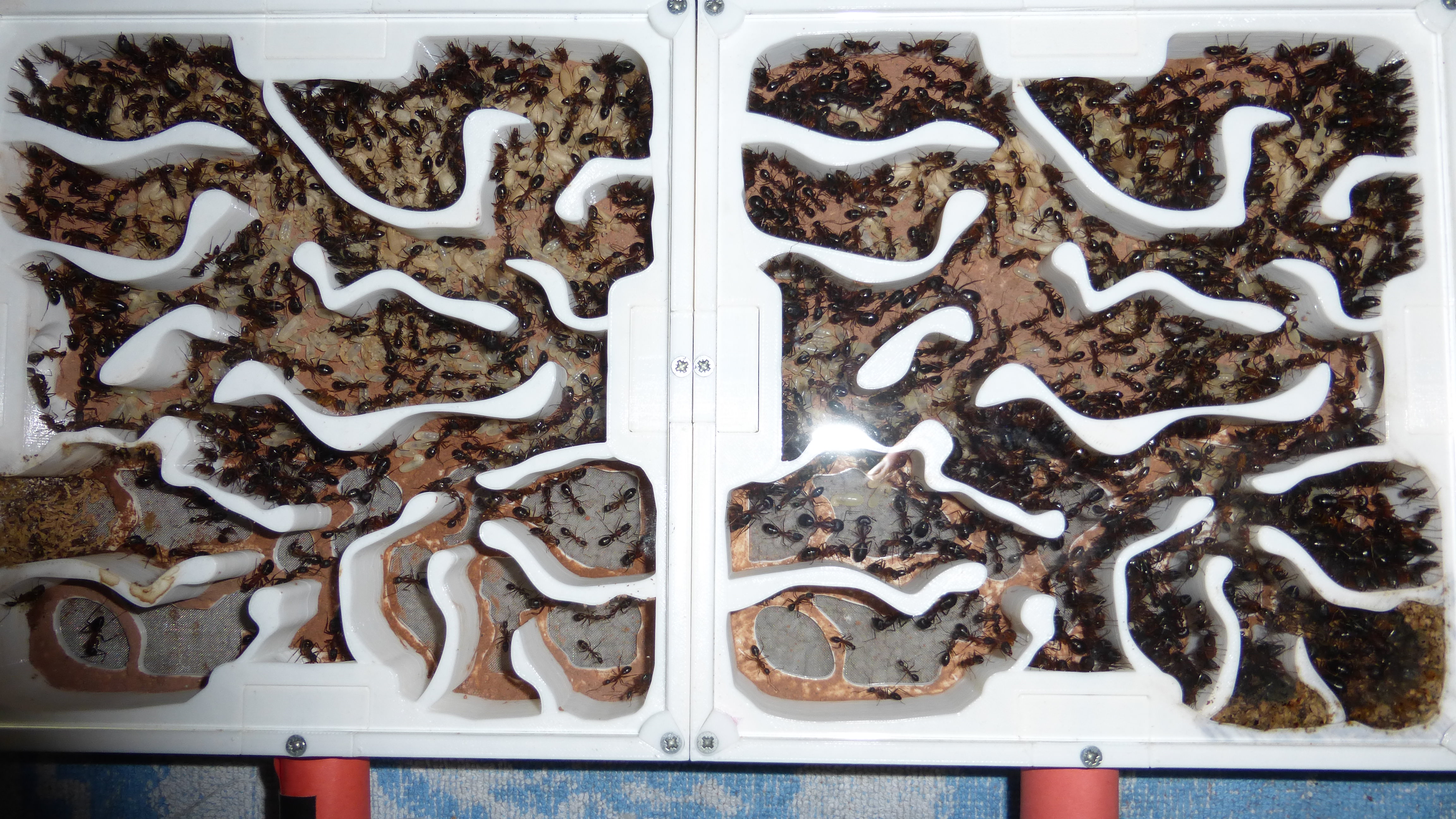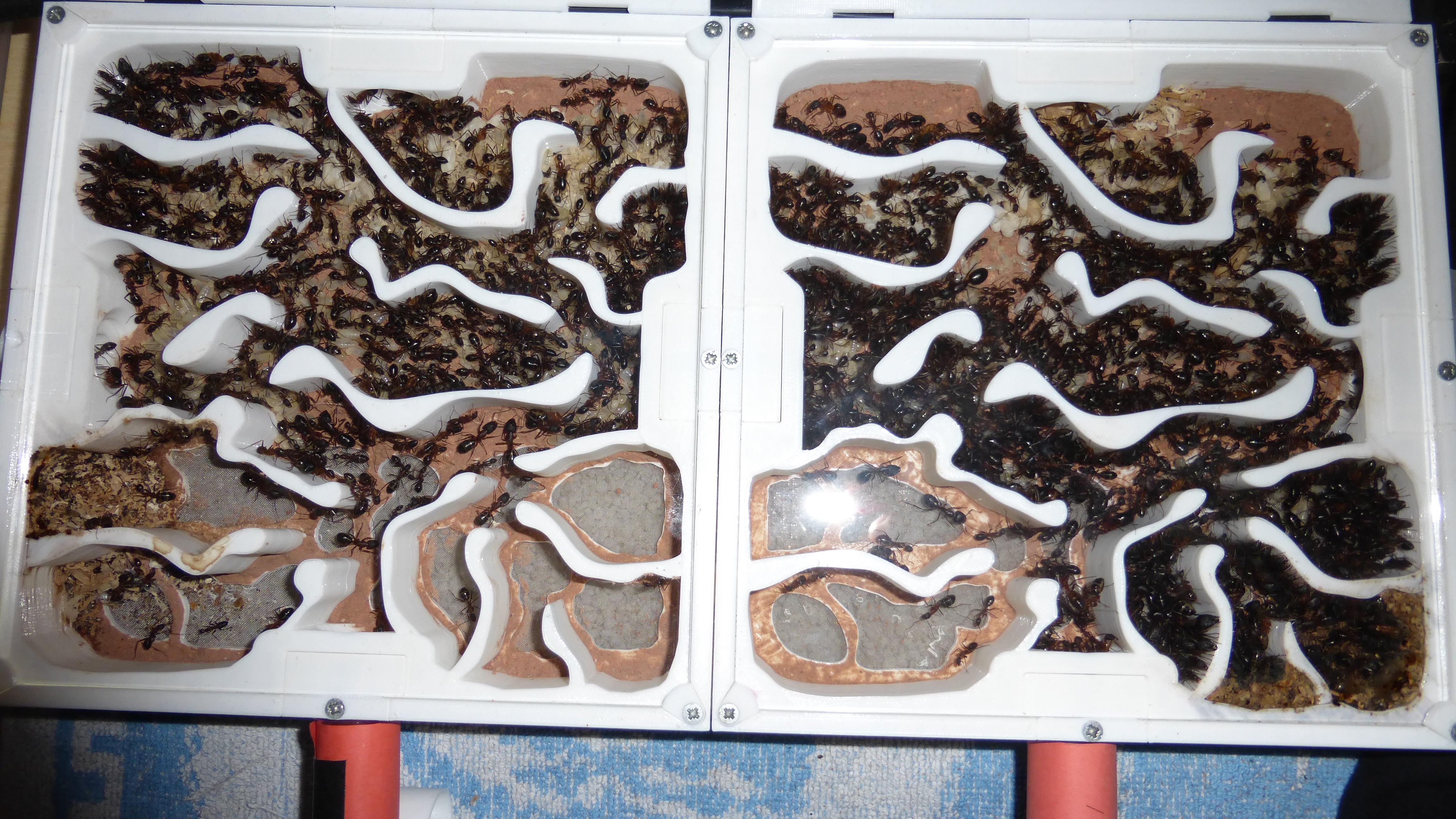 Es sind jetzt mehr Ameisen in den primären Wasser-RGs als die ganze Kolonie hatte als sie aus dem erster RG anzog (damals hatte sie natürlich noch jede Menge Brut dabei).