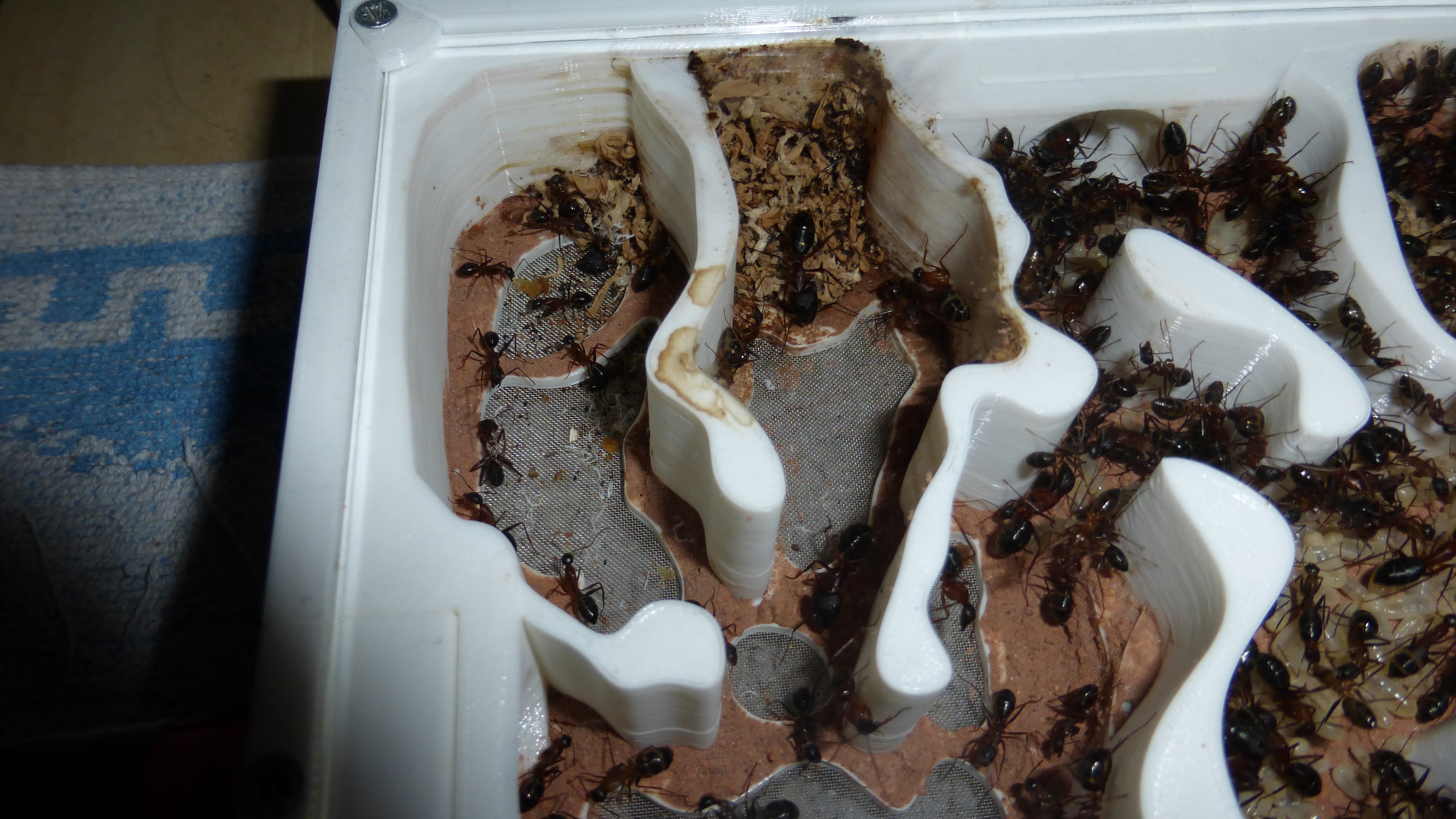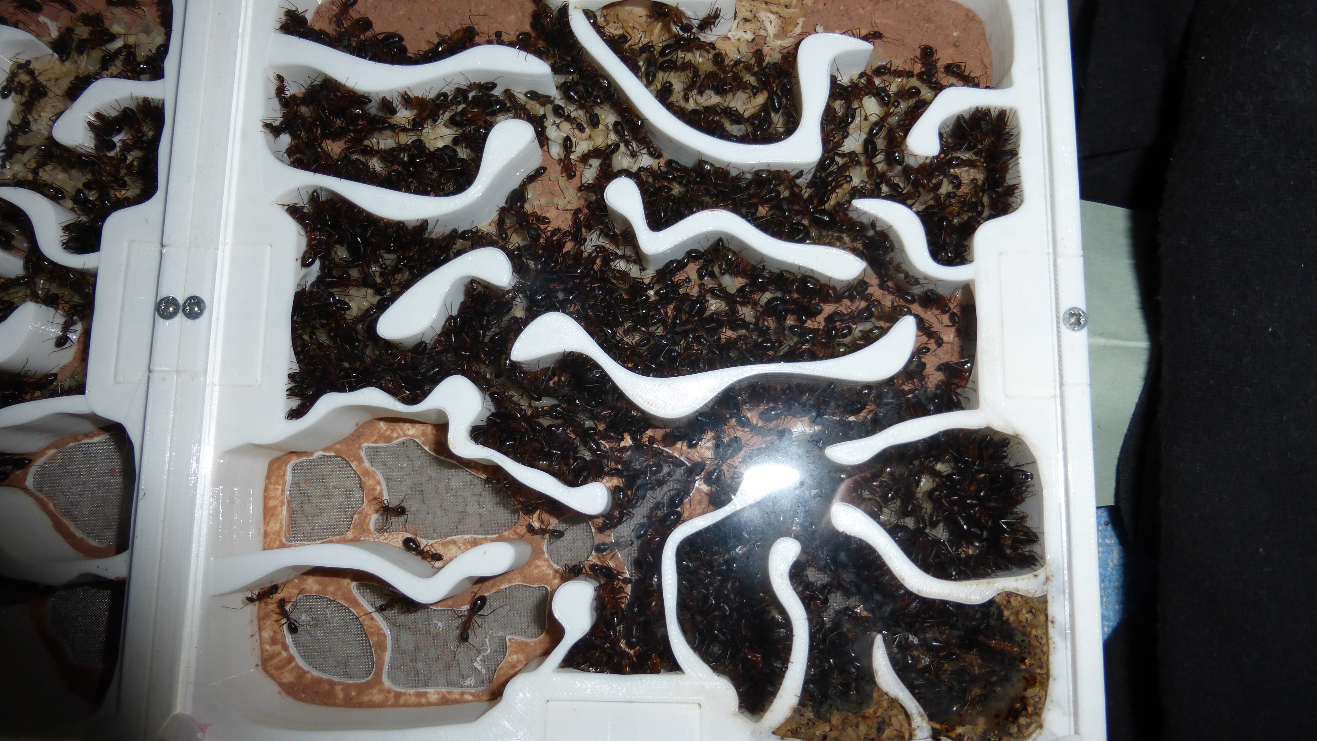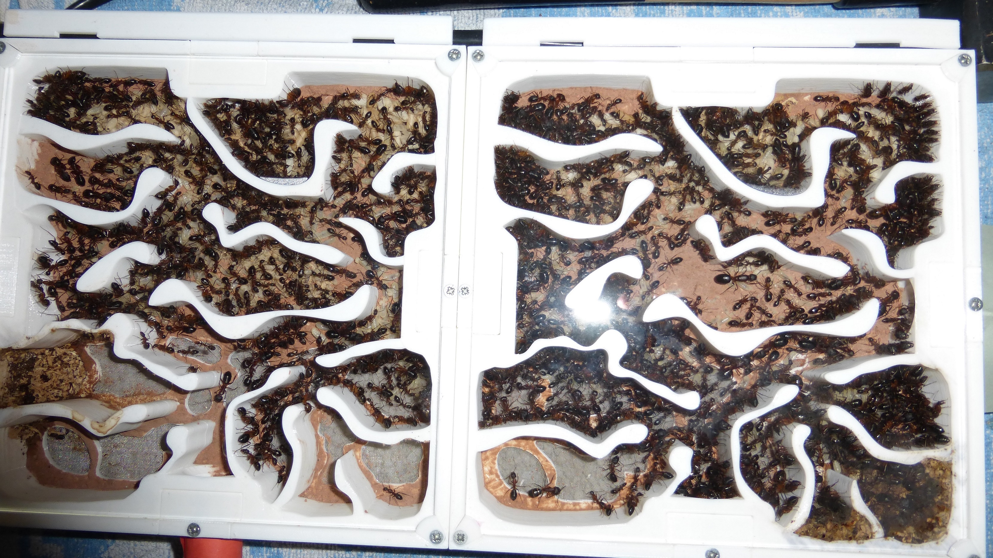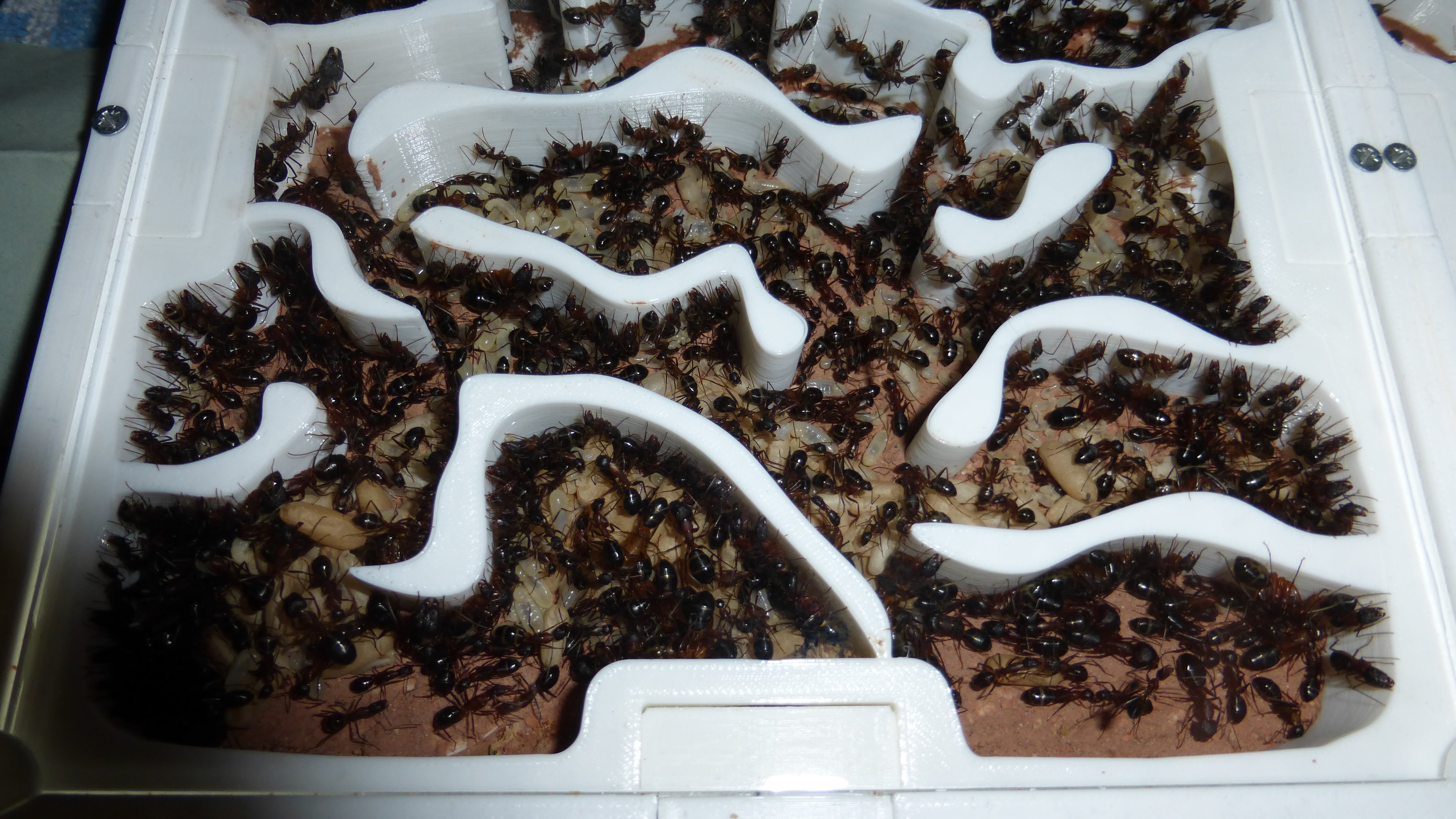 Es sind jetzt mehr Ameisen in den primären Wasser-RGs als die ganze Kolonie hatte als sie aus dem erster RG anzog (damals hatte sie natürlich noch jede Menge Brut dabei).