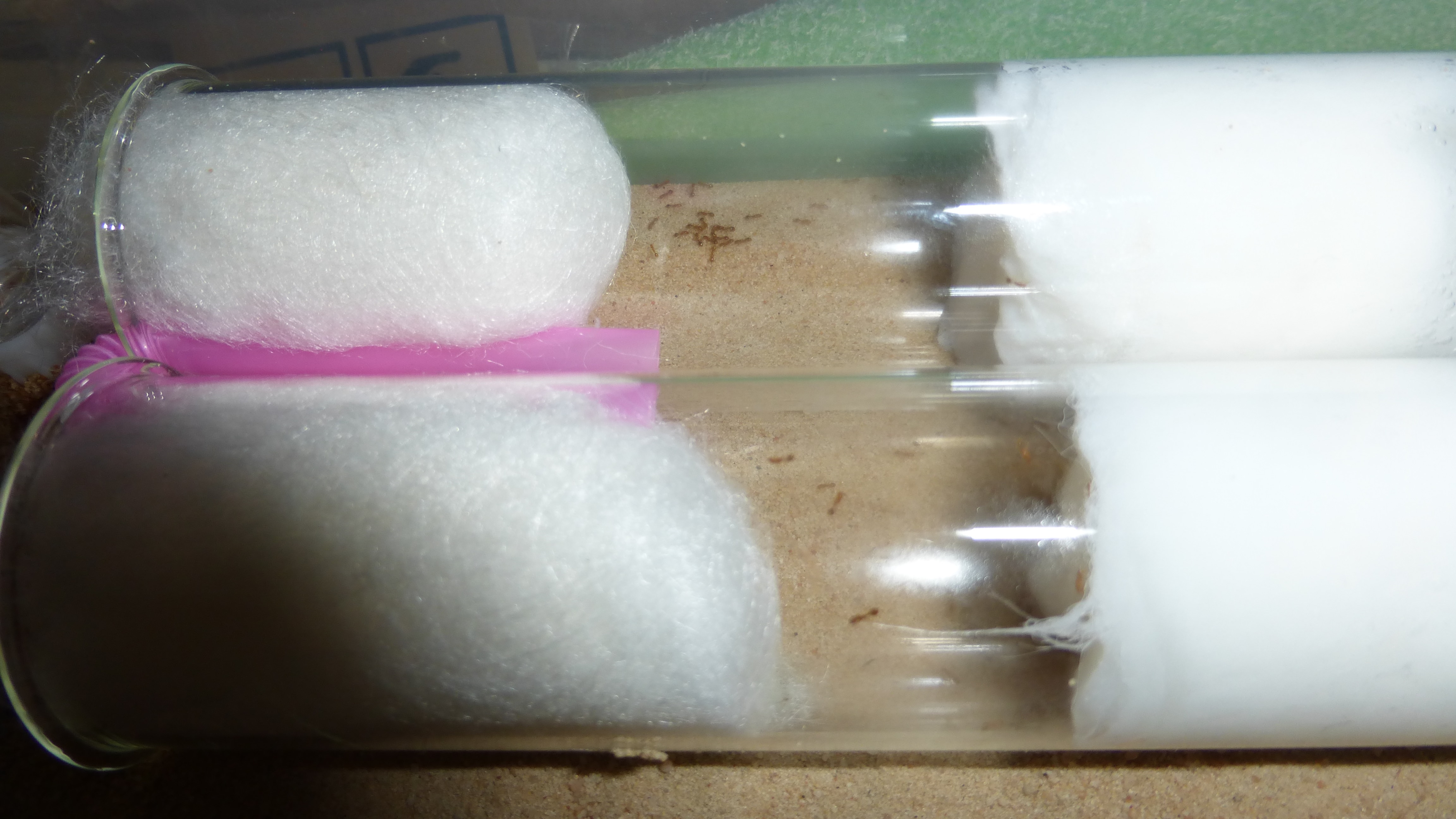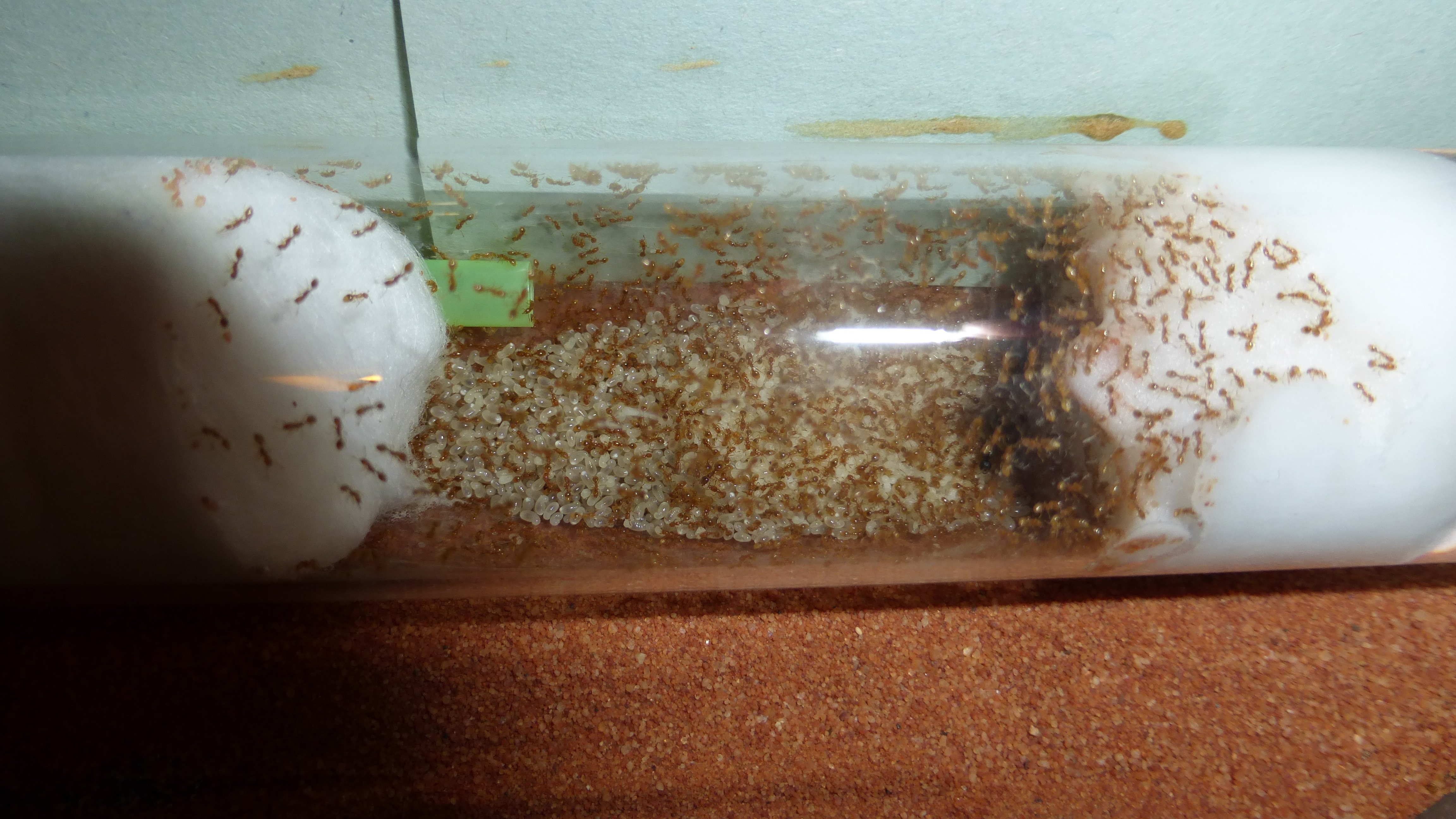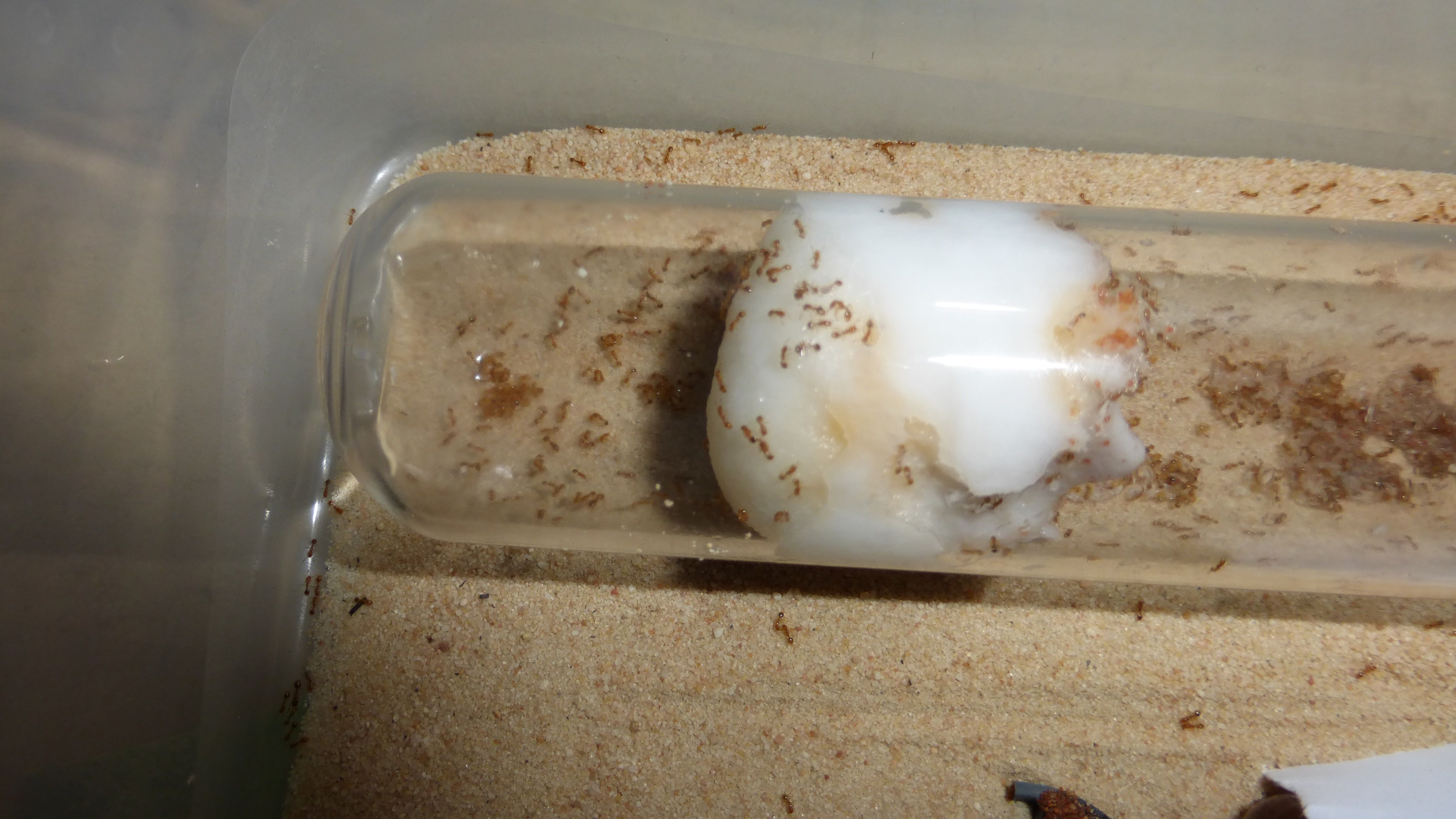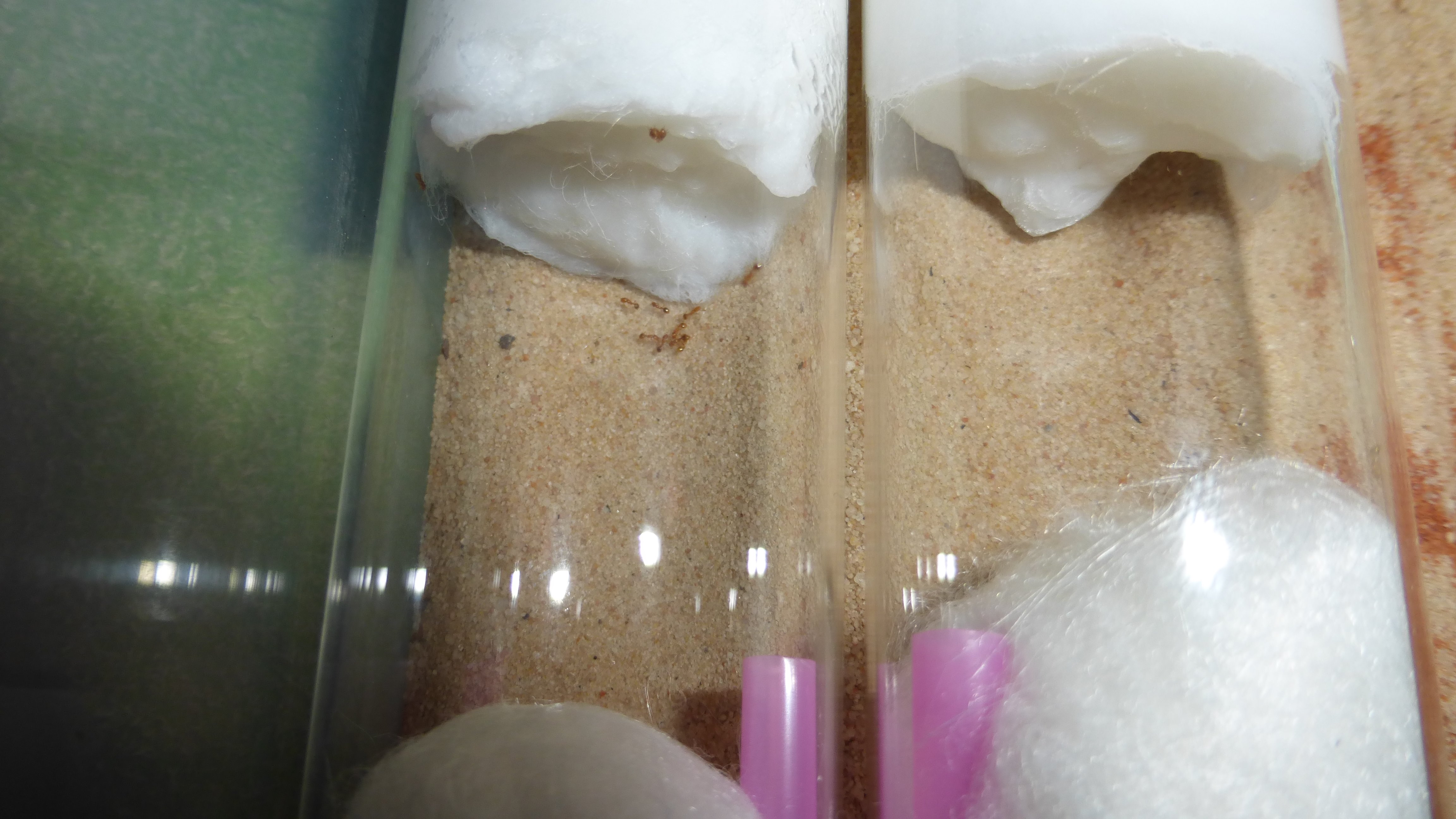 Die Solenopsis fugax sind aus dem Reagenzglas ausgezogen, nachdem sie dem Wassertank endgĂĽltig den Rest gegeben haben.