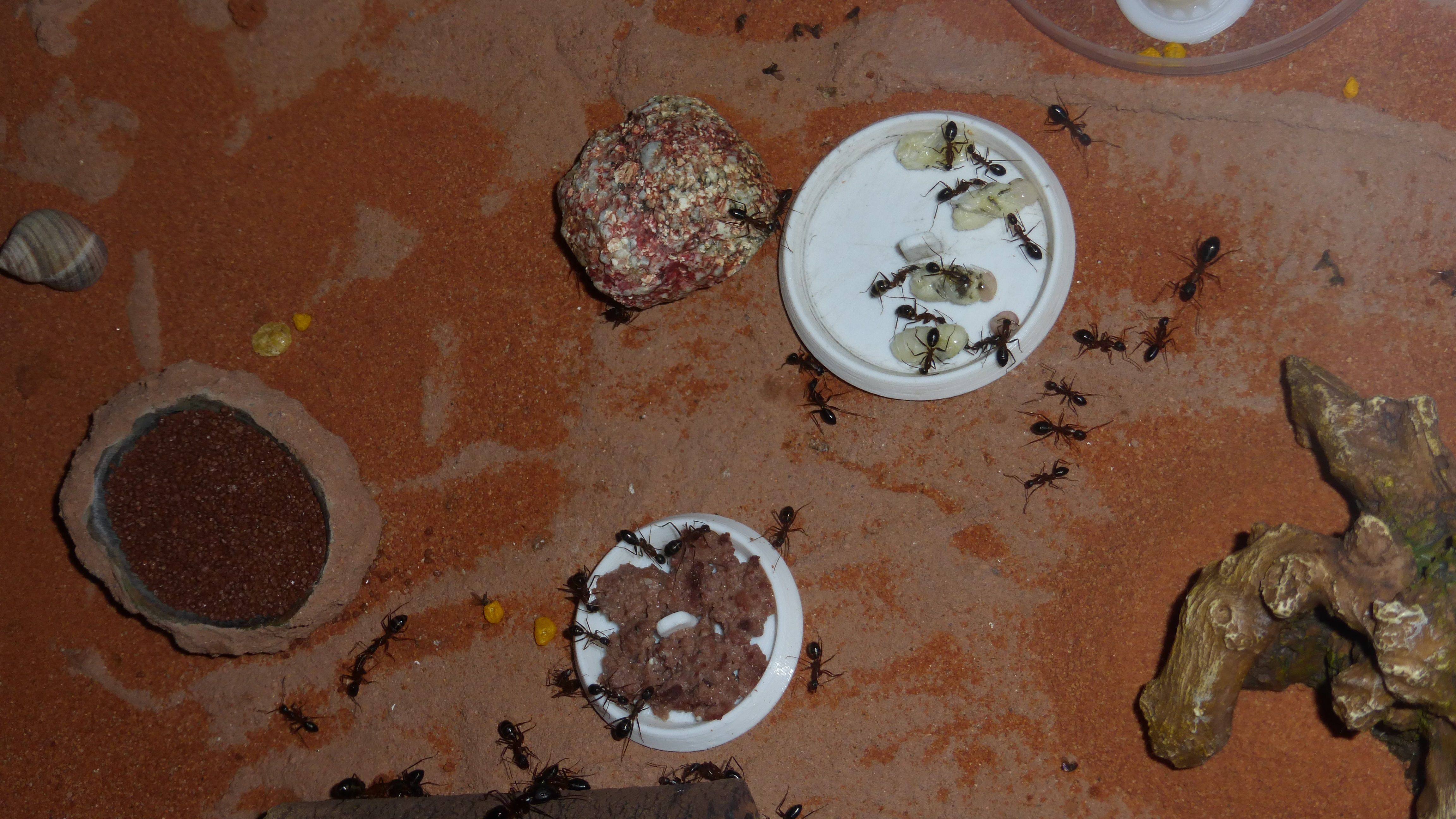 Der Nachteil mit den Schrimps ist dass die Ameisen beim zerlegen eine unglaubliche Sauerei anrichten.