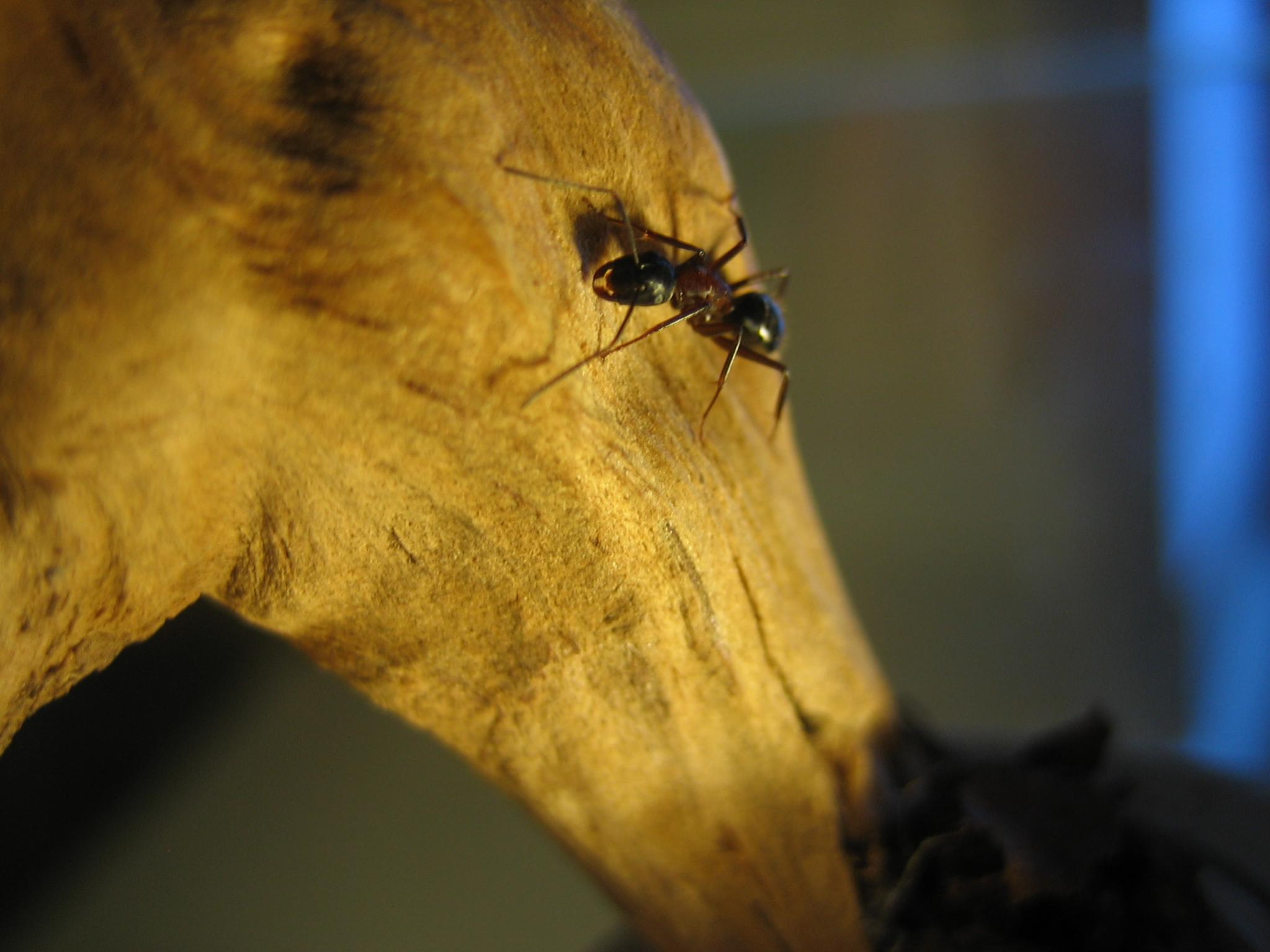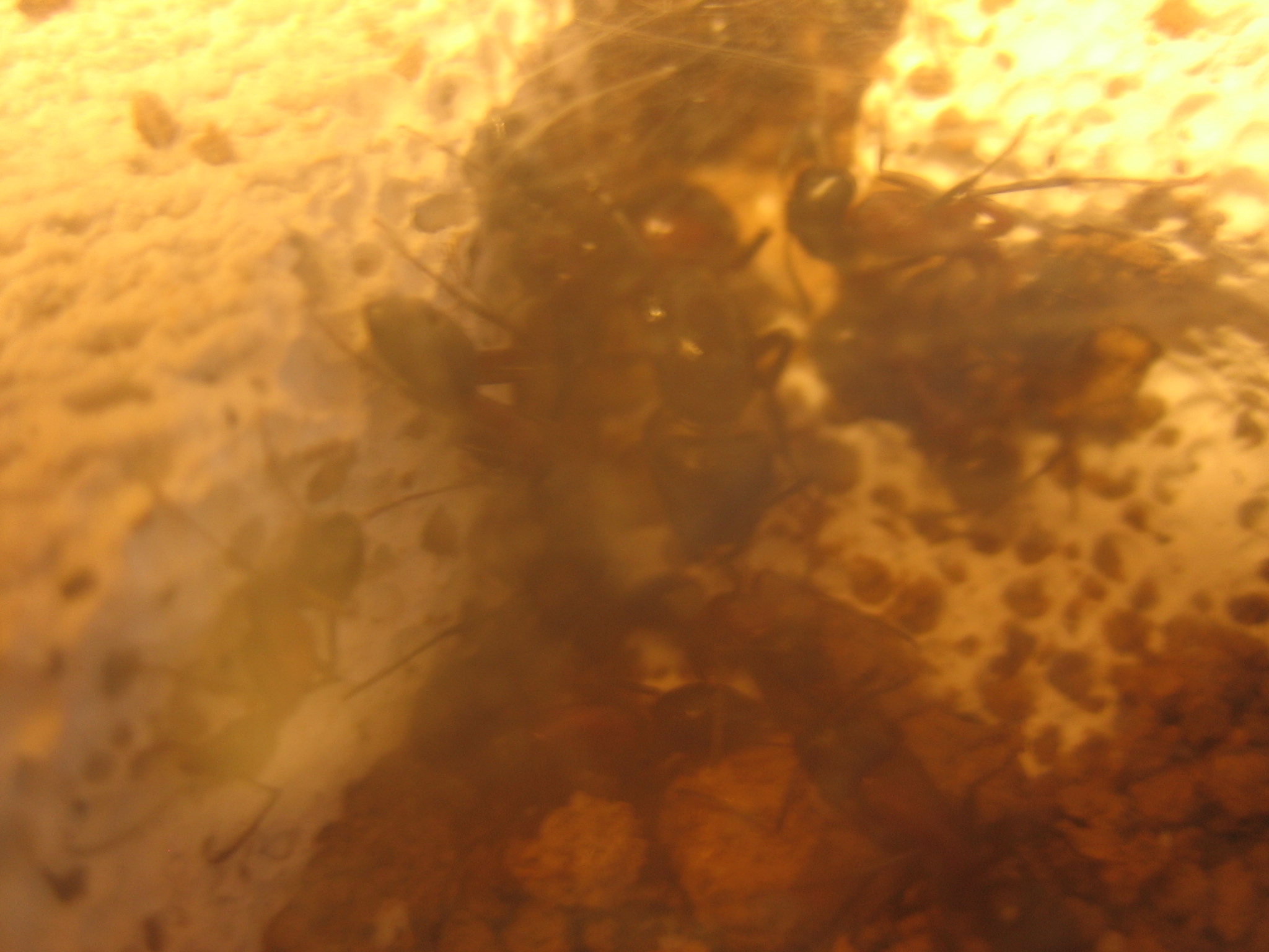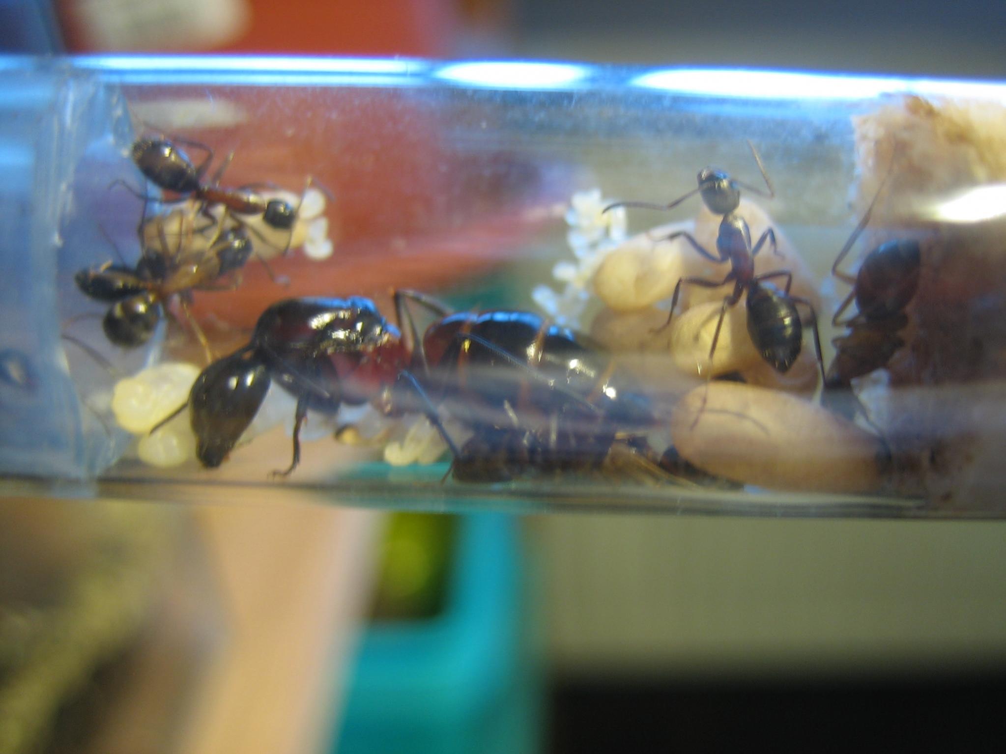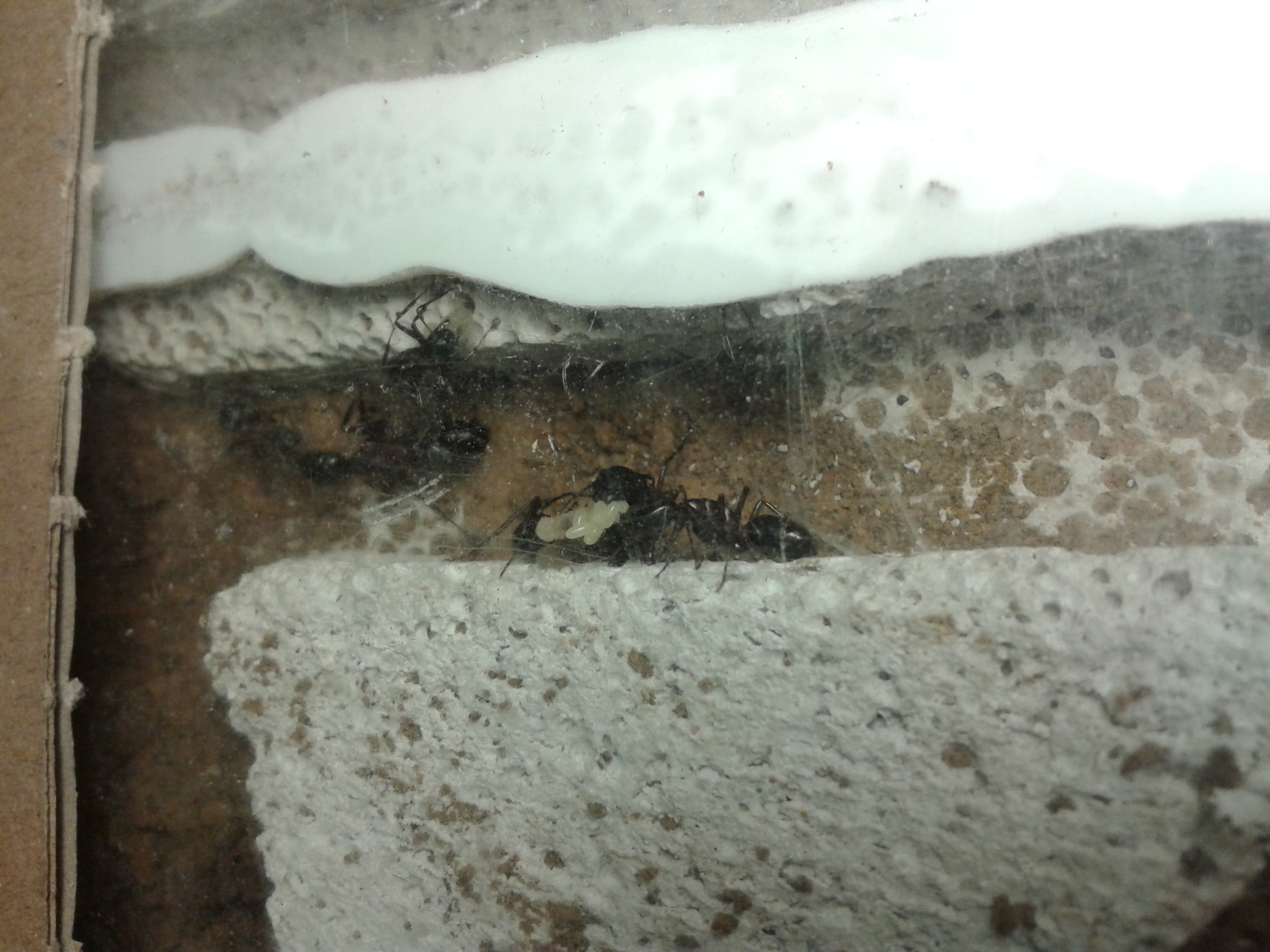 Und mit meinen schönen Temnothorax (das rot abgeklebte in der Arena ist ihr Nest) vertragen sie sich auch, die Camponotus lassen diese sogar in ihr Nest