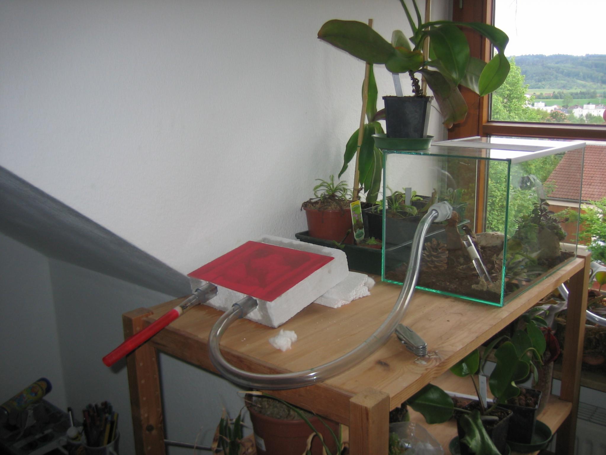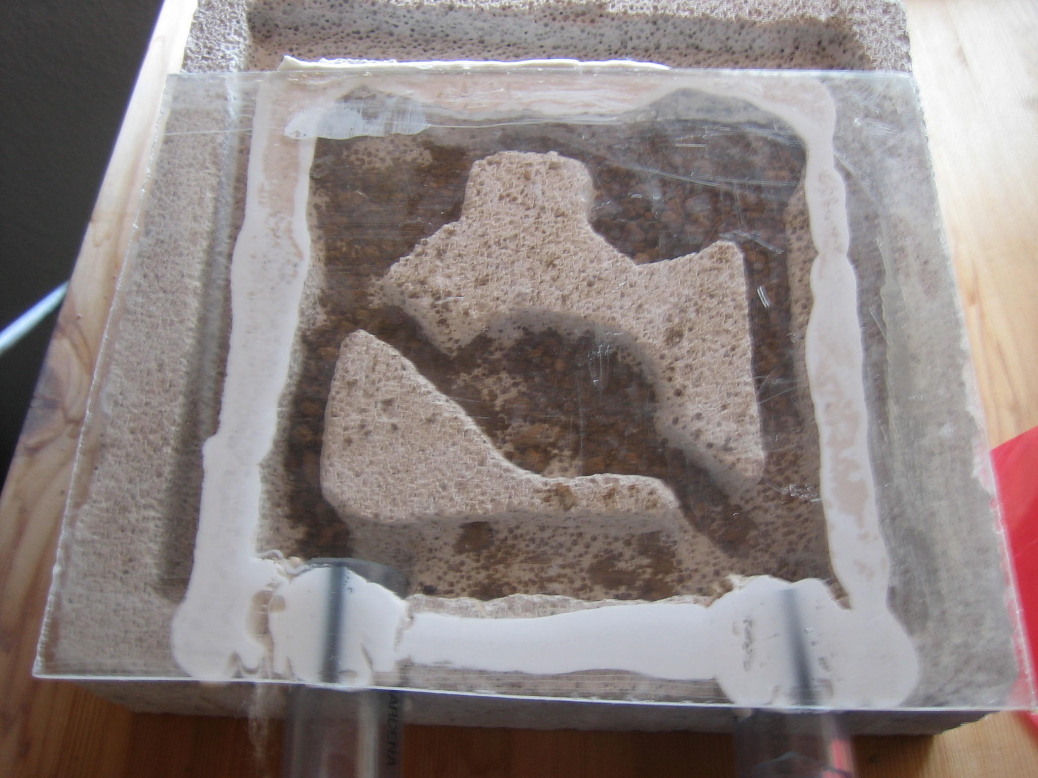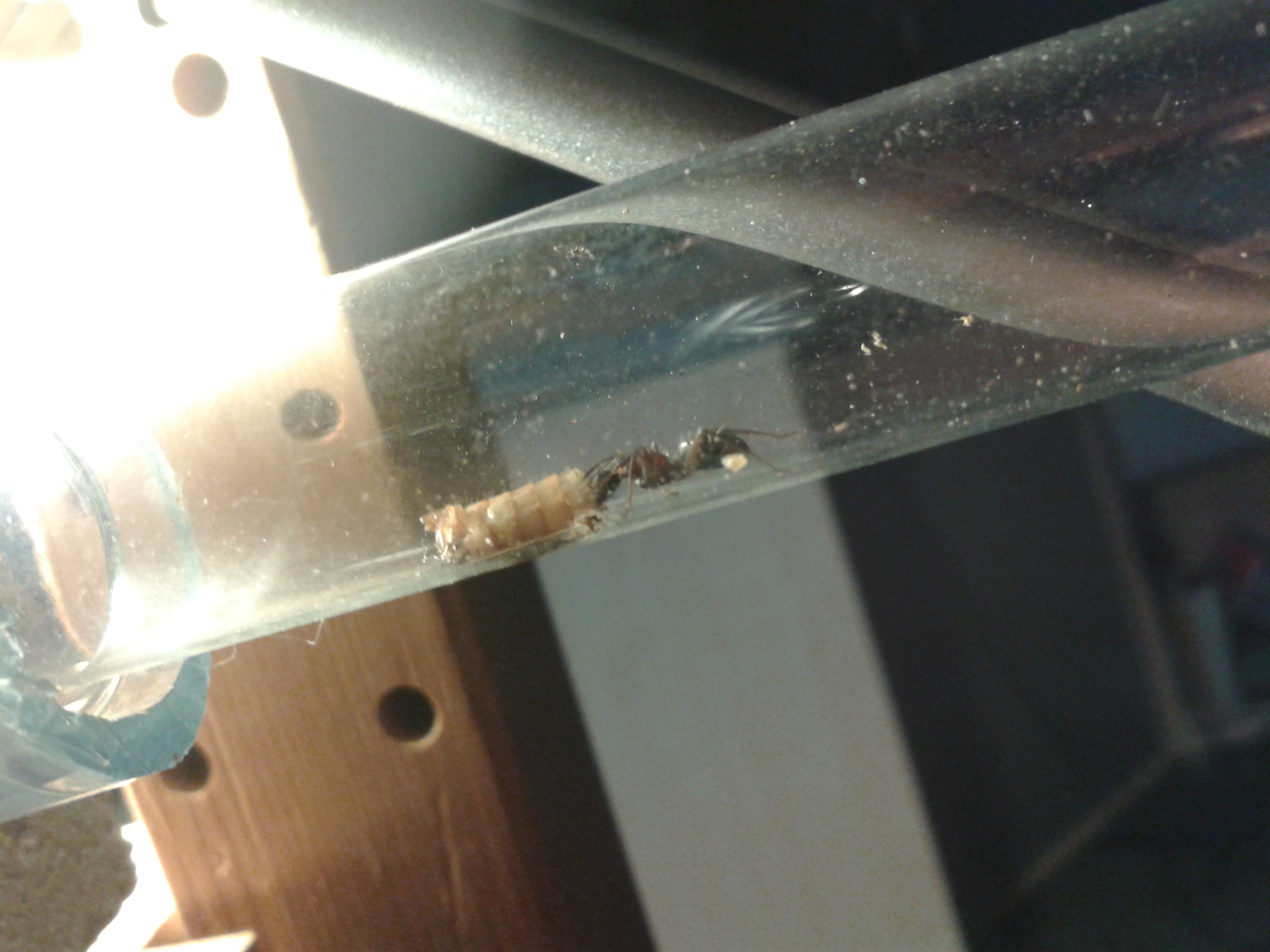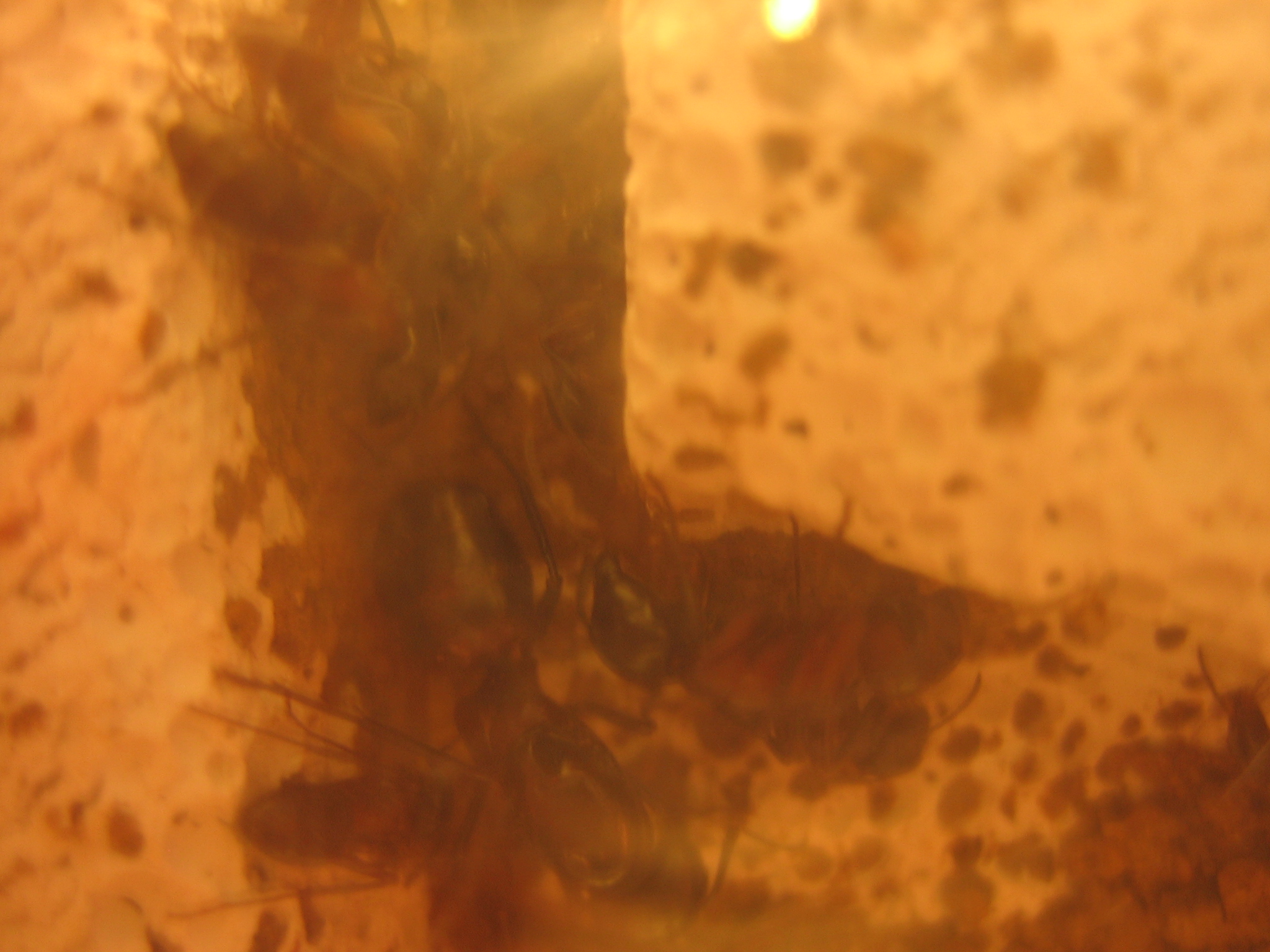 Und mit meinen schönen Temnothorax (das rot abgeklebte in der Arena ist ihr Nest) vertragen sie sich auch, die Camponotus lassen diese sogar in ihr Nest