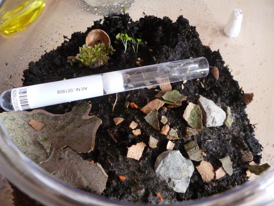 Dieses mal w[ĂŒ]ird ALLES natĂŒrlich eingerichtet. Ich habe mir da schon [mir] etwas ĂŒberlegt. Ich möchte den Boden mit einer kleinen Schicht Steine[n] bedecken. Sie sollen nicht zu groß sein. Groß genug, dass einzelne Arbeiterinnen sie abtransportieren können. Ebenfalls soll ein grĂ¶ĂŸerer Stein dort integriert werden und auch Moos. Neben Rinde und kleineren Ästchen. Im Zentrum aber sollen Pflanzen wachsen. Nicht nur Gras sondern auch andere Pflanzen. Im Grunde soll es sehr natĂŒrlich und einladend sein. Aber einen Zweck soll das Ganze auch haben. Nicht nur damit es optisch schön aussieht sondern auch das dort verschiedene andere Tierarten sich heimisch fĂŒhlen sollen. Ich habe an folgende gedacht: